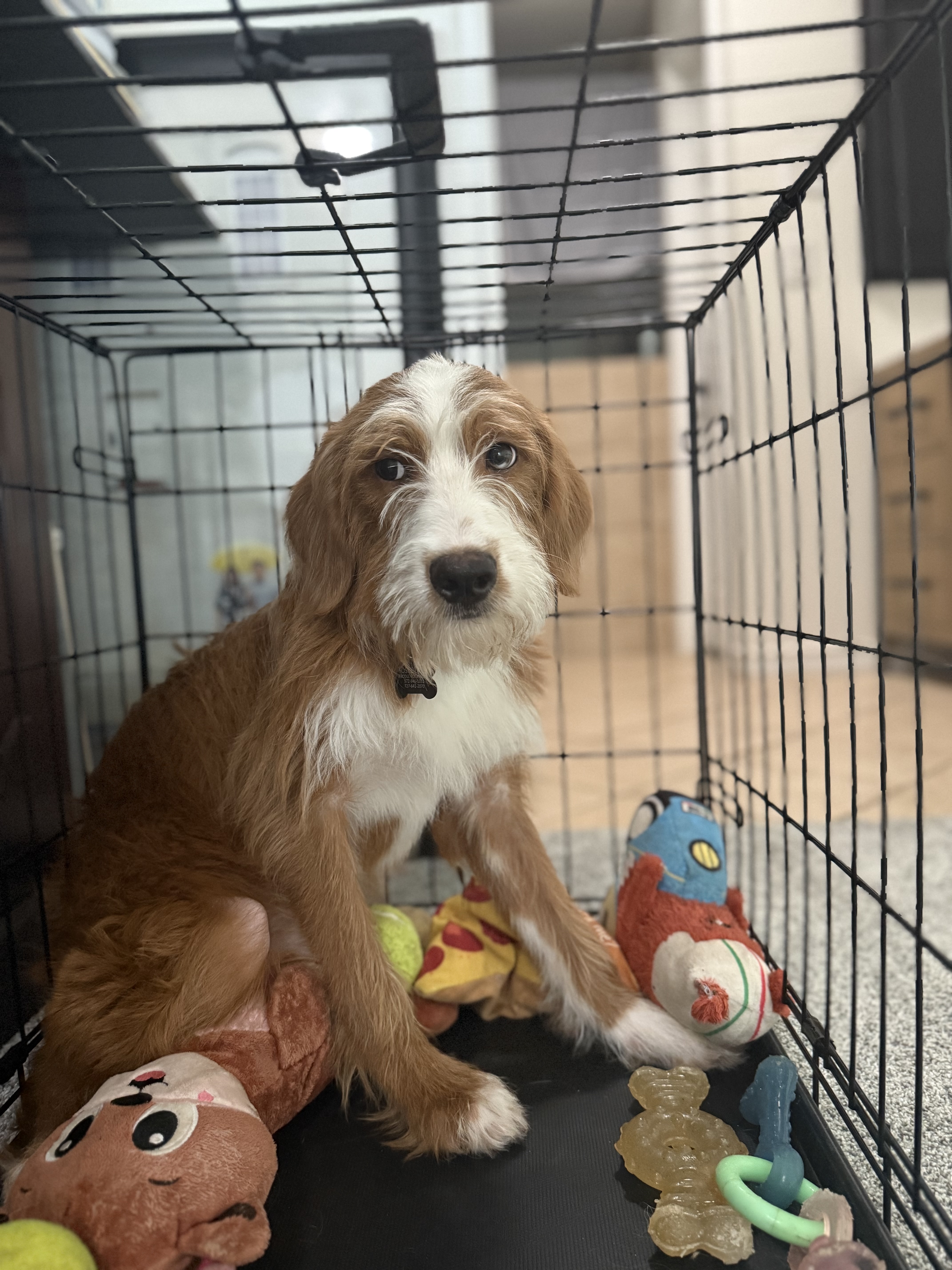 My days are slow and cozy, just how I like them. Mornings are for stretching, sniffing the breeze, and heading outside right after I wake up. I’m crate trained and actually enjoy eating my meals there—it feels safe. Food is one of my very favorite things, and it’s a great way to my heart. I’m doing well with potty training, especially if we stick to a routine. Just know that when I’m in a new place, I get a little nervous and might wait a while before I feel comfortable enough to go.