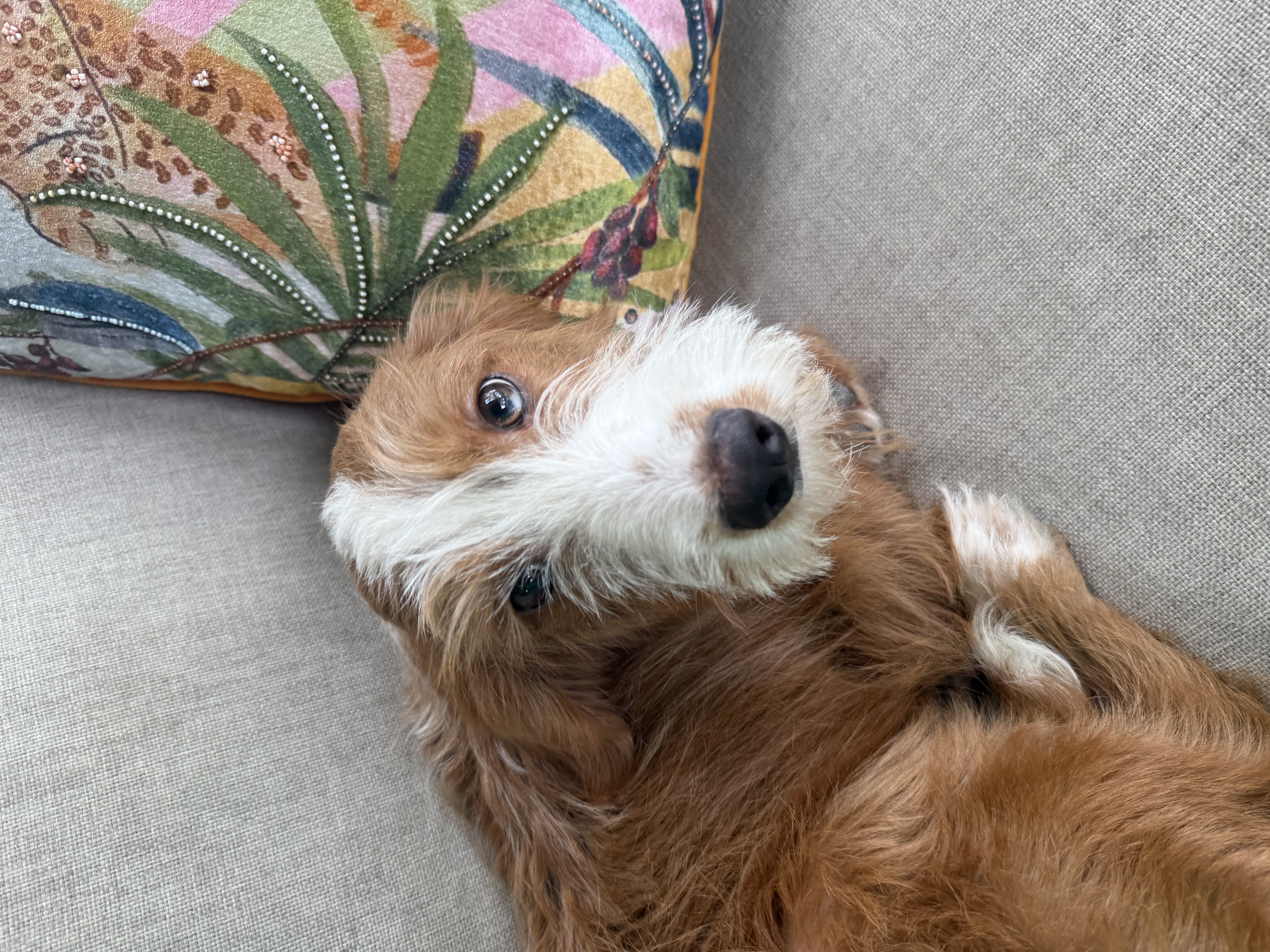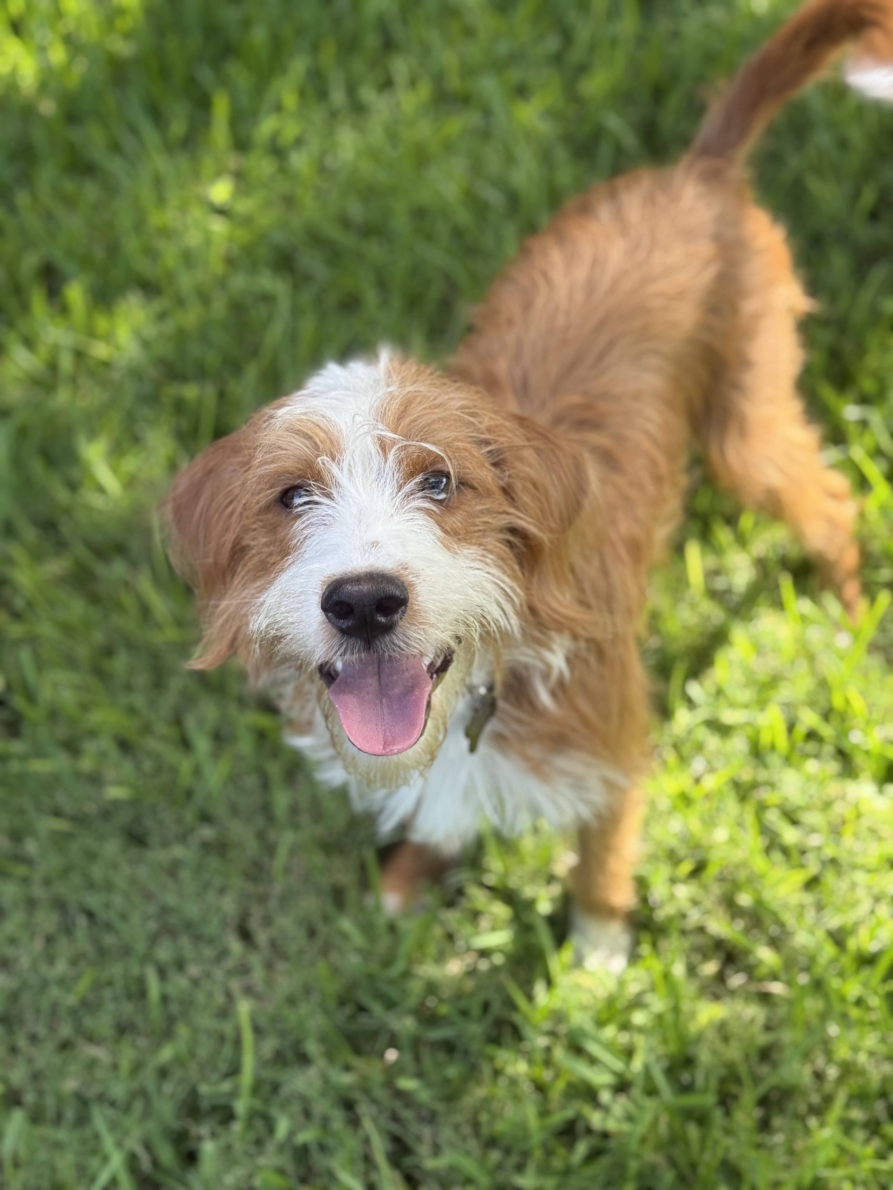 Hi, my name is Oakmont, but you can call me Monty—that’s what my friends say, and I’d love to be your friend, too. I’m a 5-month-old doodle mix with a soft, wavy coat and even softer heart. I weigh about 23 pounds, and while I might be small, I carry a whole world of feelings inside this fuzzy little body.