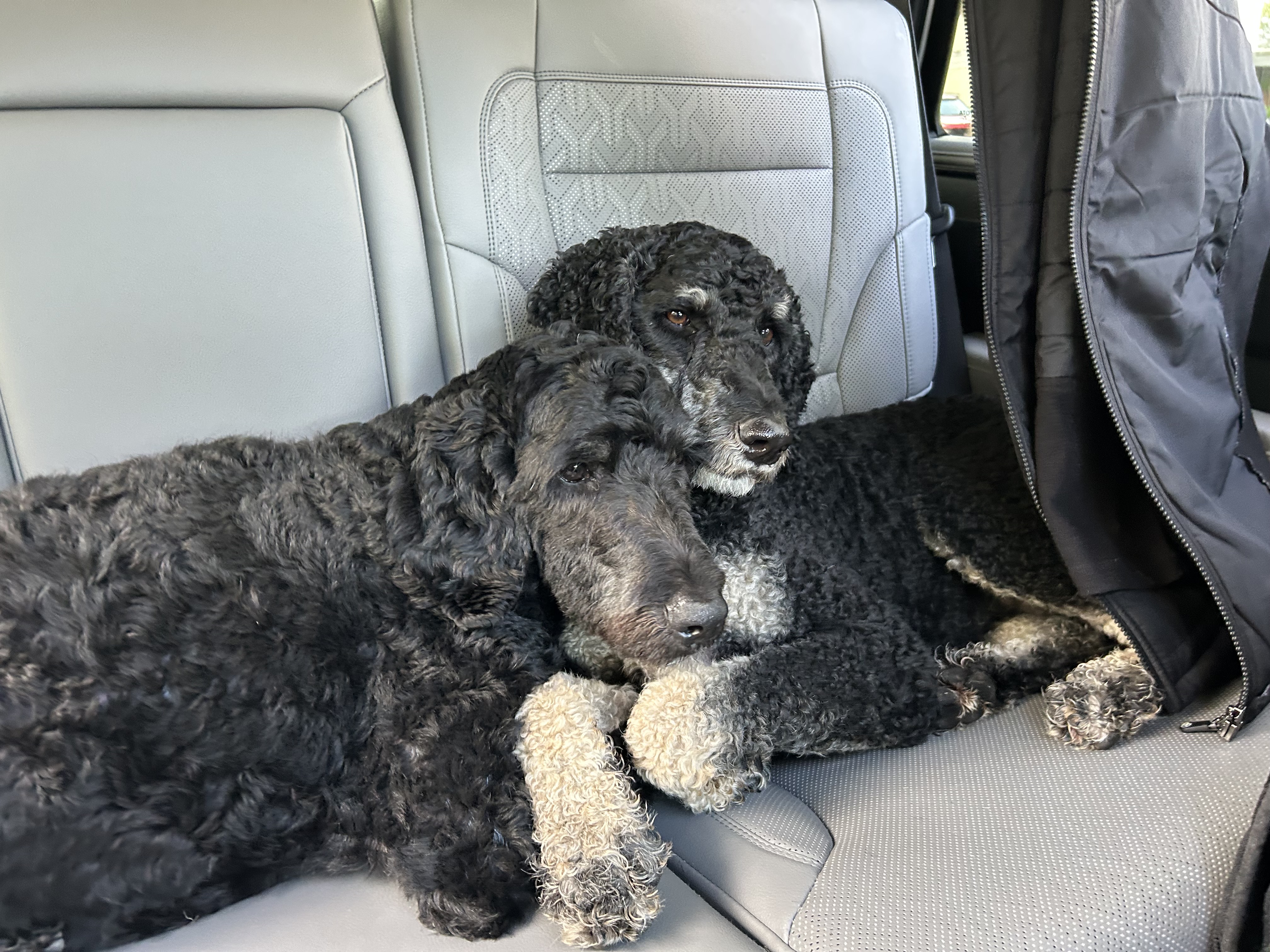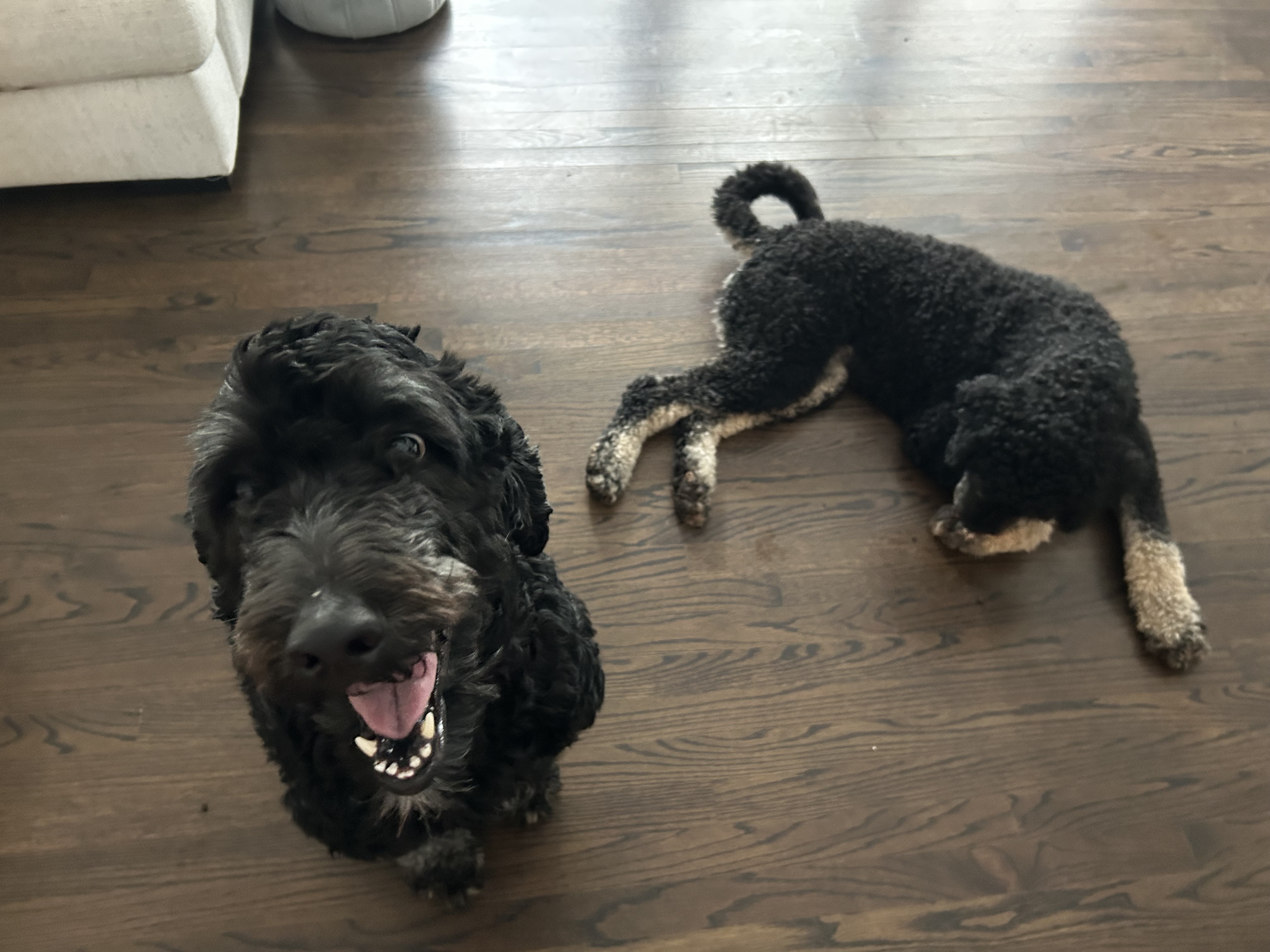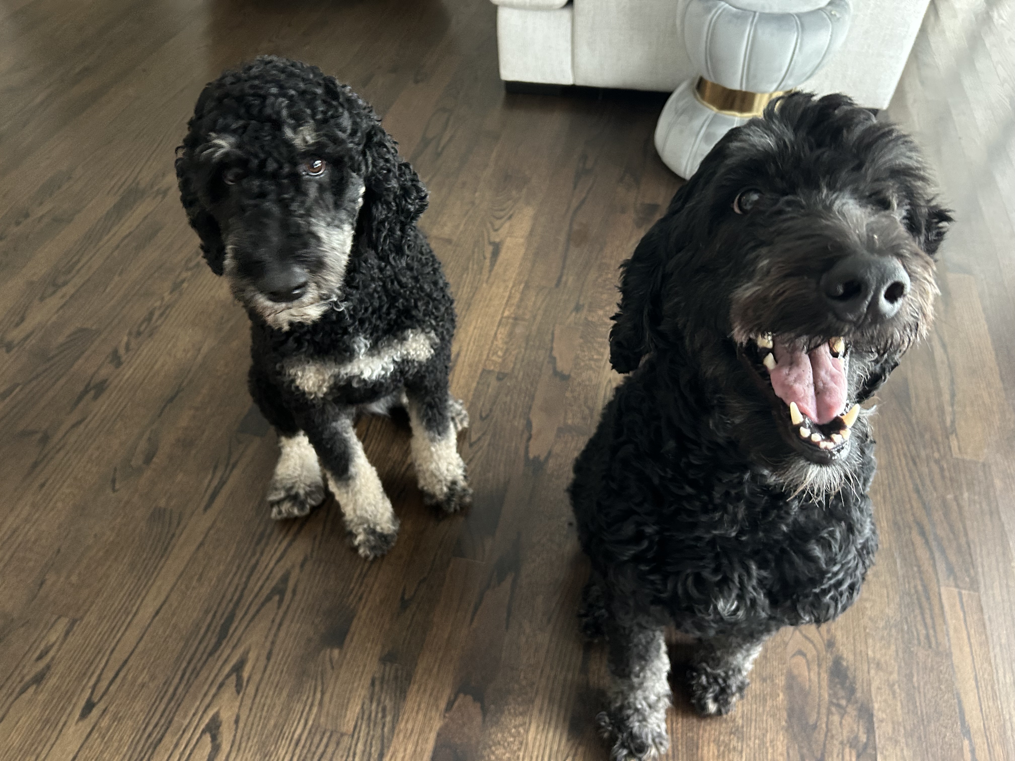 Hi friends! I’m Tiana, a 3-year-old, 60-pound Bernedoodle with a fluffy coat, a big heart, and an even bigger smile—and this handsome goofball next to me? That’s my best friend, Odie! He’s also a 3-year-old, 60-pound Bernedoodle, and together we’re the total package: double the love, double the fun, and double the couch snuggles. We’re a bonded pair, which means wherever I go, Odie goes too—and honestly, we wouldn’t have it any other way!