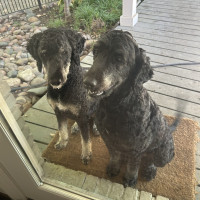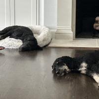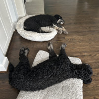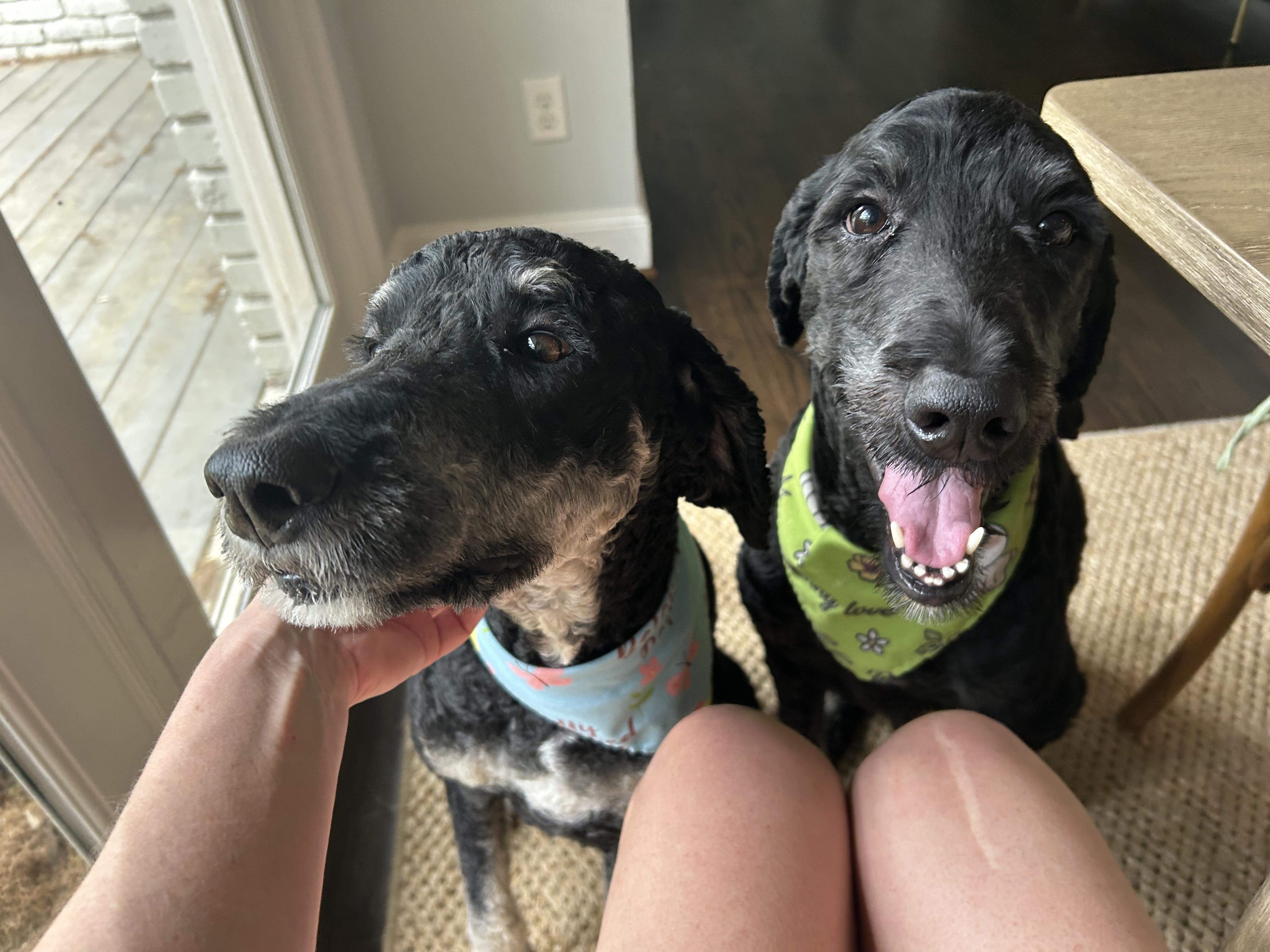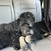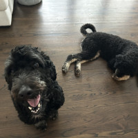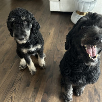 Hi friends! I’m Tiana, a 3-year-old, 60-pound Bernedoodle with a fluffy coat, a big heart, and an even bigger smile—and this handsome goofball next to me? That’s my best friend, Odie! He’s also a 3-year-old, 60-pound Bernedoodle, and together we’re the total package: double the love, double the fun, and double the couch snuggles. We’re a bonded pair, which means wherever I go, Odie goes too—and honestly, we wouldn’t have it any other way!