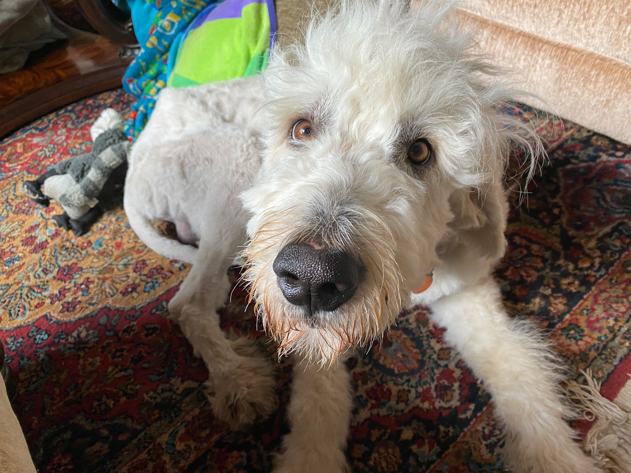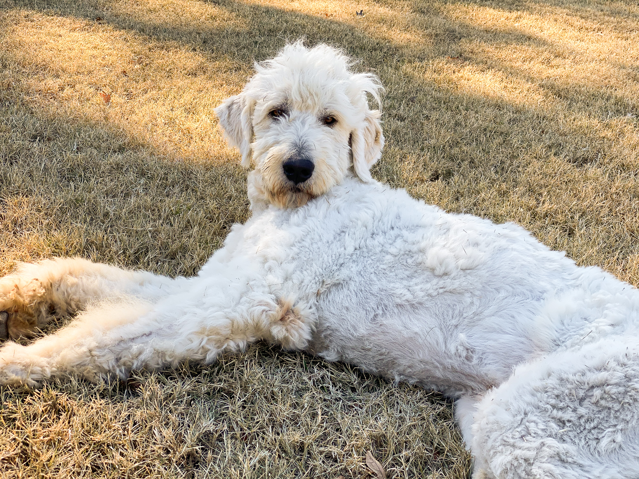 Hi there! My name is Odin! I’m a 94 pound (and counting), 2-year-old male Pyredoodle. That means I'm a Great Pyrenees + Standard Poodle mix, but definitely LOTS of the Pyrenees personality and traits! I do shed very minimally but regular brushing keeps that under control.