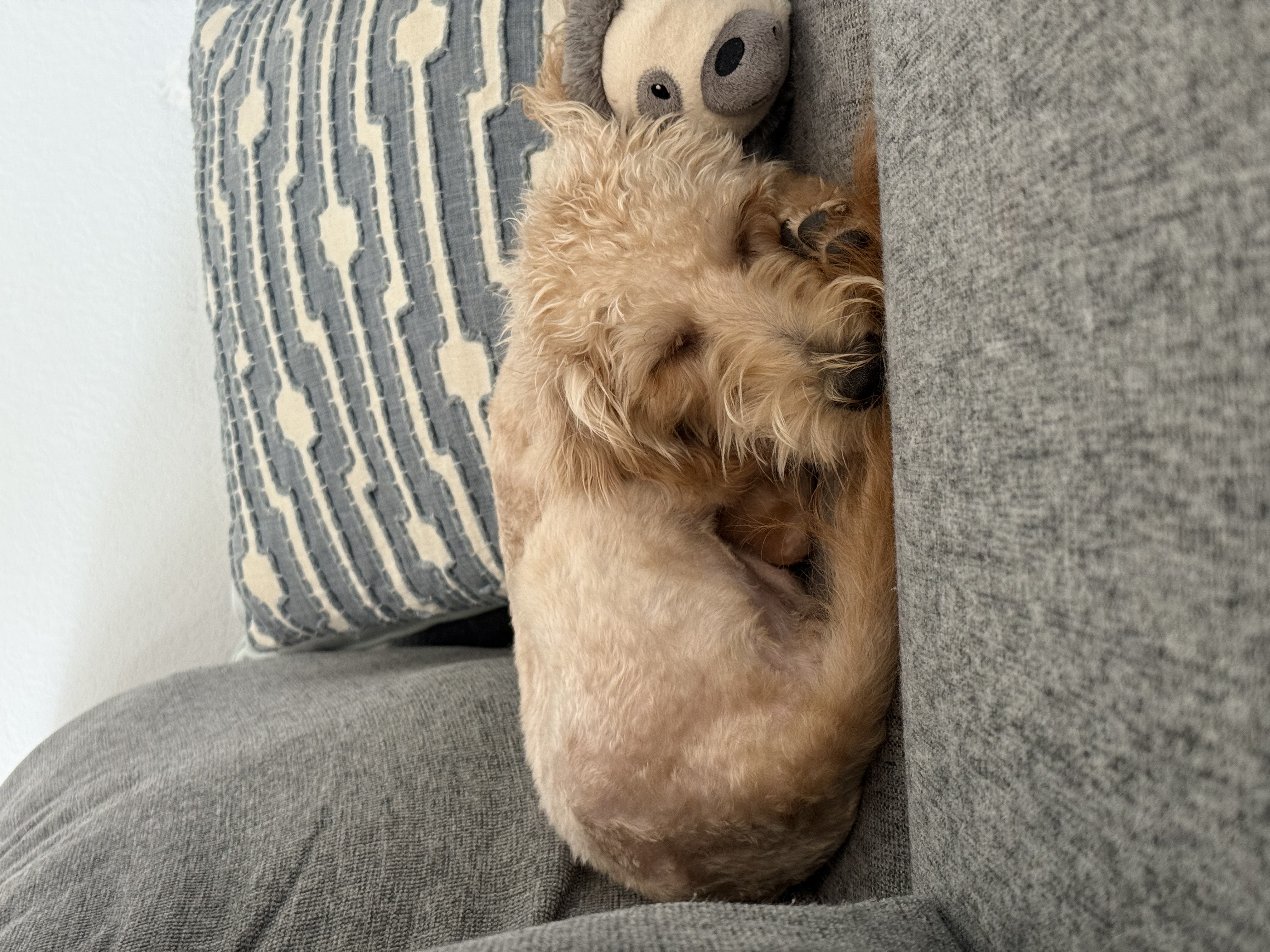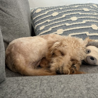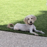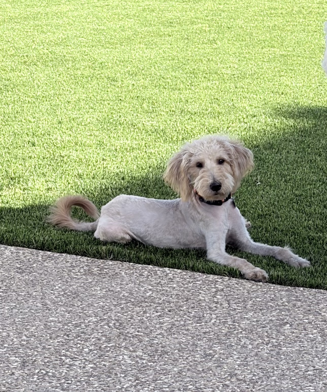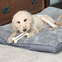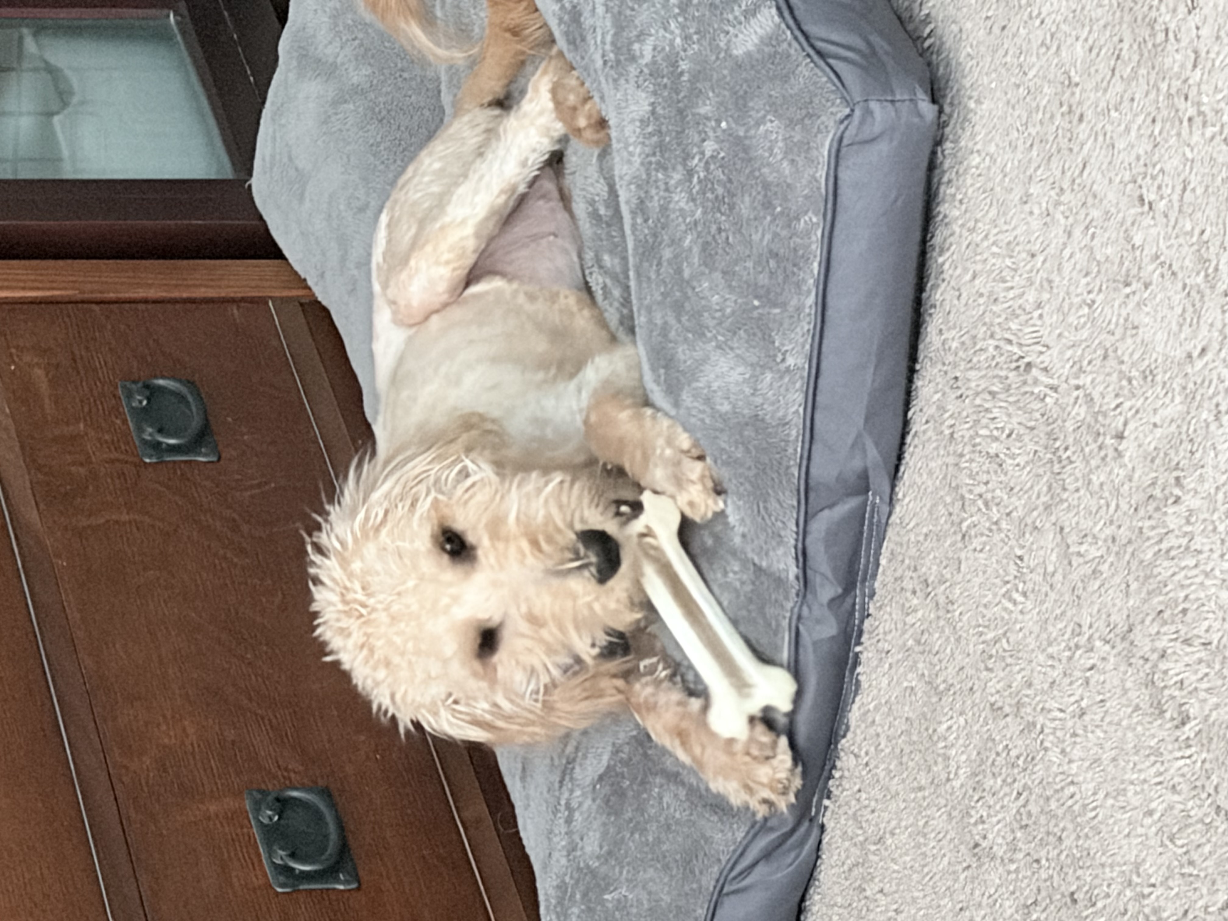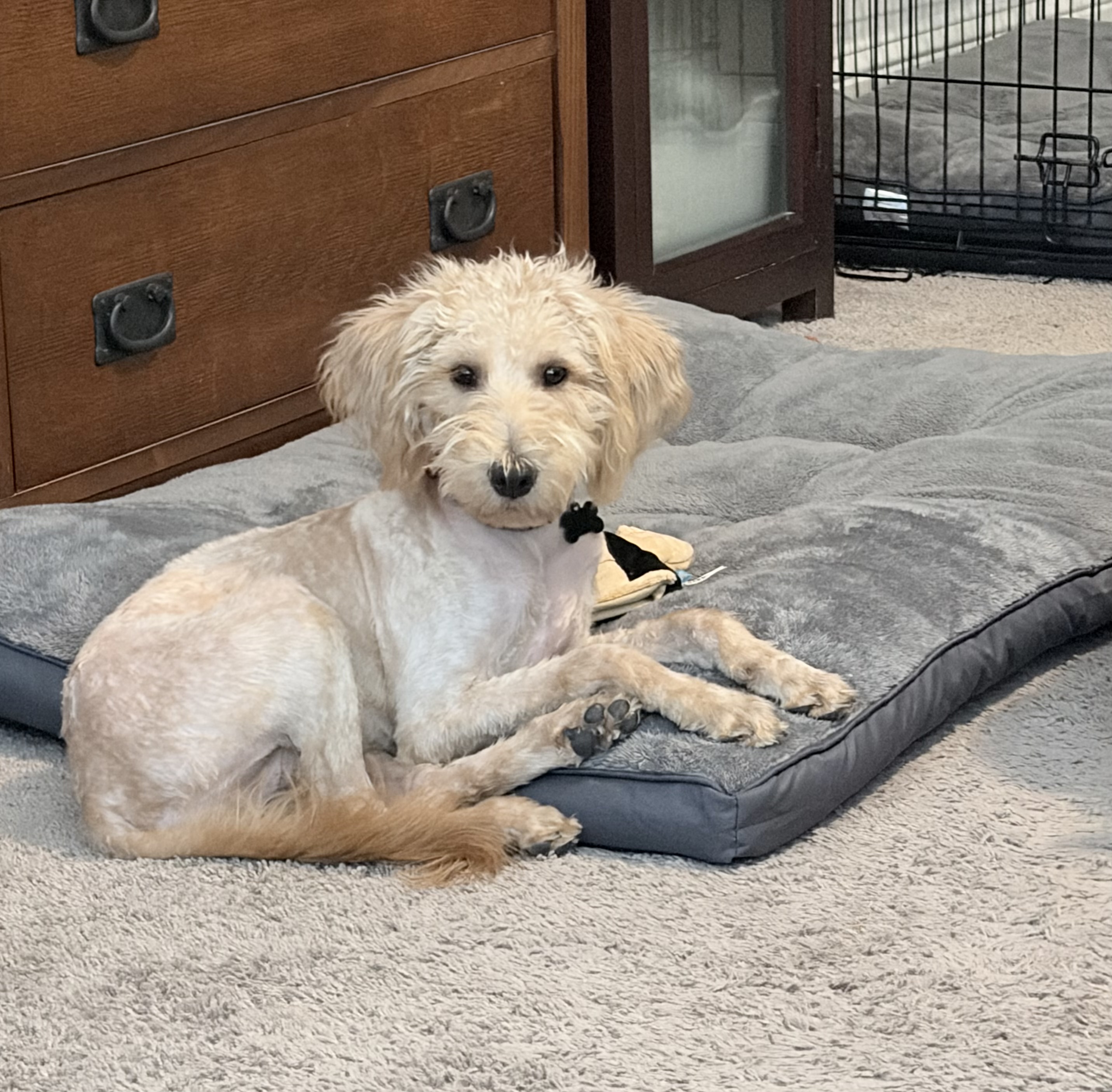 My foster family thinks I’m a mini labradoodle because I look just like my older foster brother—just fun-sized and a lot more opinionated. I’ve got plenty of pep to burn, so a good routine keeps me at my best. Fetch is my favorite hobby, whether I’m tossing the ball around myself or convincing you to play with me. I also take my bone-chewing very seriously, so stock up.