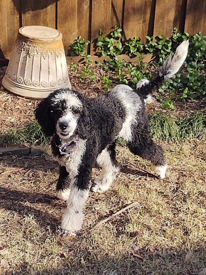 Hi, I’m Oreo! I’m convinced you will love me even more than you love the cookie! I’m a 9-month-old female Sheepadoodle, weighing 40lbs and shedding very little.