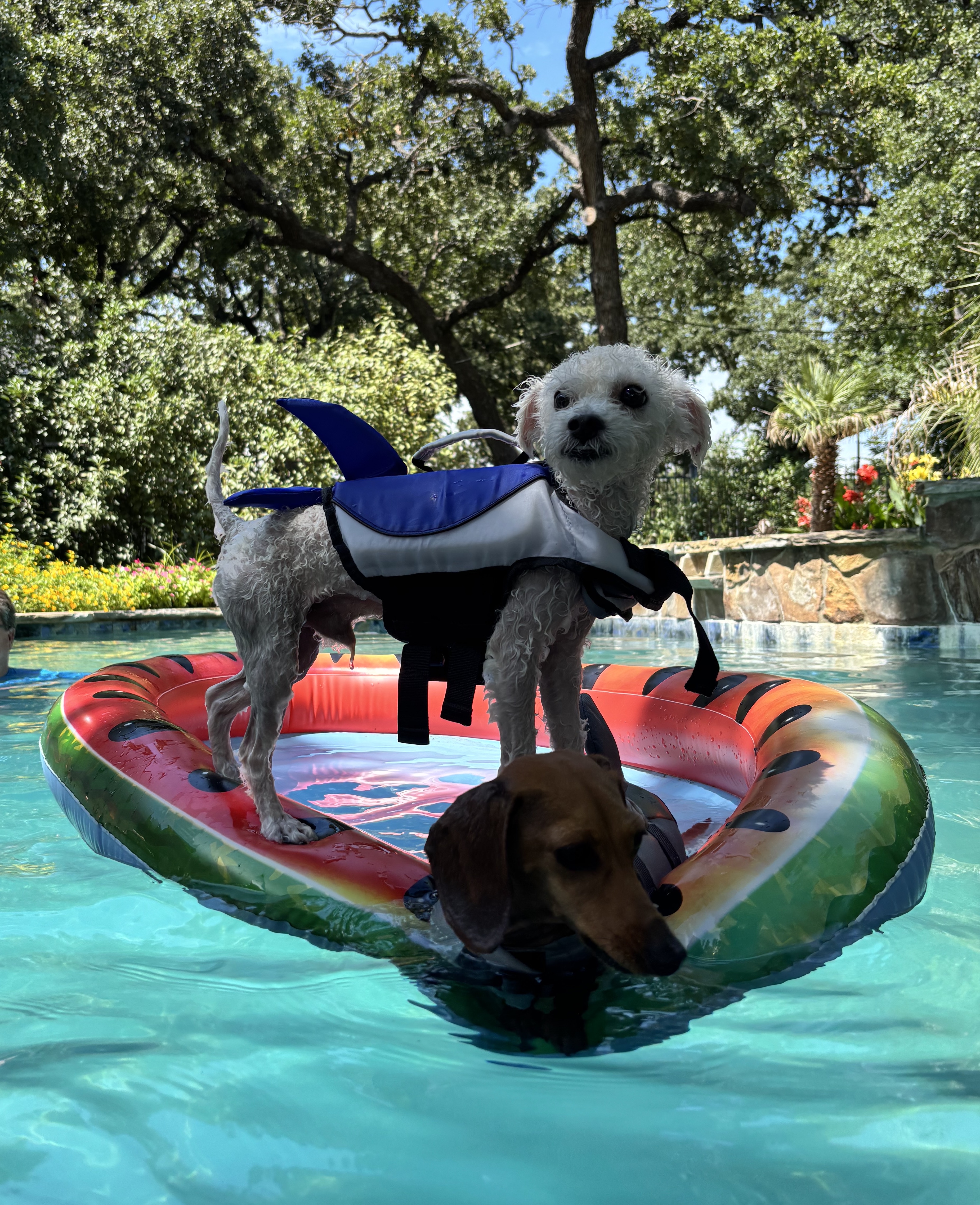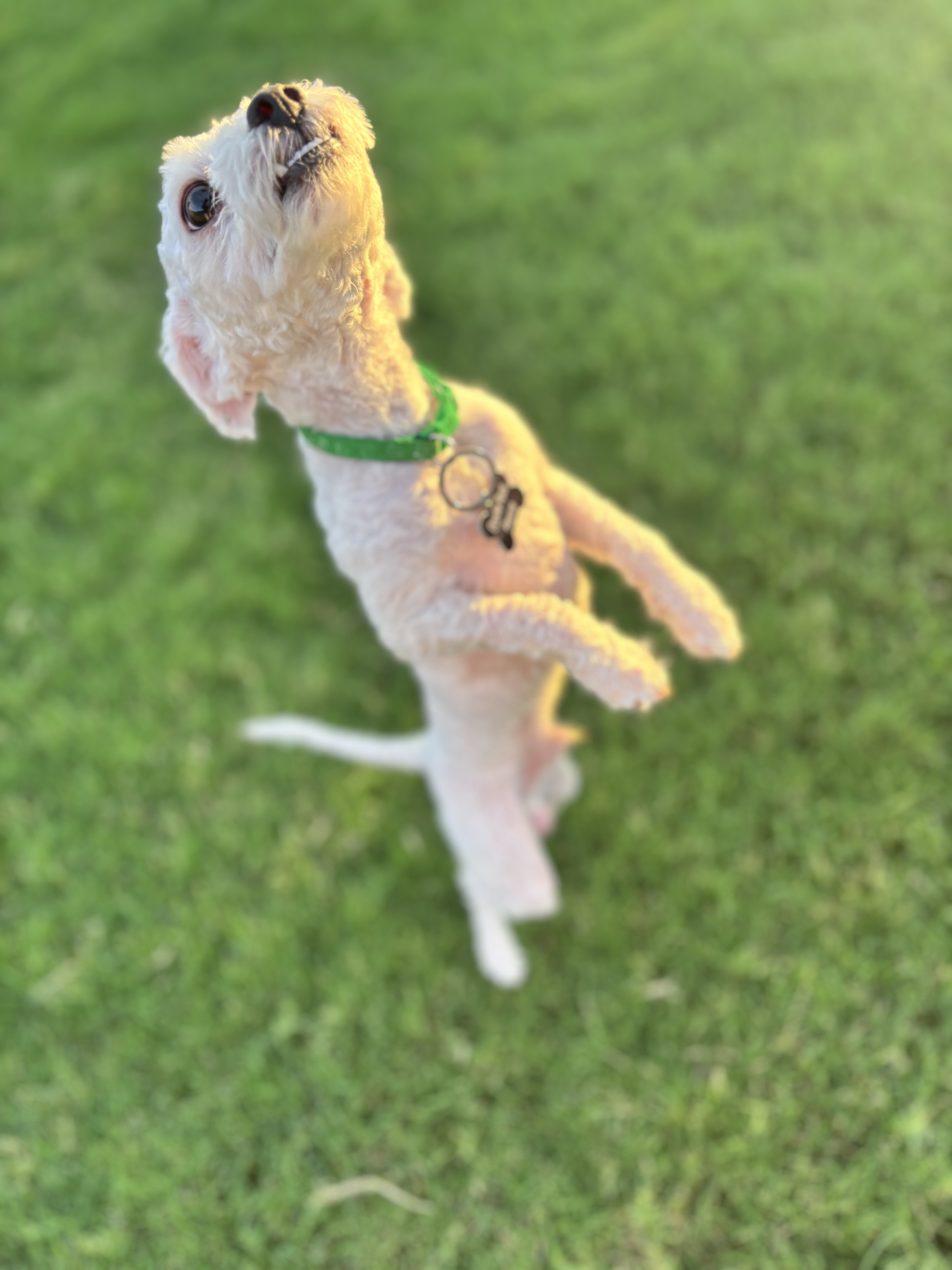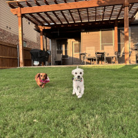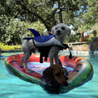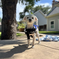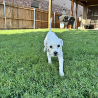 Hi there! I’m Pablo—though around here, I answer to all sorts of names: Juan Pablo, Picasso, Juan, or just plain Pab. I’m a 6–8-month-old doodle mix, tipping the scales at just over 7 pounds, and I’ve been told I have *the* most charming underbite this side of DFW. I like to think it adds a little character to my already adorable face. I’m a wiggle machine with a heart full of sunshine, and if you walk into a room, prepare to be greeted like a rockstar—I’ll make you feel like the most important human on the planet.