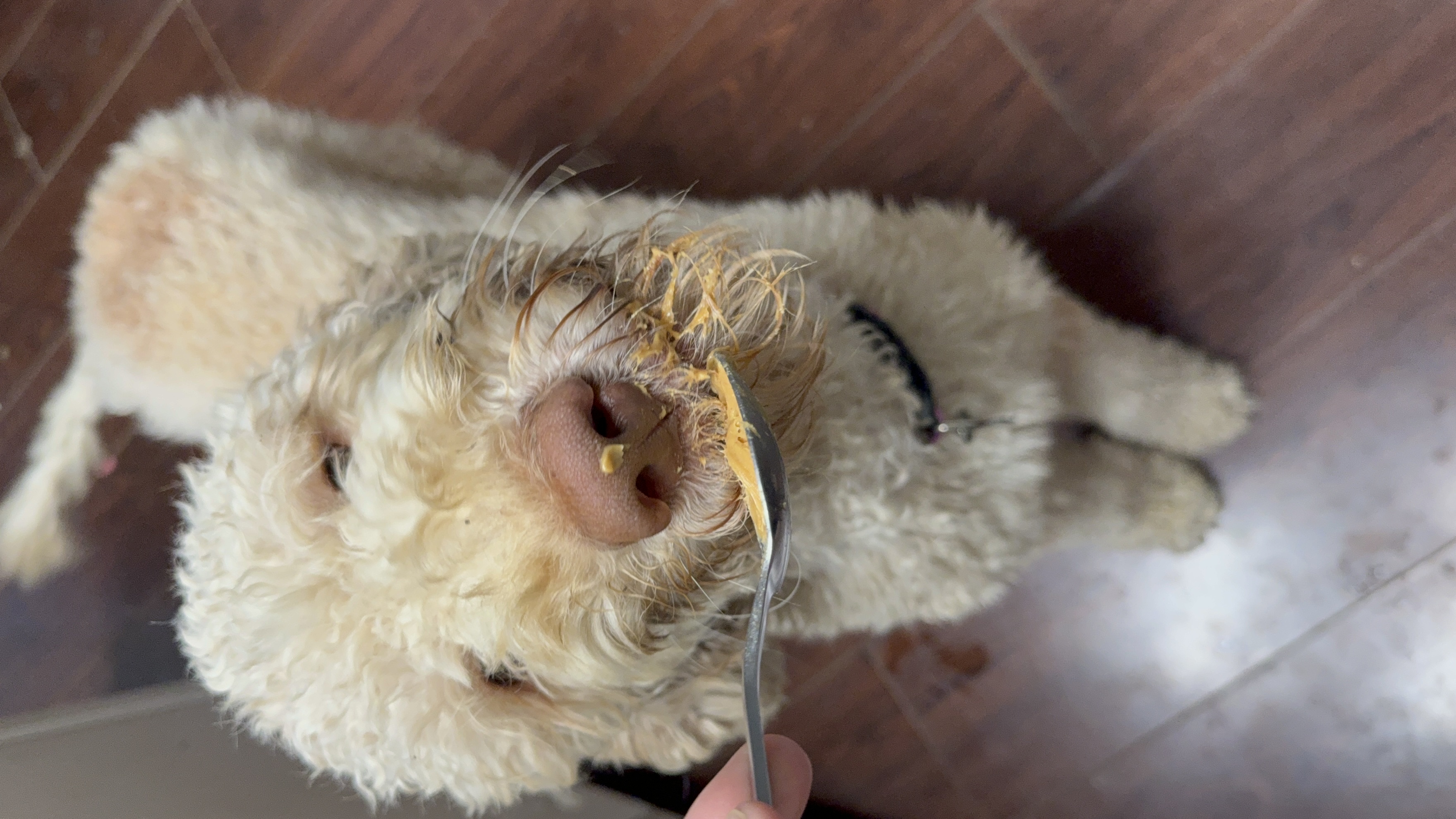 I love kids. I love other dogs. I love peanut butter. I’m so obsessed. The minute I hear the lid fall on the kitchen counter, I skid around the corner, find my place, and sit. I try SO hard to sit still but peanut butter is my weakness!!