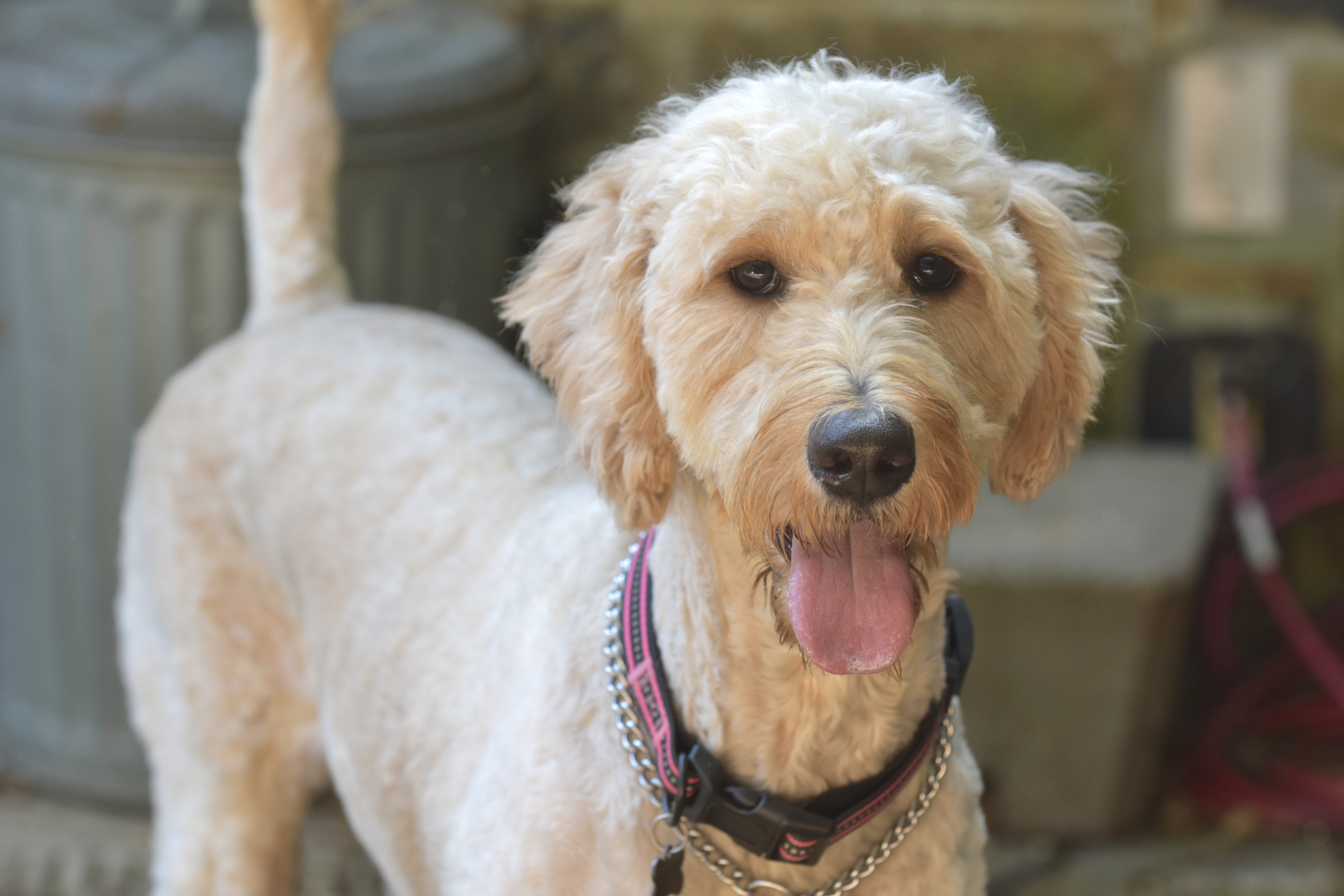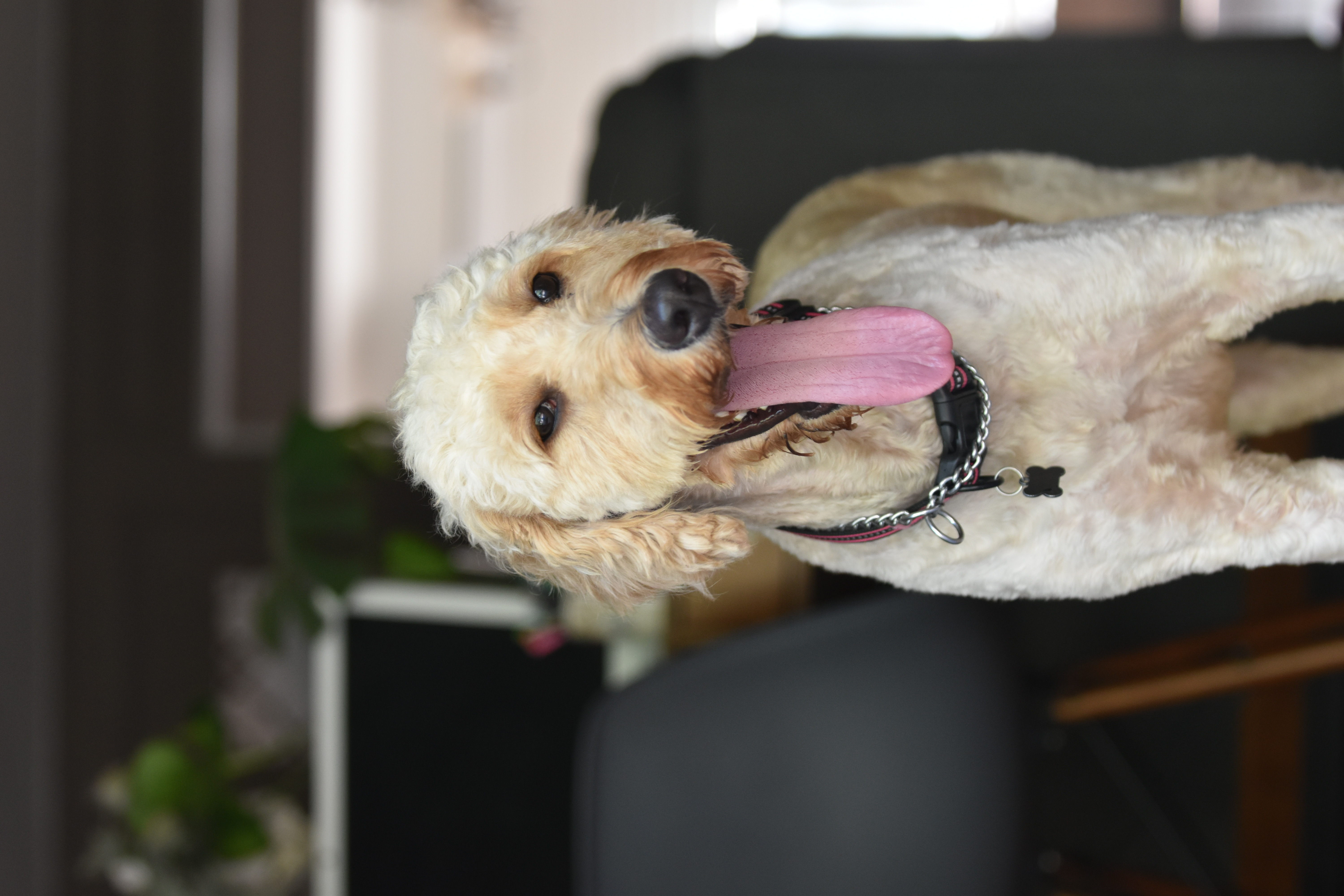 We are working on my leash training and basic commands. But I don’t like the leash at all right now. So I’d practice in a fenced in yard or I might run away!
