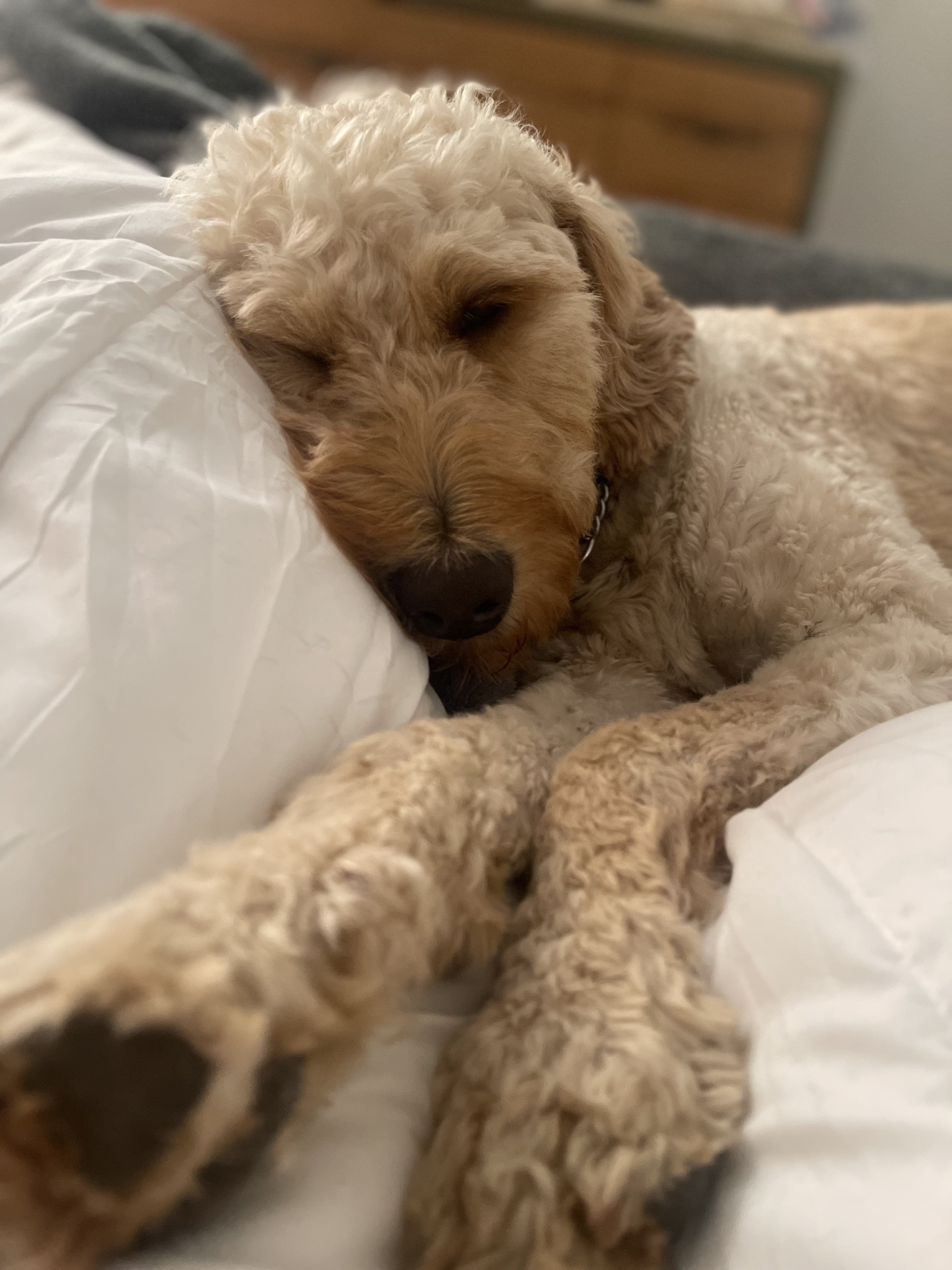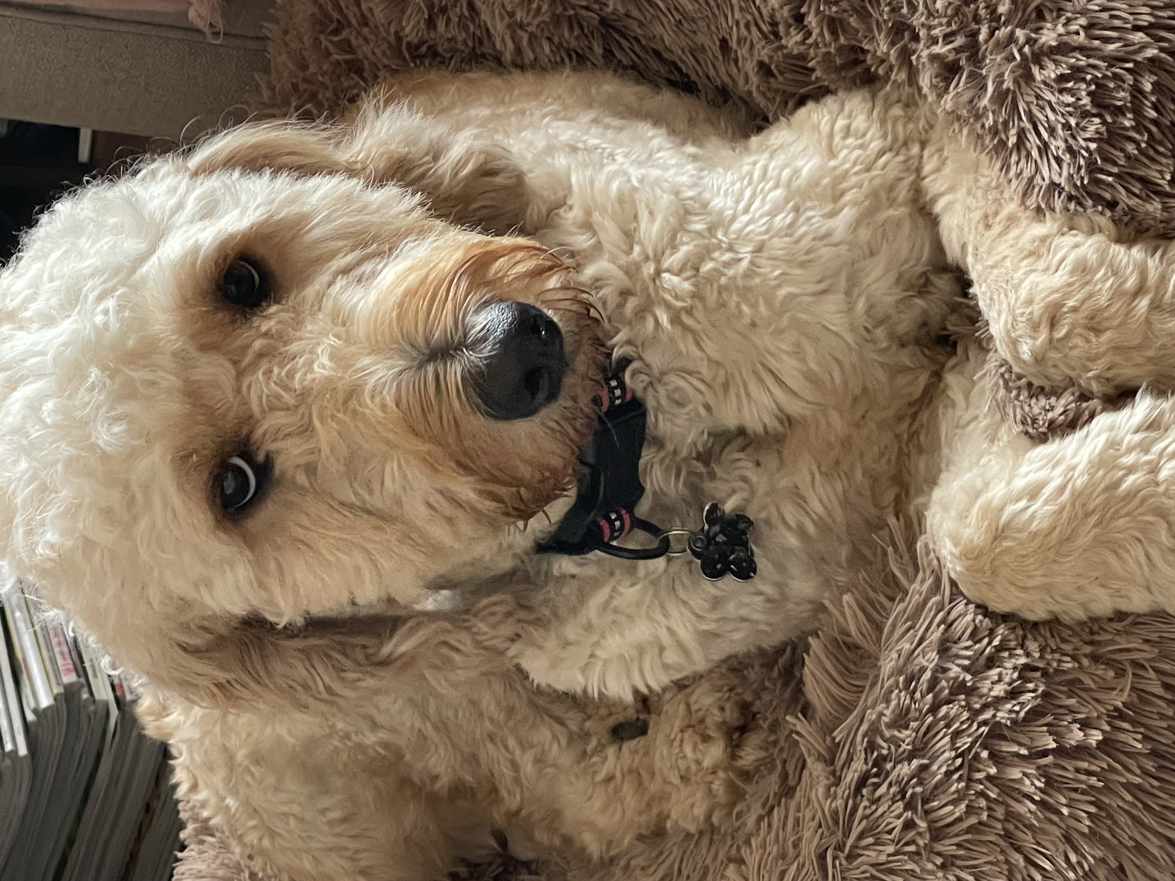My name is Paris. I’m the most beautiful Female Goldendoodle in all the land. Or that’s what I keep hearing from my foster momma. I’m between 1-2 years old. I weigh around 53 lbs. I have long model legs, and beautiful kind eyes and beautiful long eyelashes