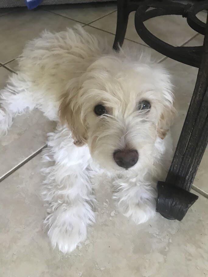 Hi everyone! My name is Parker aka Polar Bear and I am 14 weeks old and 7 pounds of adorable fluff (if I do say so myself!). I have lots of white fur with peach accents - I'm super soft and only shed a little. They say I have deep soulful eyes that make you fall in love with me.