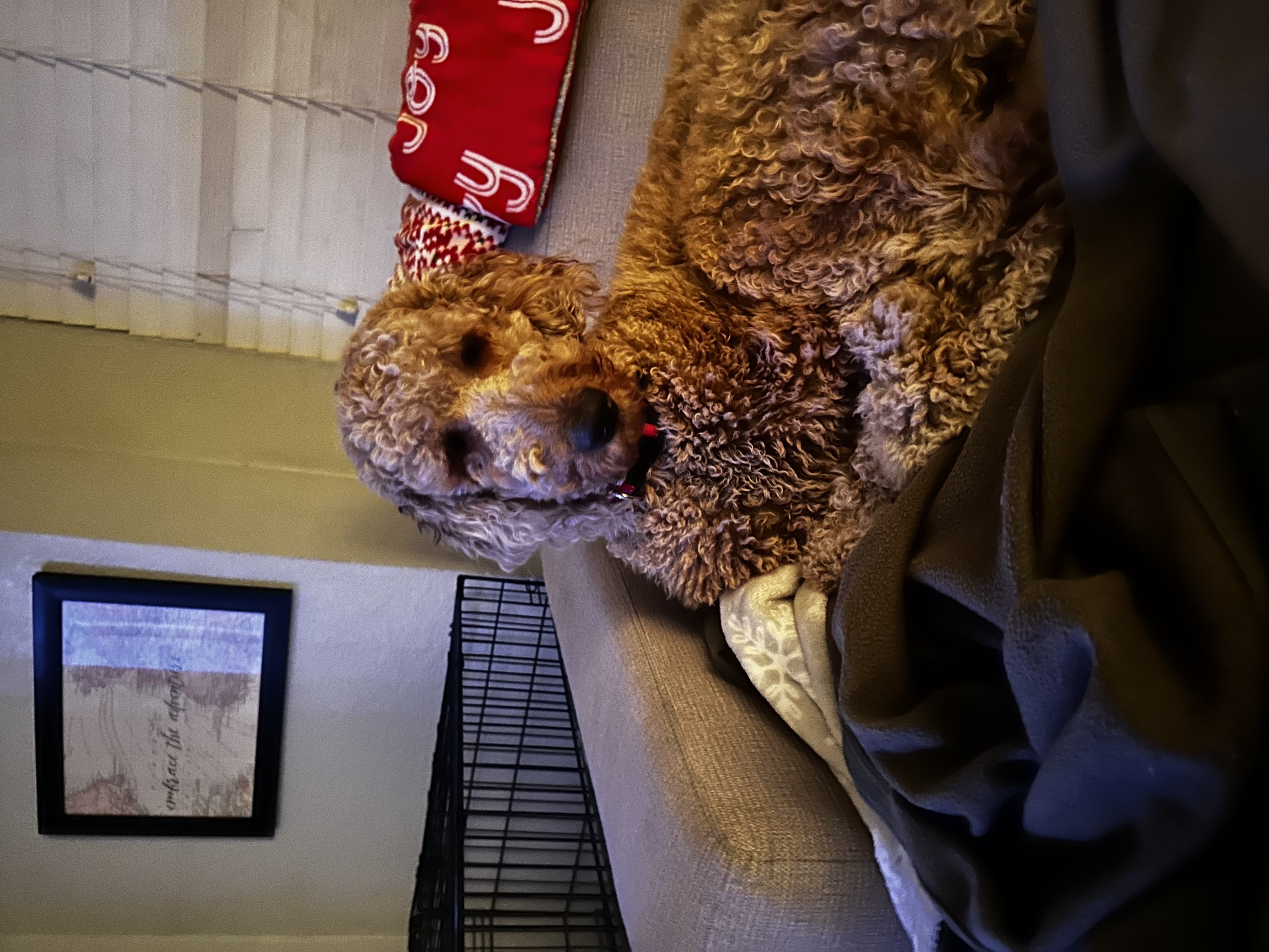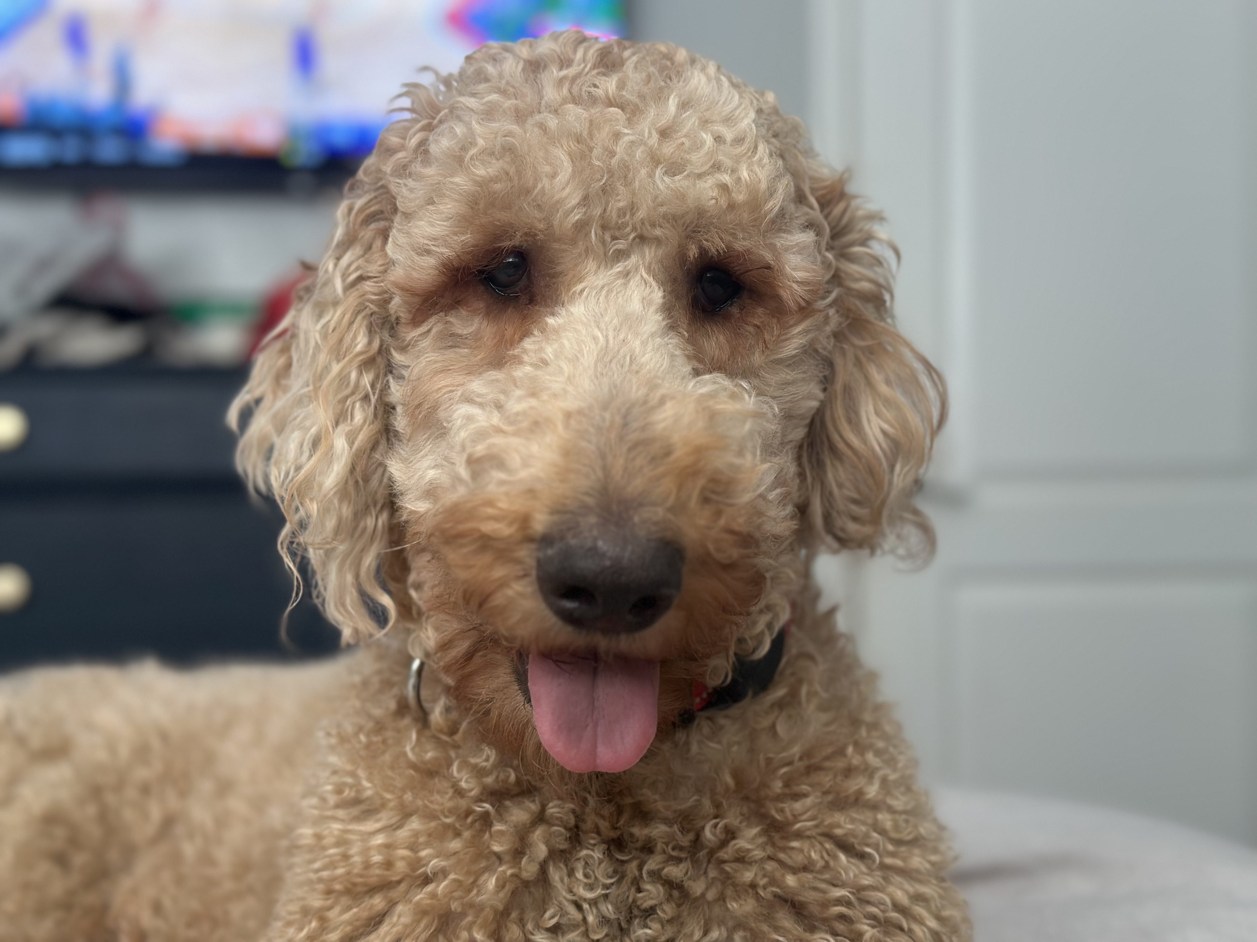My name is Pascal, and I’m a two-year-old doodle tipping the scales at a proud 73 pounds of pure enthusiasm. If you’re looking for a dog who lives life at full speed and with a full heart, I might be your guy. I’m a big ball of energy who’s always ready to play, run, and chase anything that looks remotely tossable. When someone walks through the door, I make sure they know just how thrilled I am to see them. I greet the world with a wagging tail, wiggly body, and sometimes whatever I can grab in my mouth—leashes, blankets, toys, dog beds—really anything nearby when excitement strikes.