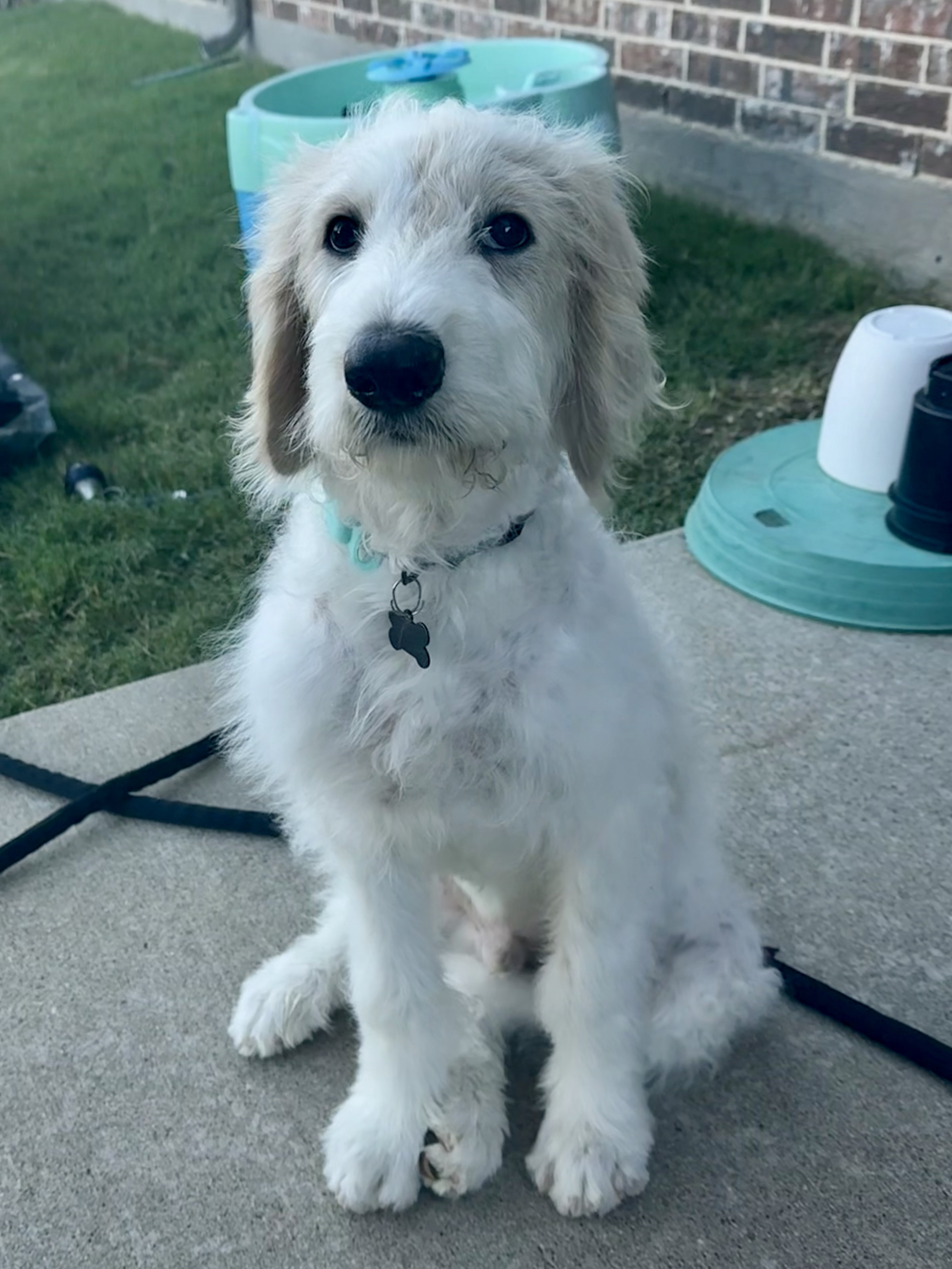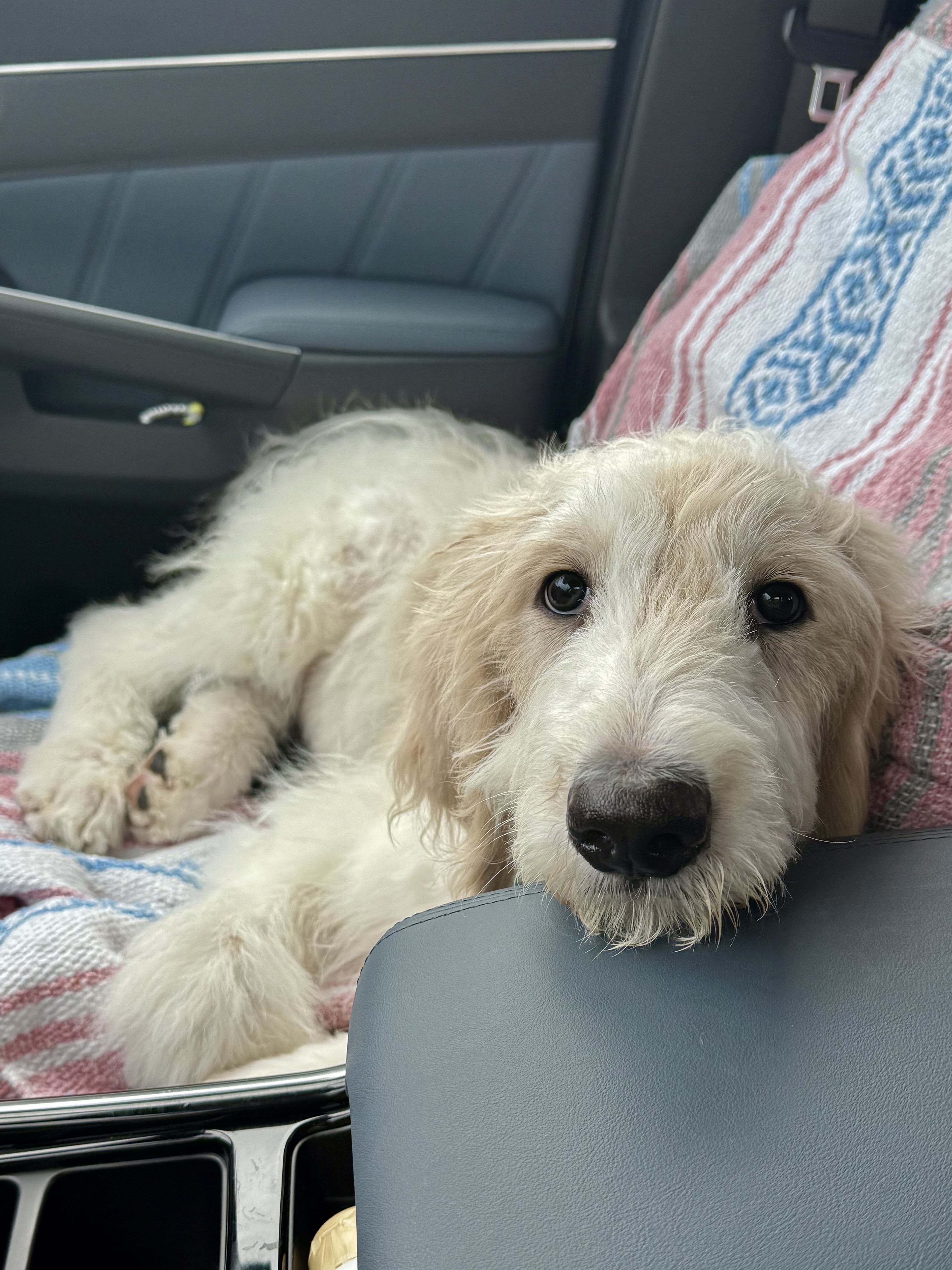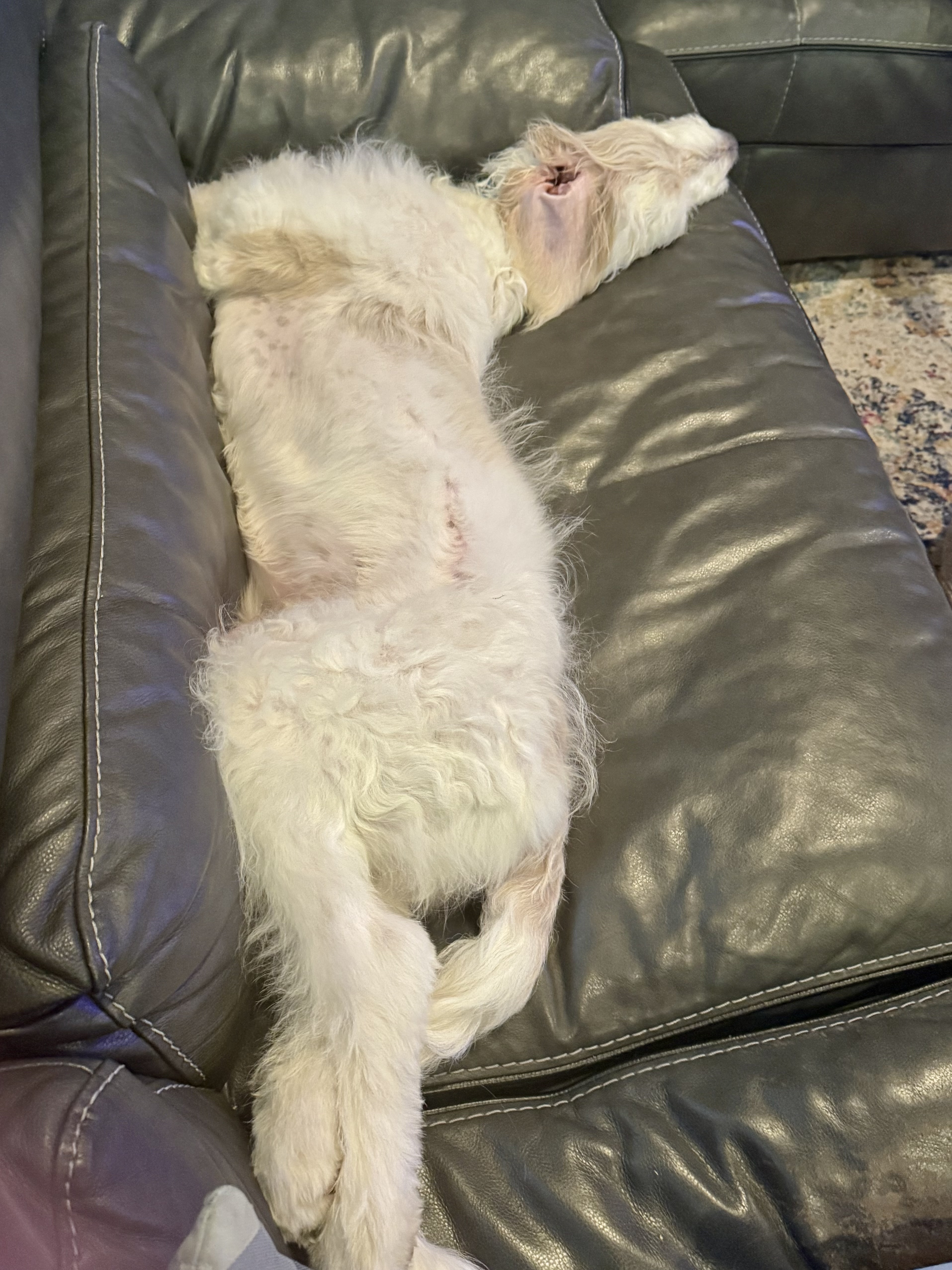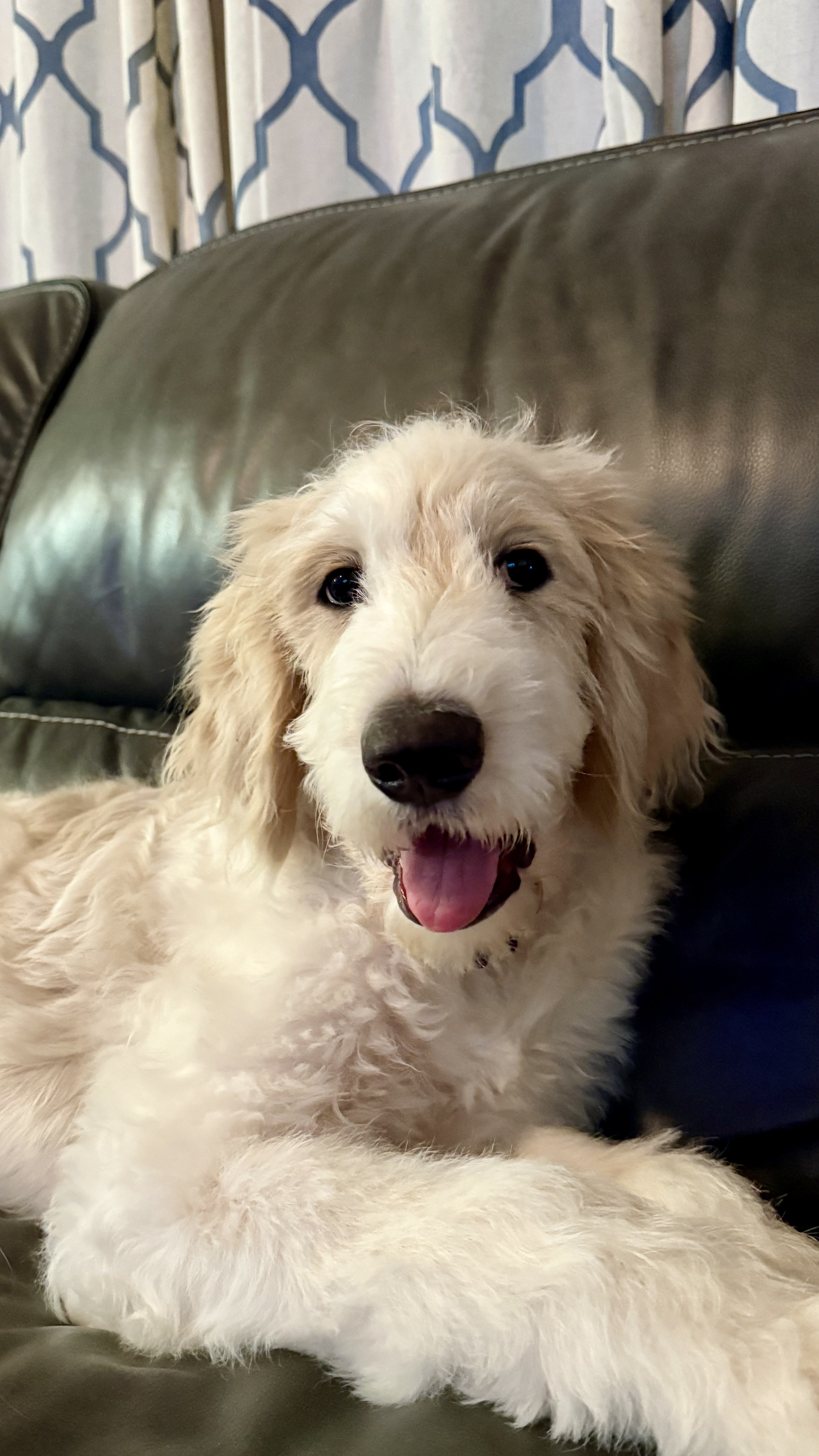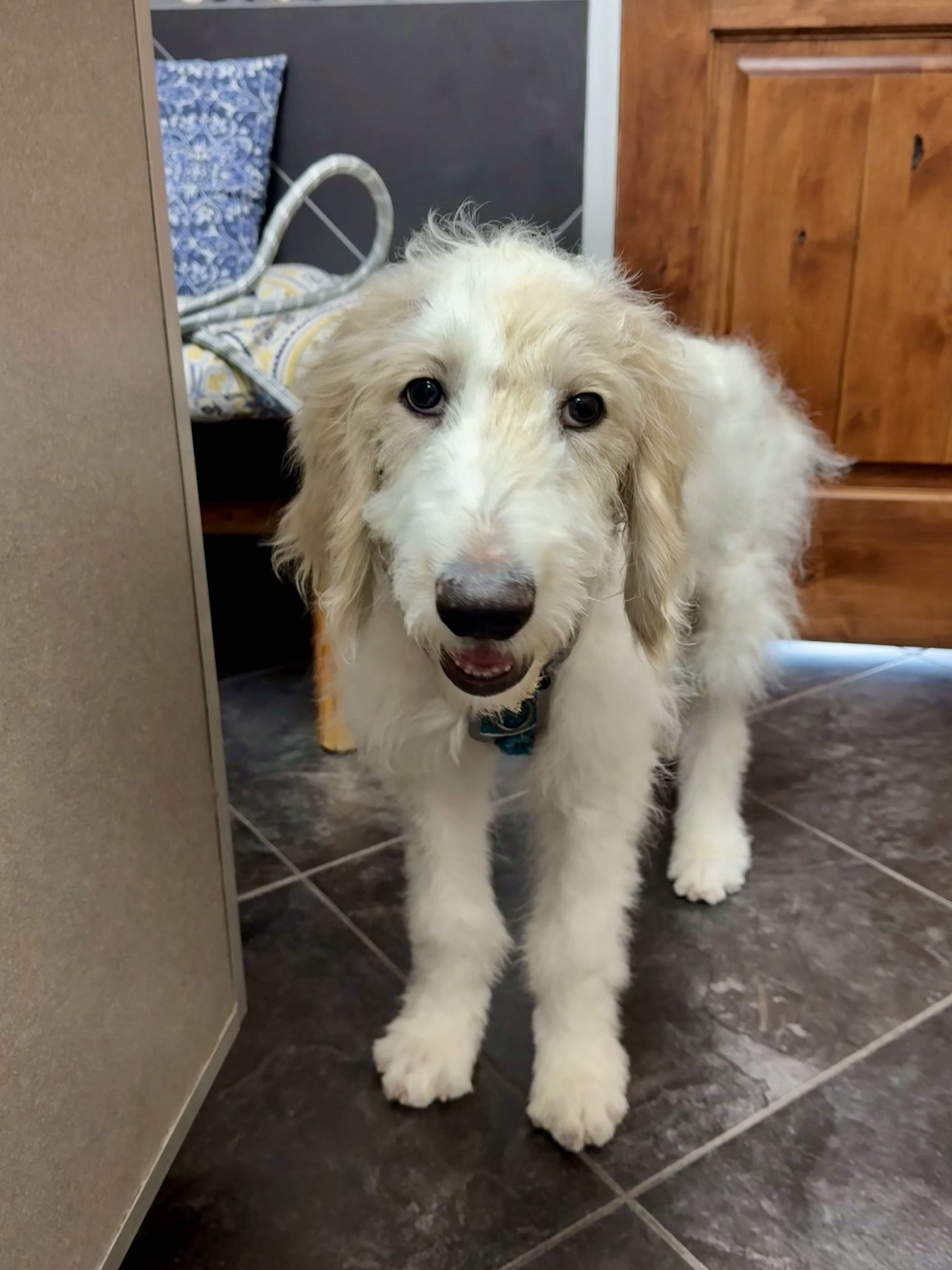 Hi, I’m Peanut Butter — but my foster family calls me Peanut, or Mister Peanut when I’m being especially ridiculous (which is most of the time). I’m a 4–5-month-old Pyredoodle with legs for days, ears that still haven’t caught up with my head, and paws that say I’m destined to be a big boy. Basically, I look like a baby giraffe in a fluffy coat — and yes, it’s as entertaining as it sounds.