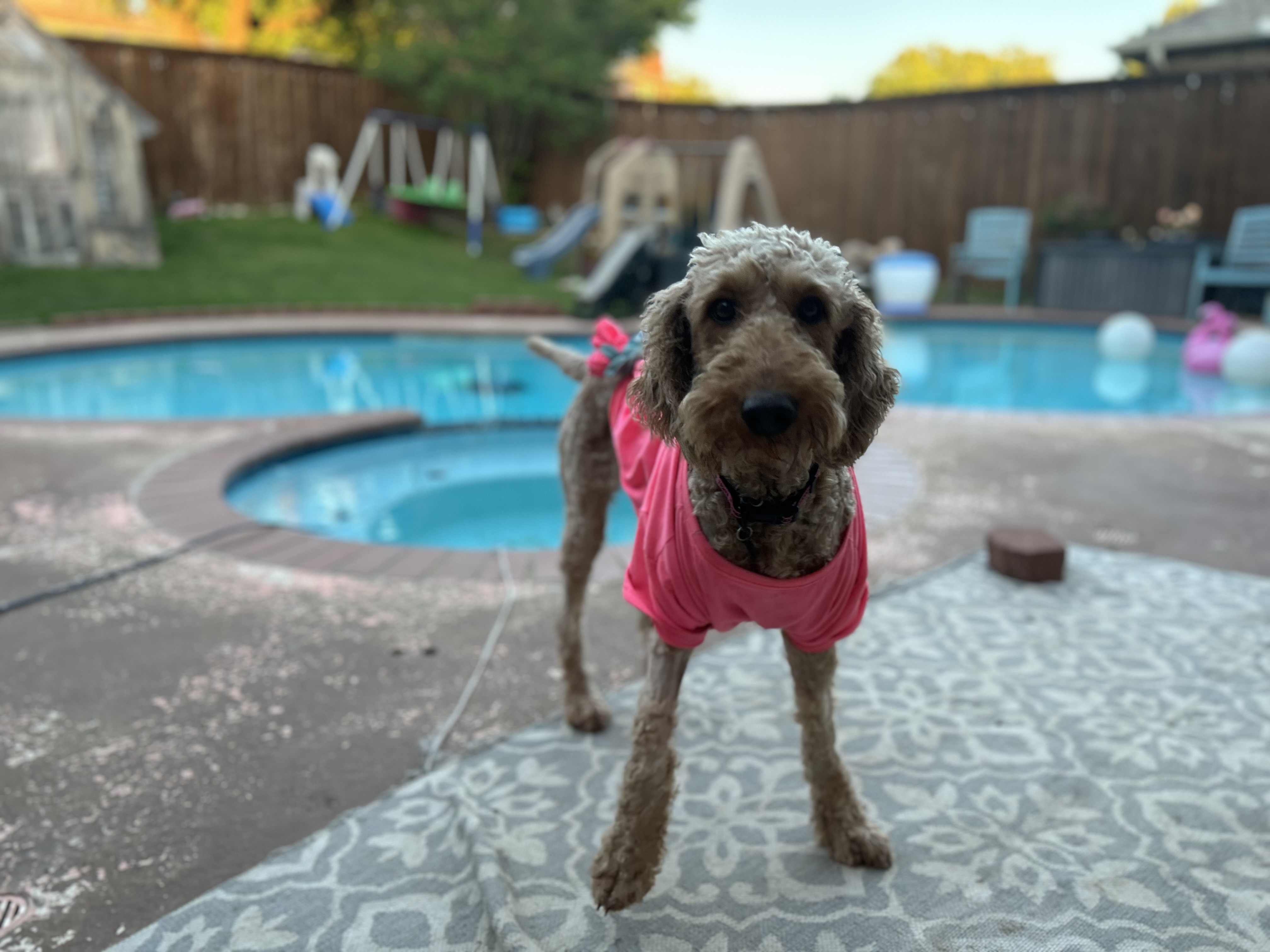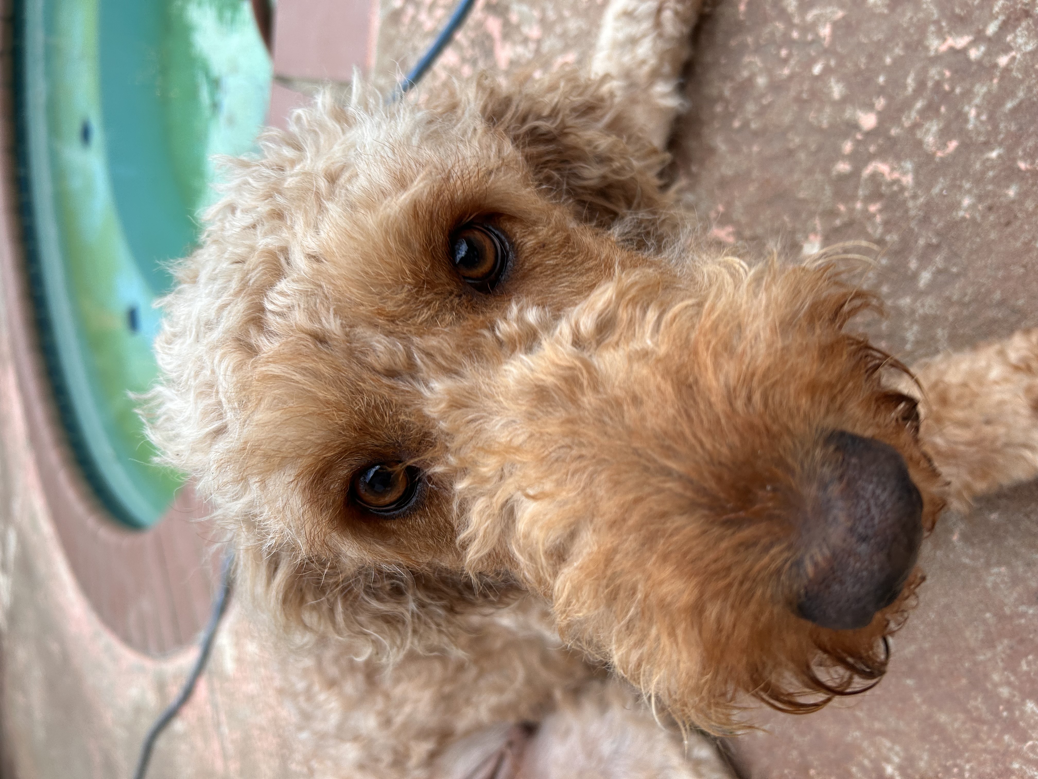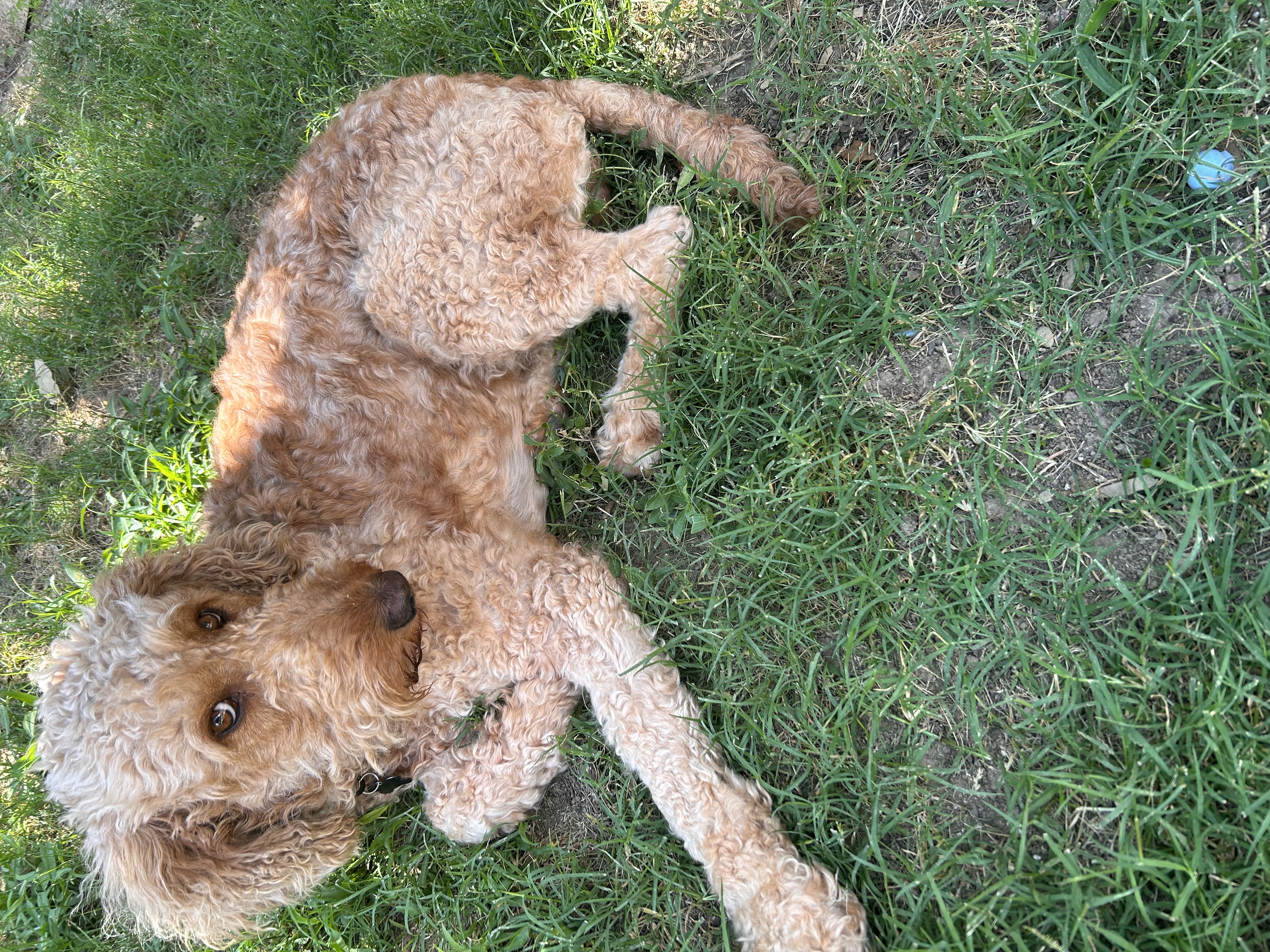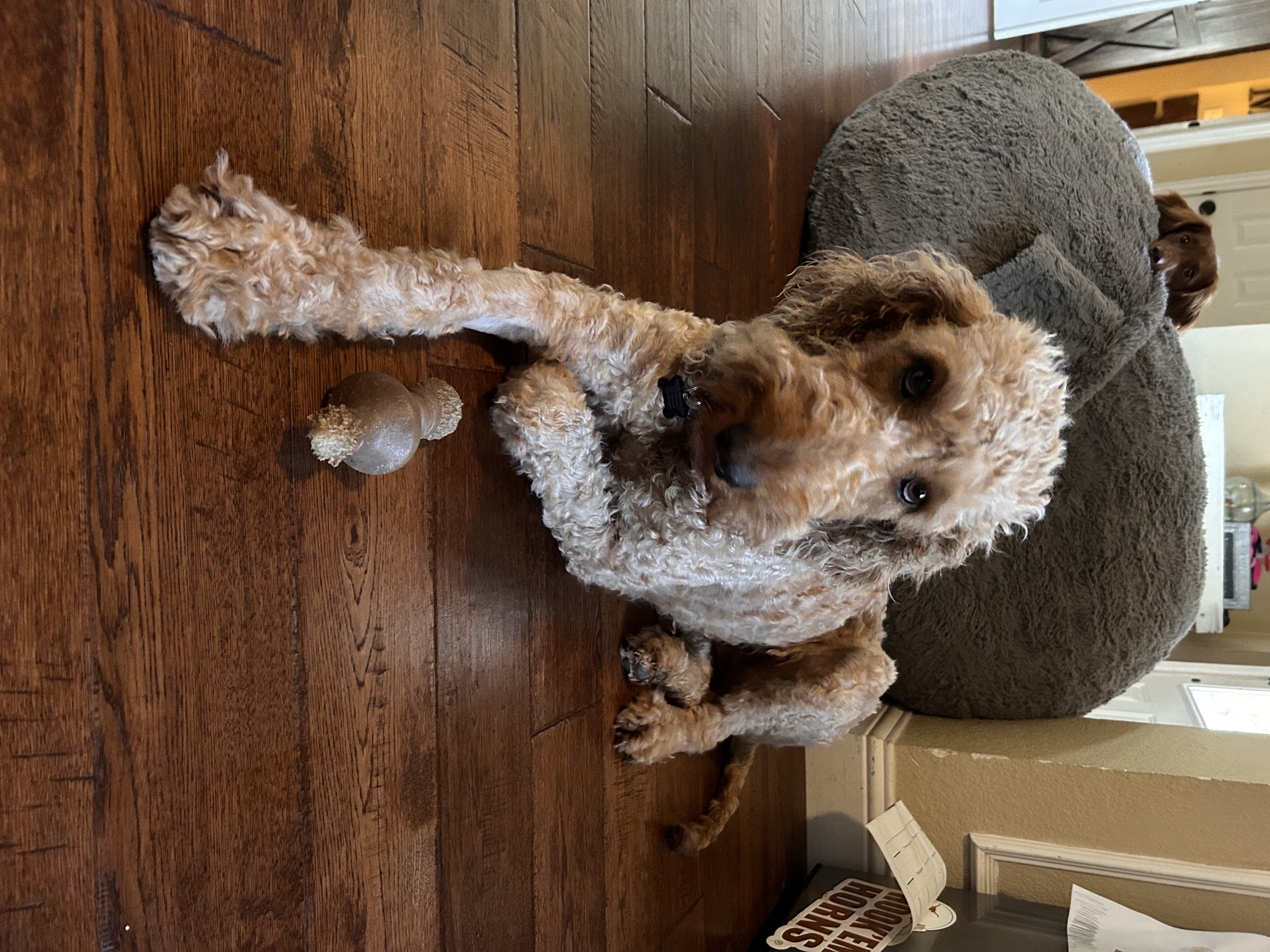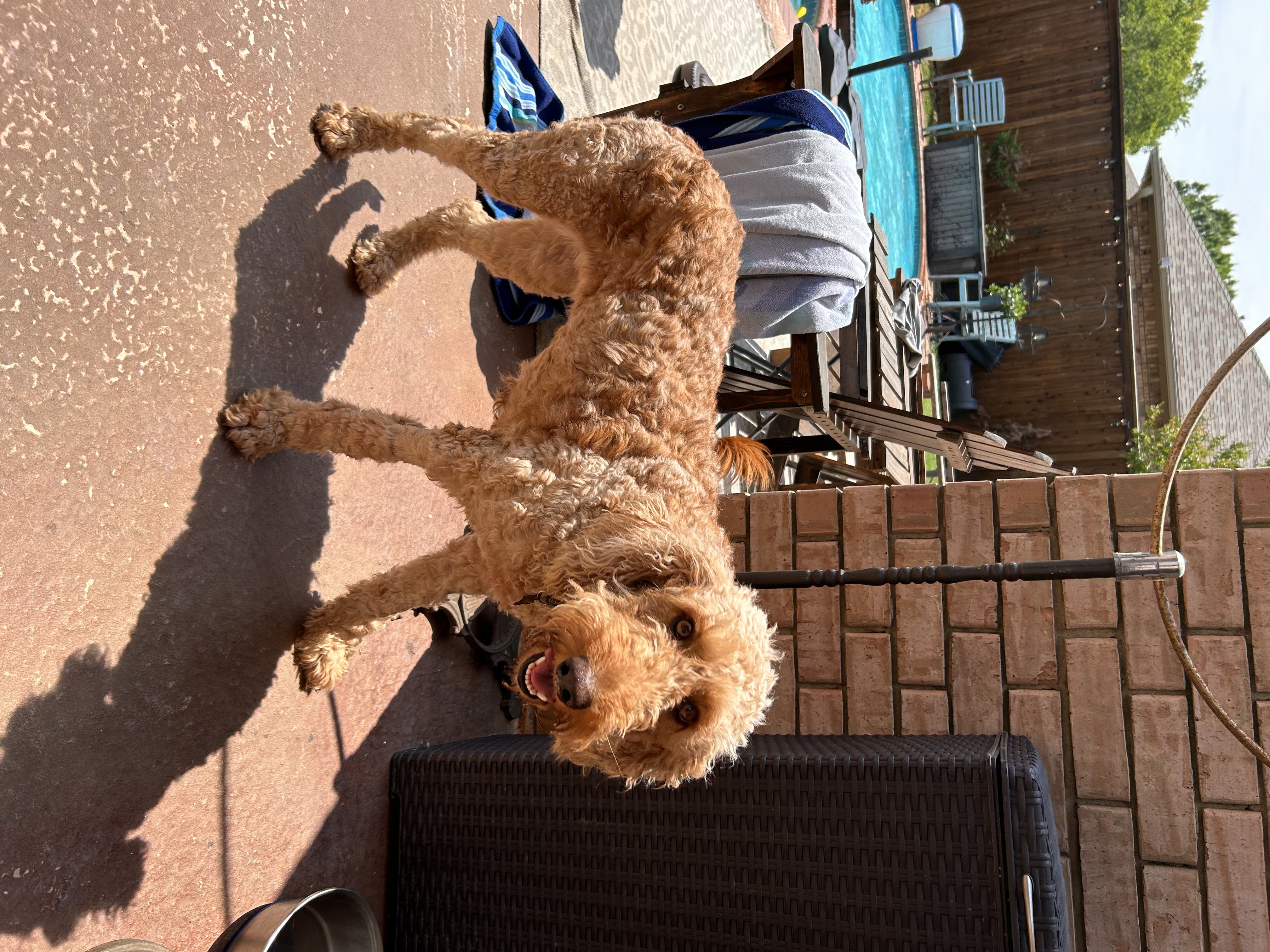 Hi, my name is Perdi. I am a 2yr old, 50lb female Goldendoodle looking for my forever home. I have lived all of my life outside, but am catching on to this inside dog thing and its the best!