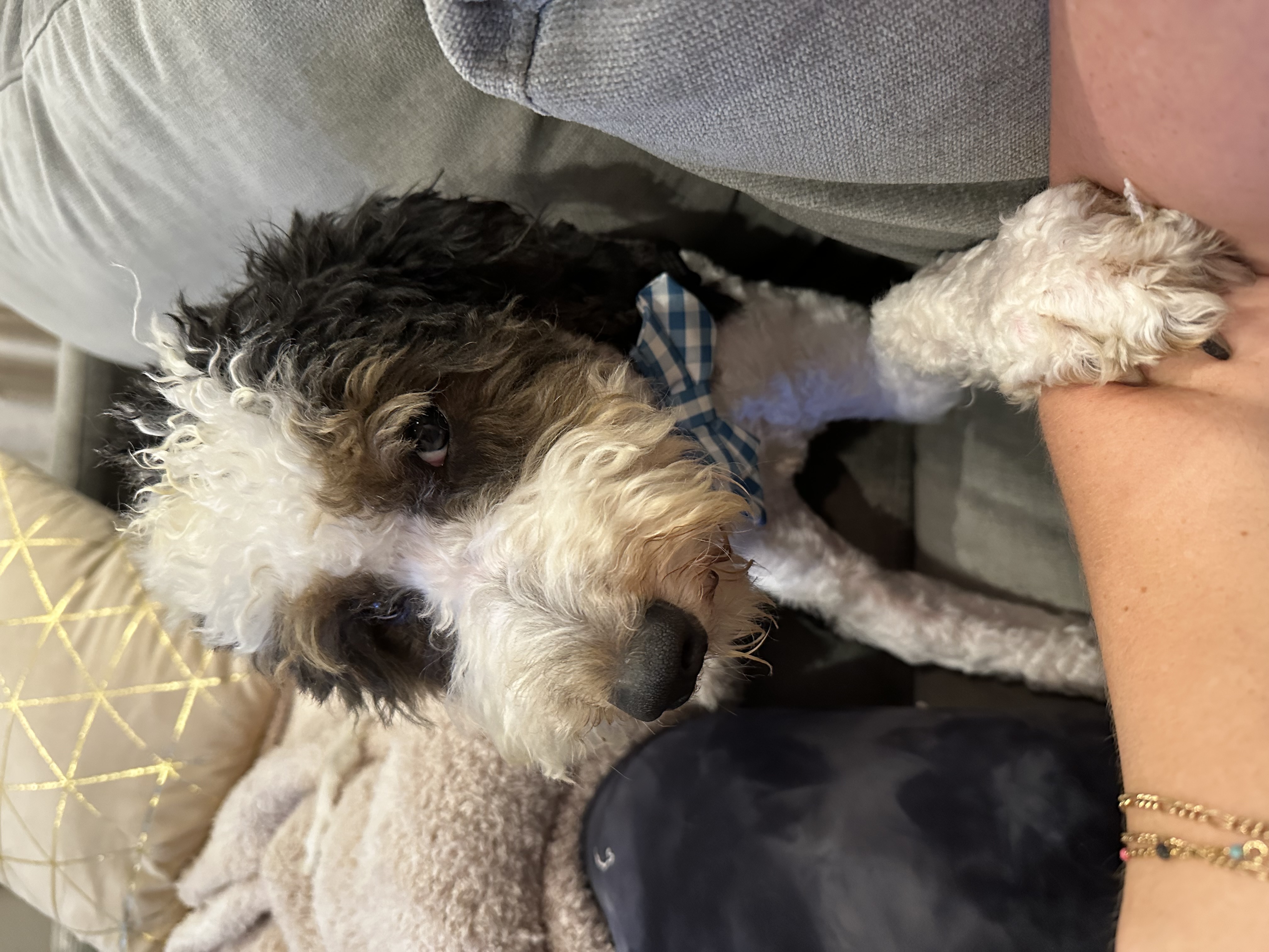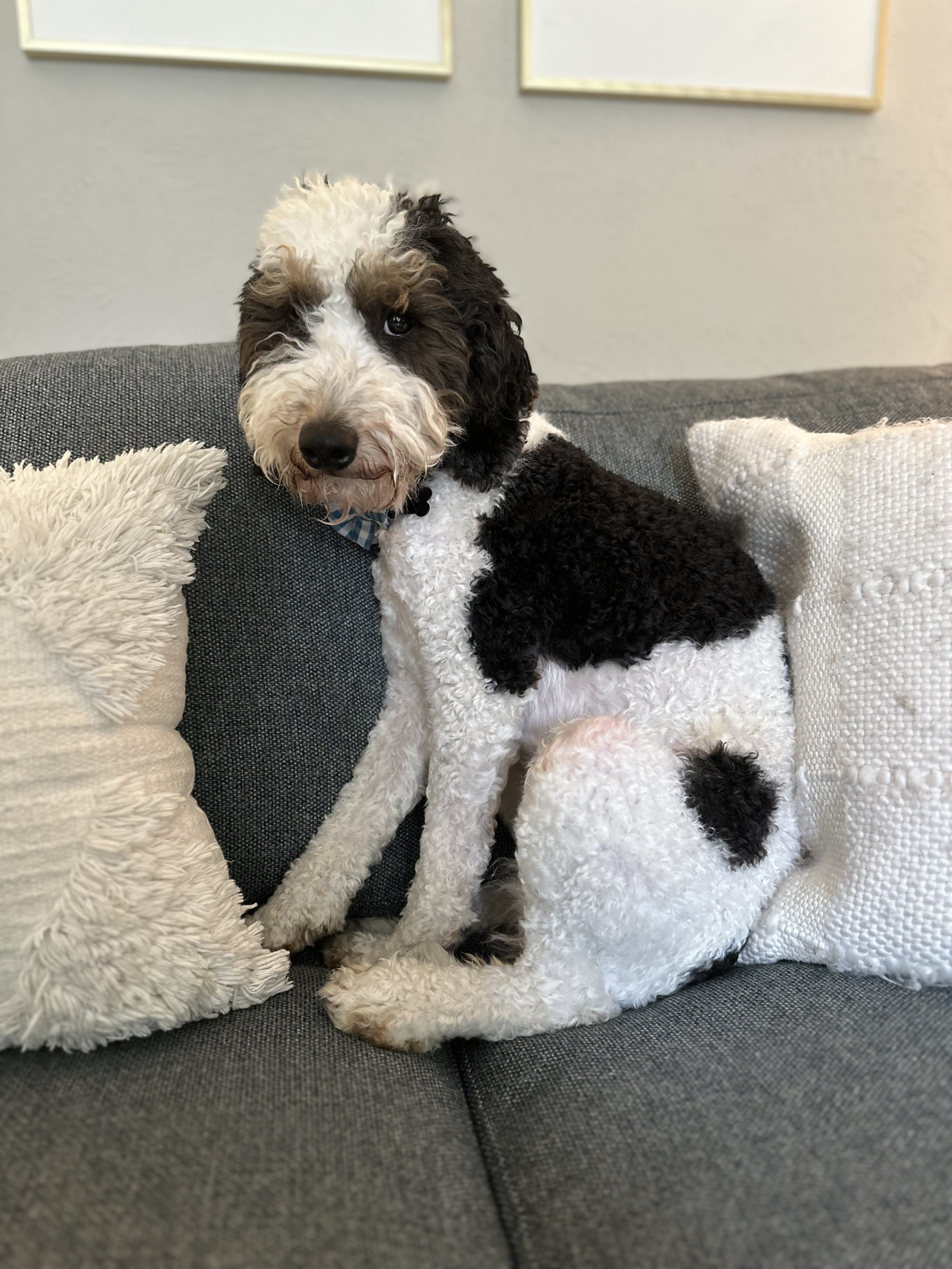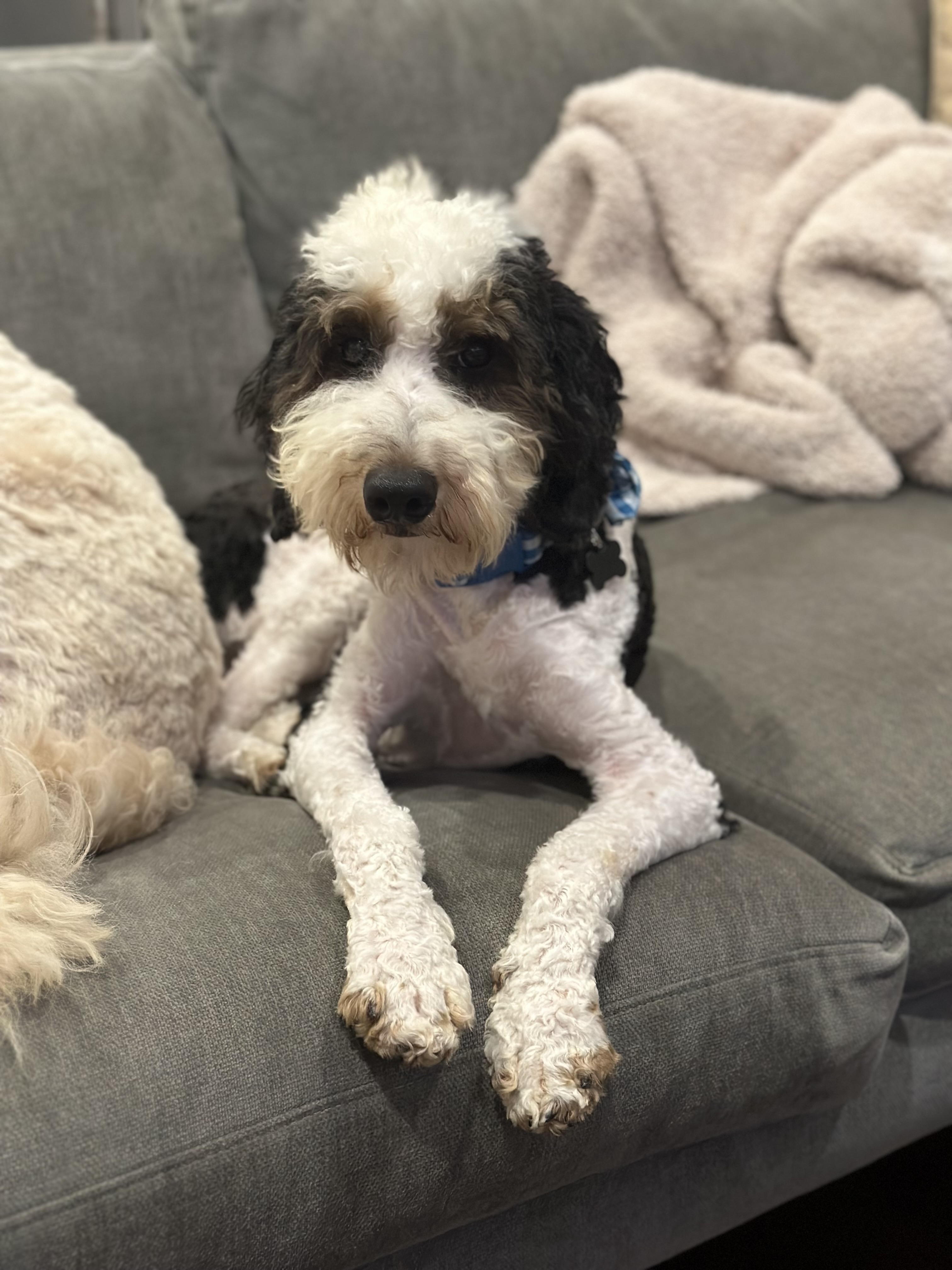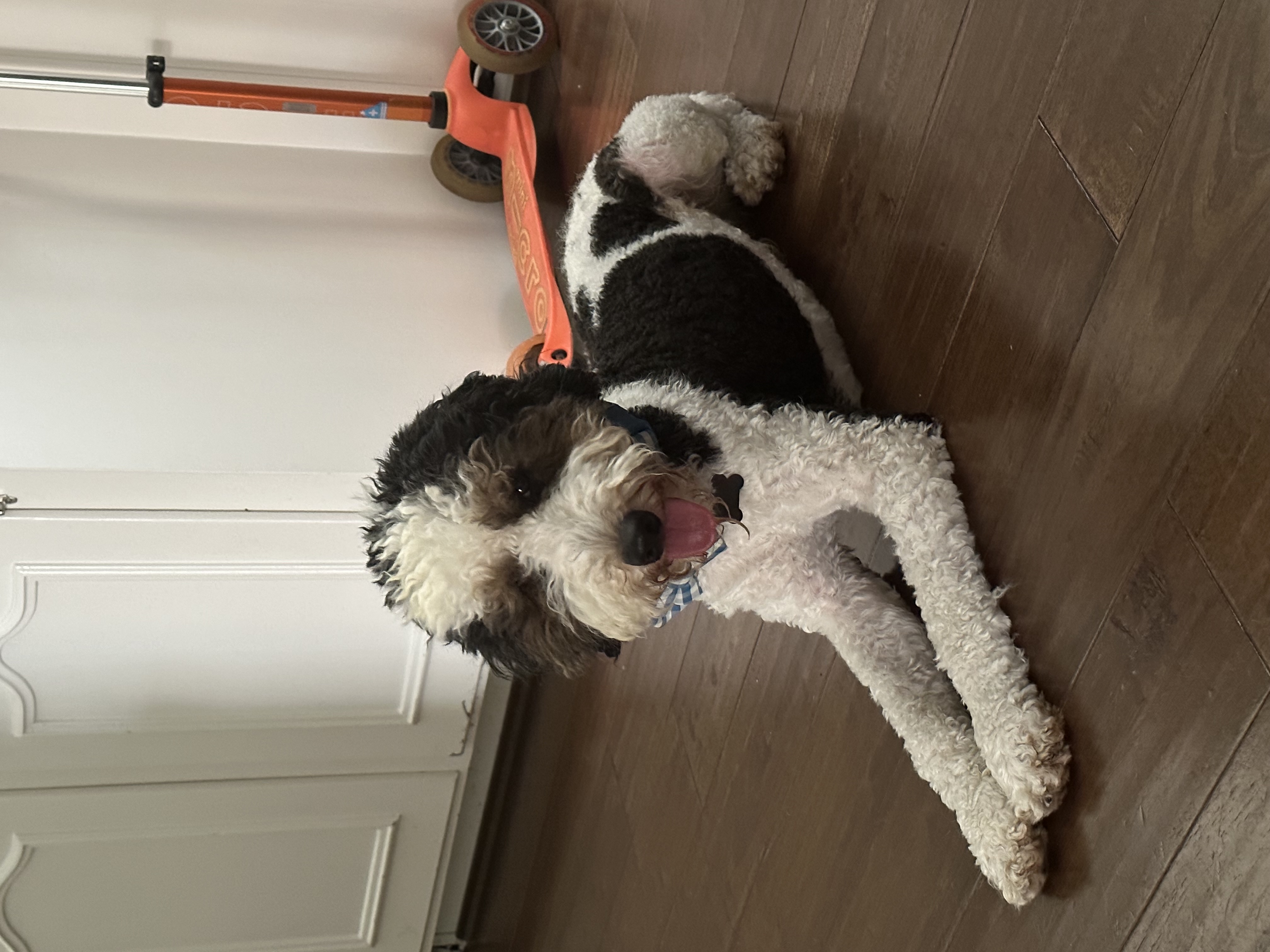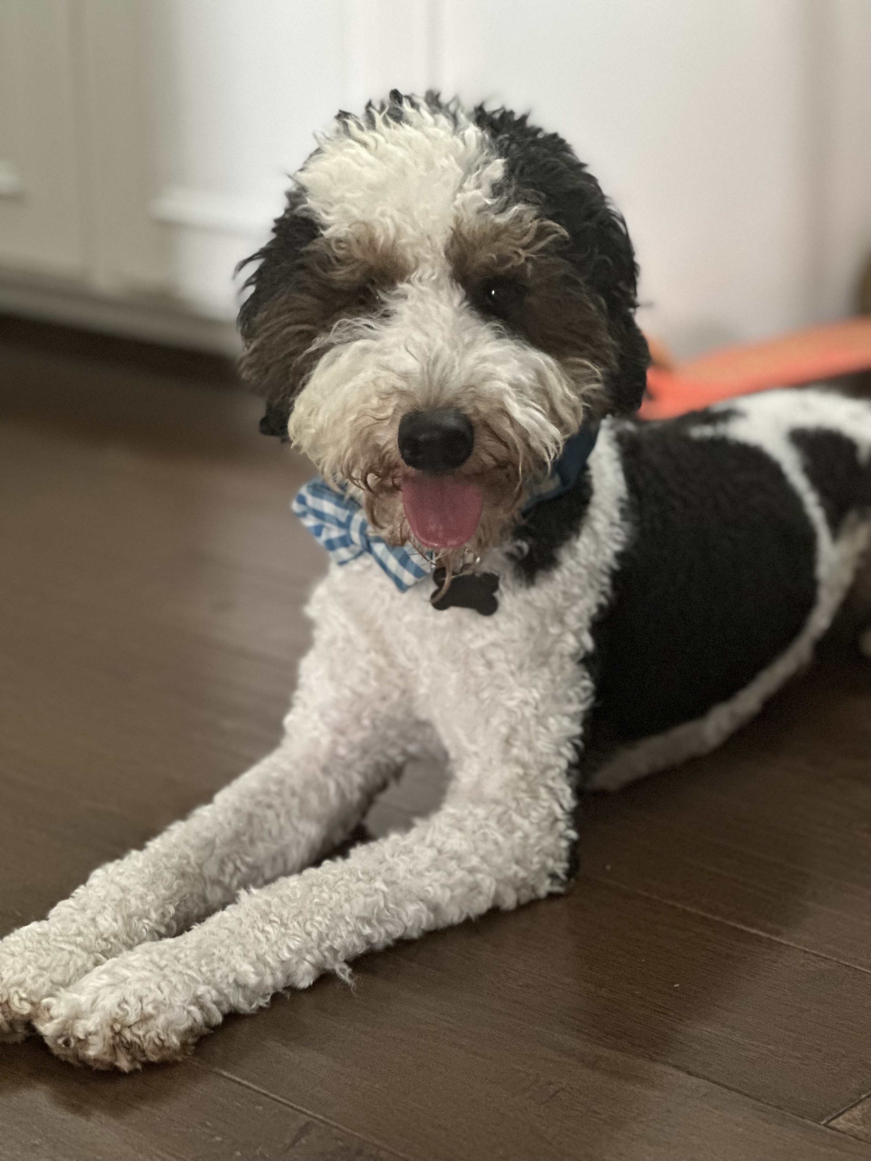 My name is Phelps and I’m a very handsome, Male Bernedoodle. The humans think I’m 2-3 years old and I weigh 22 pounds.