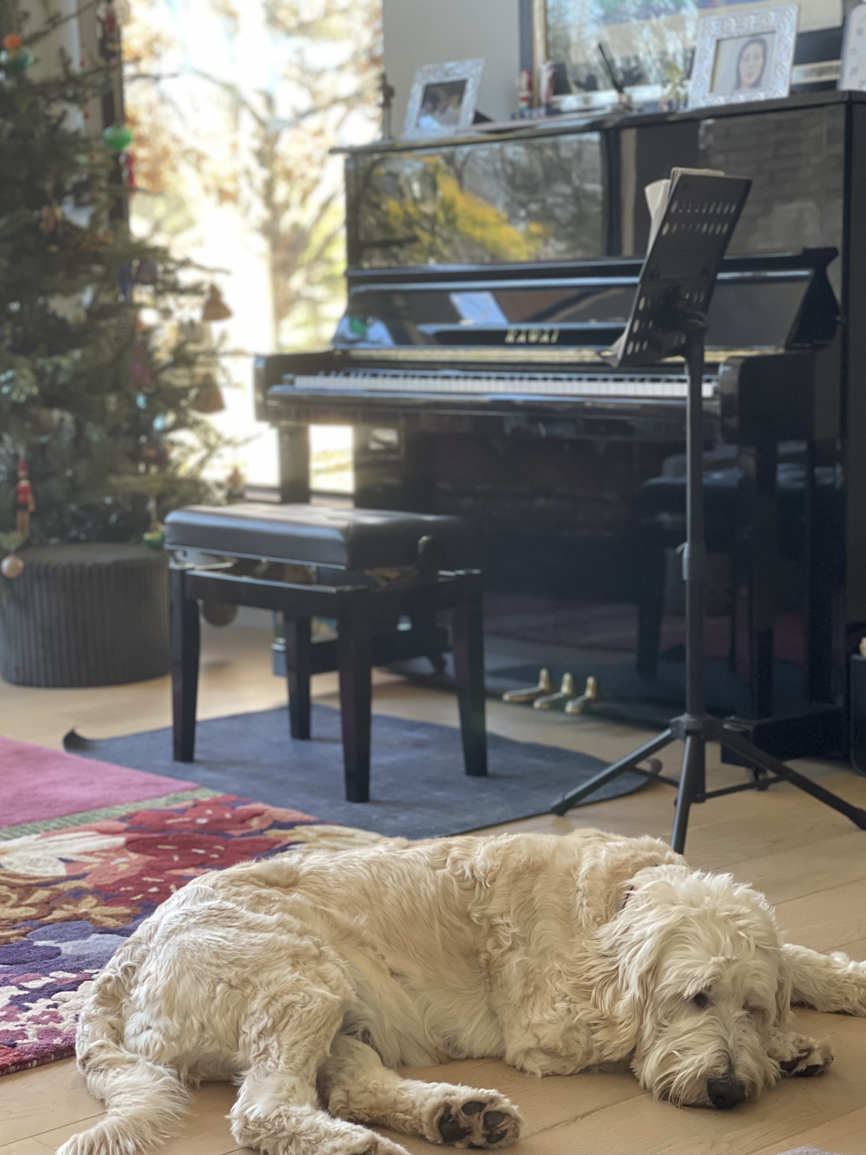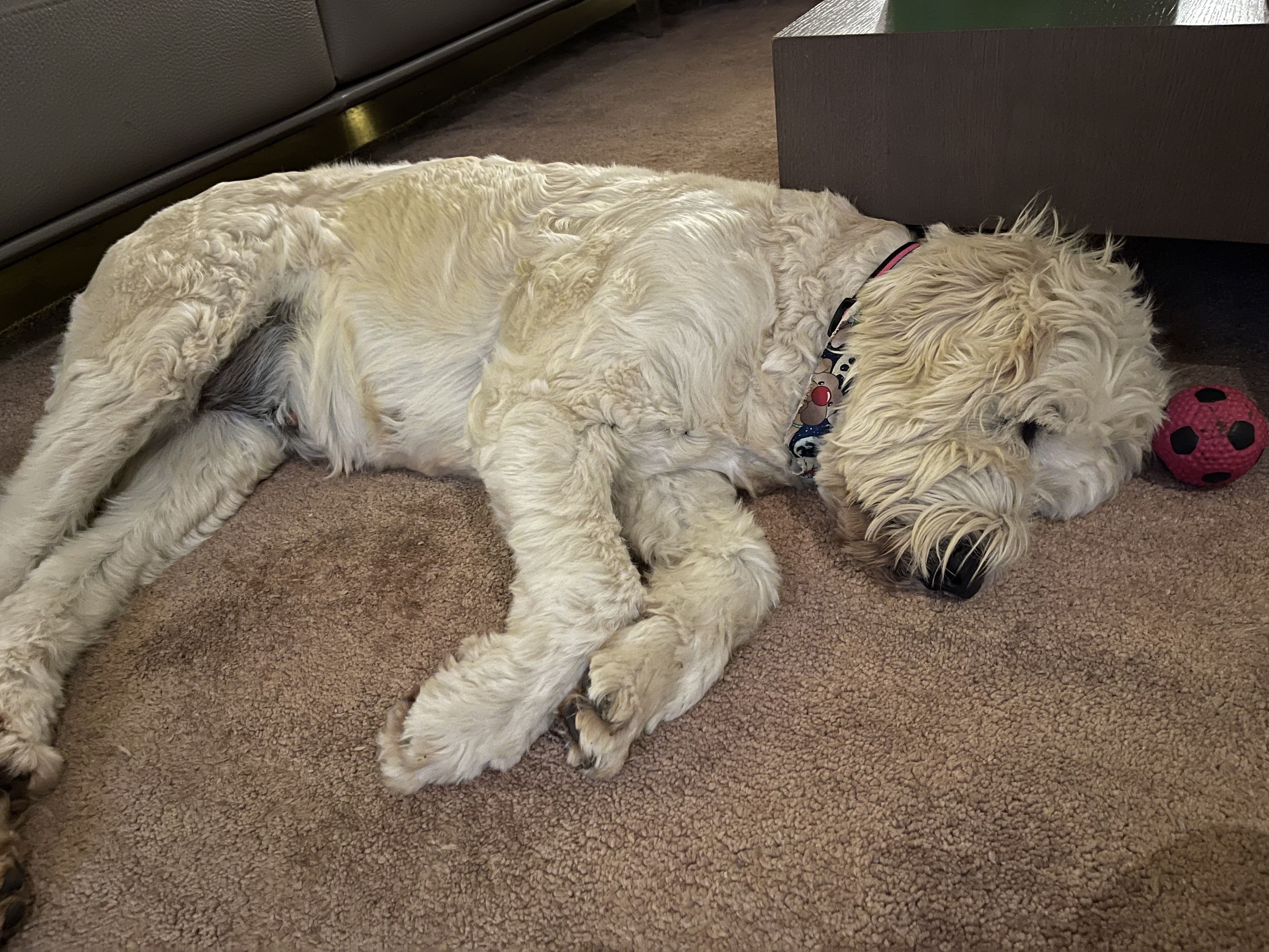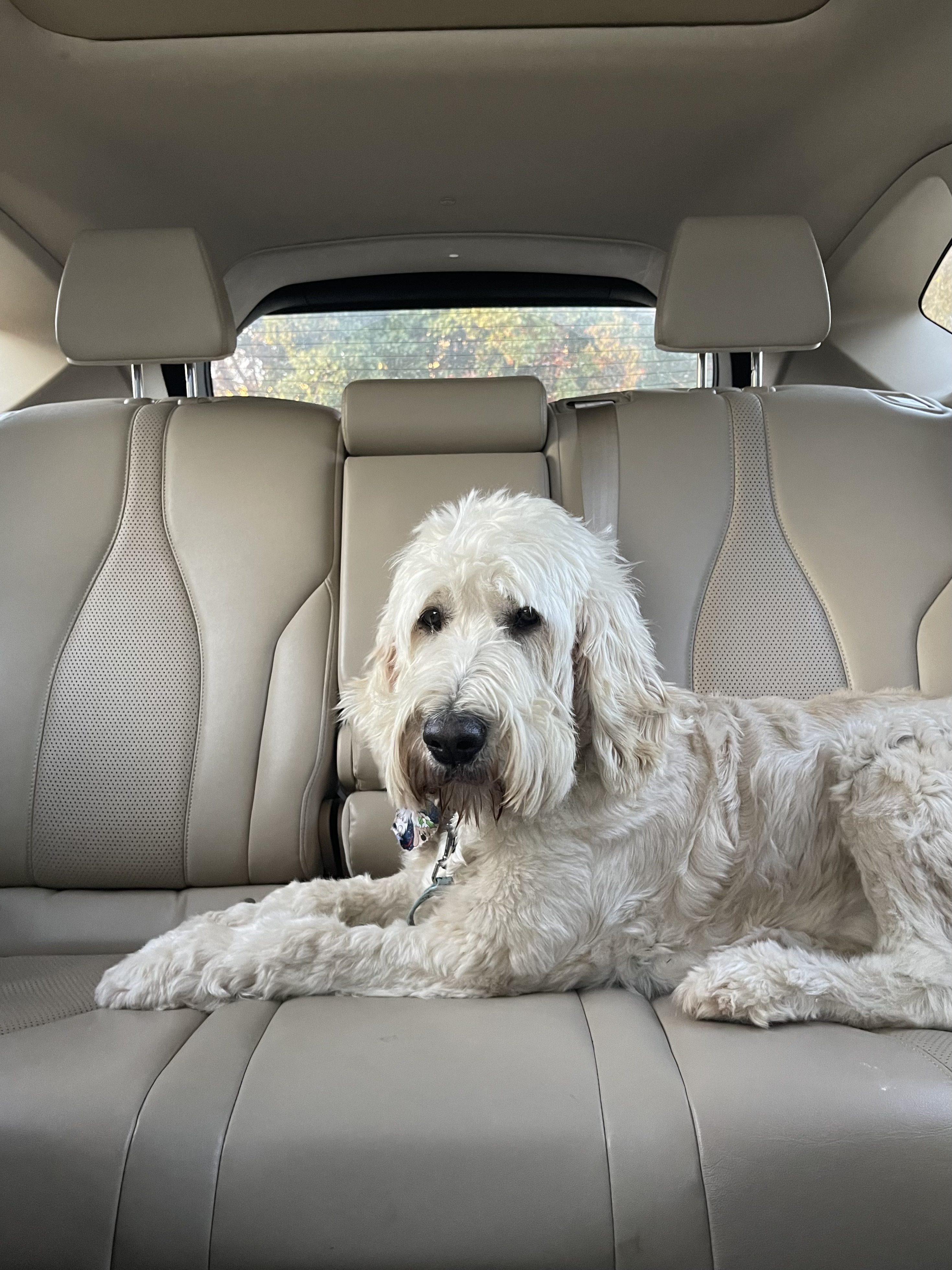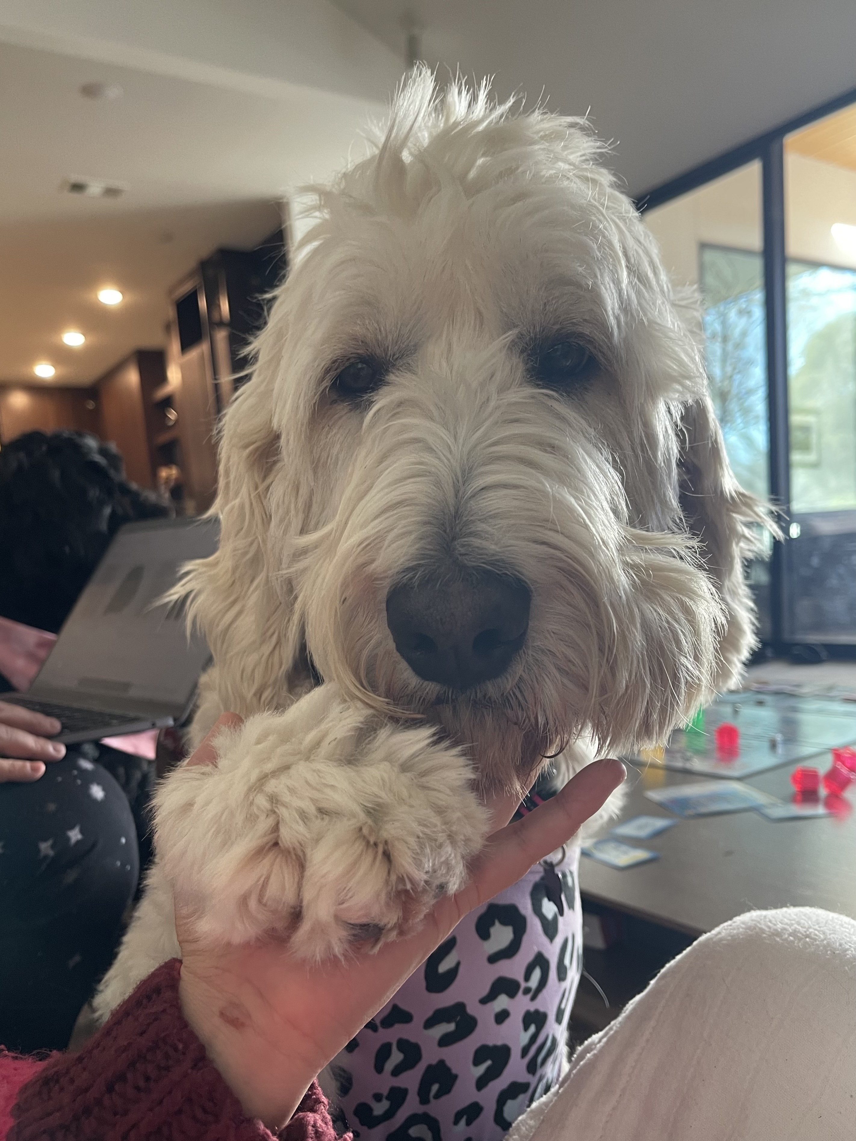 Greetings! I go by the names Phoebe and Callie. At 3 years old and weighing in at 80lbs, I'm an adorable female Goldendoodle with impeccable manners. Unlike my foster sisters, I prefer staying off couches and beds. My temperament is a delight—calm, loving, and not a fan of rough puppy play.