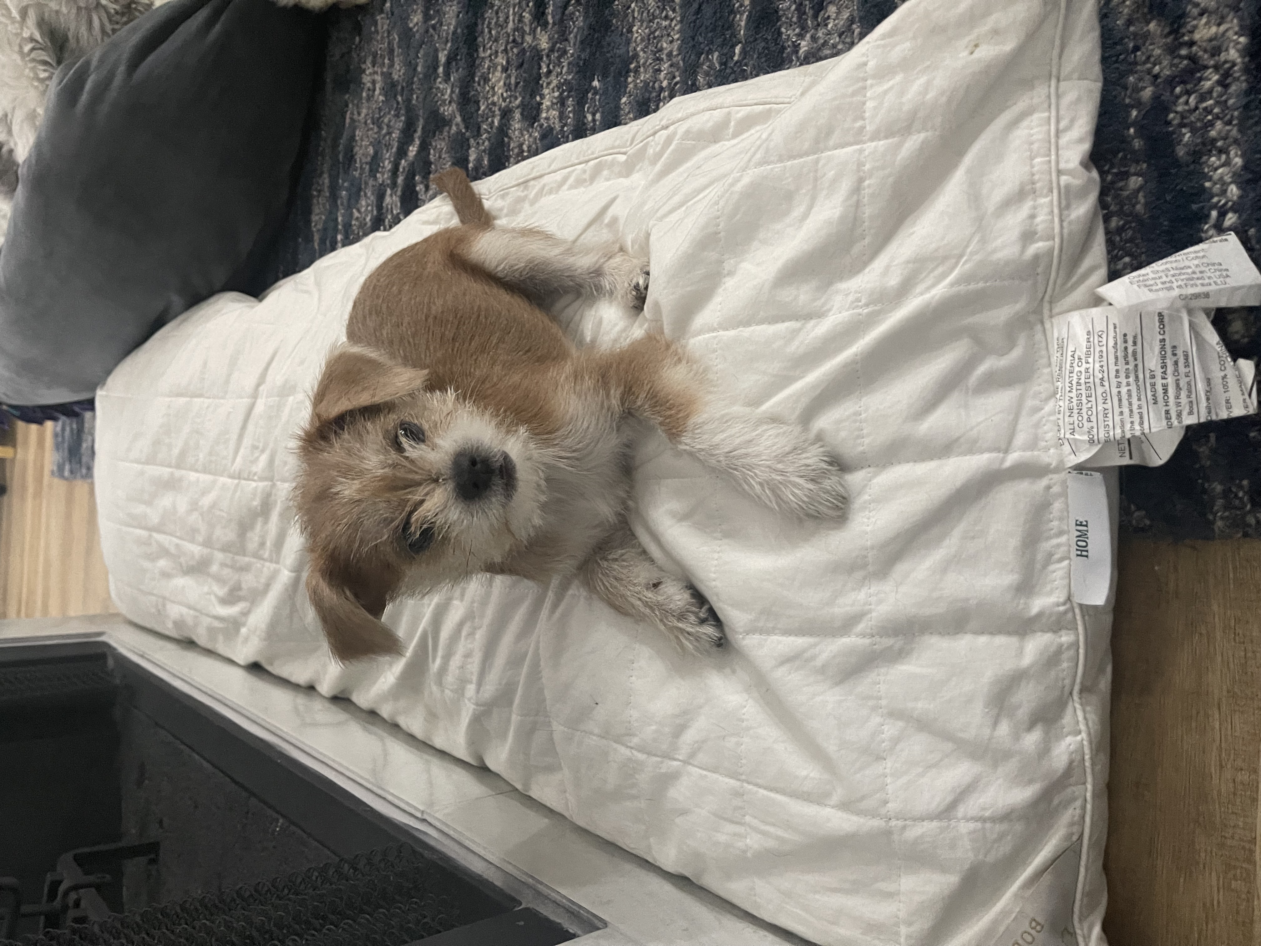 I am super easy going and will sleep all day if you want. I will wake up whenever my foster mom wakes me up. First thing first I have to go outside to do my business. I love to eat but on my own time because I get distracted by everything. I usually spend my days chasing the big dogs in the backyard, or snuggling in my foster moms lap. I love a good chew bone and I am learning how to fetch a ball.