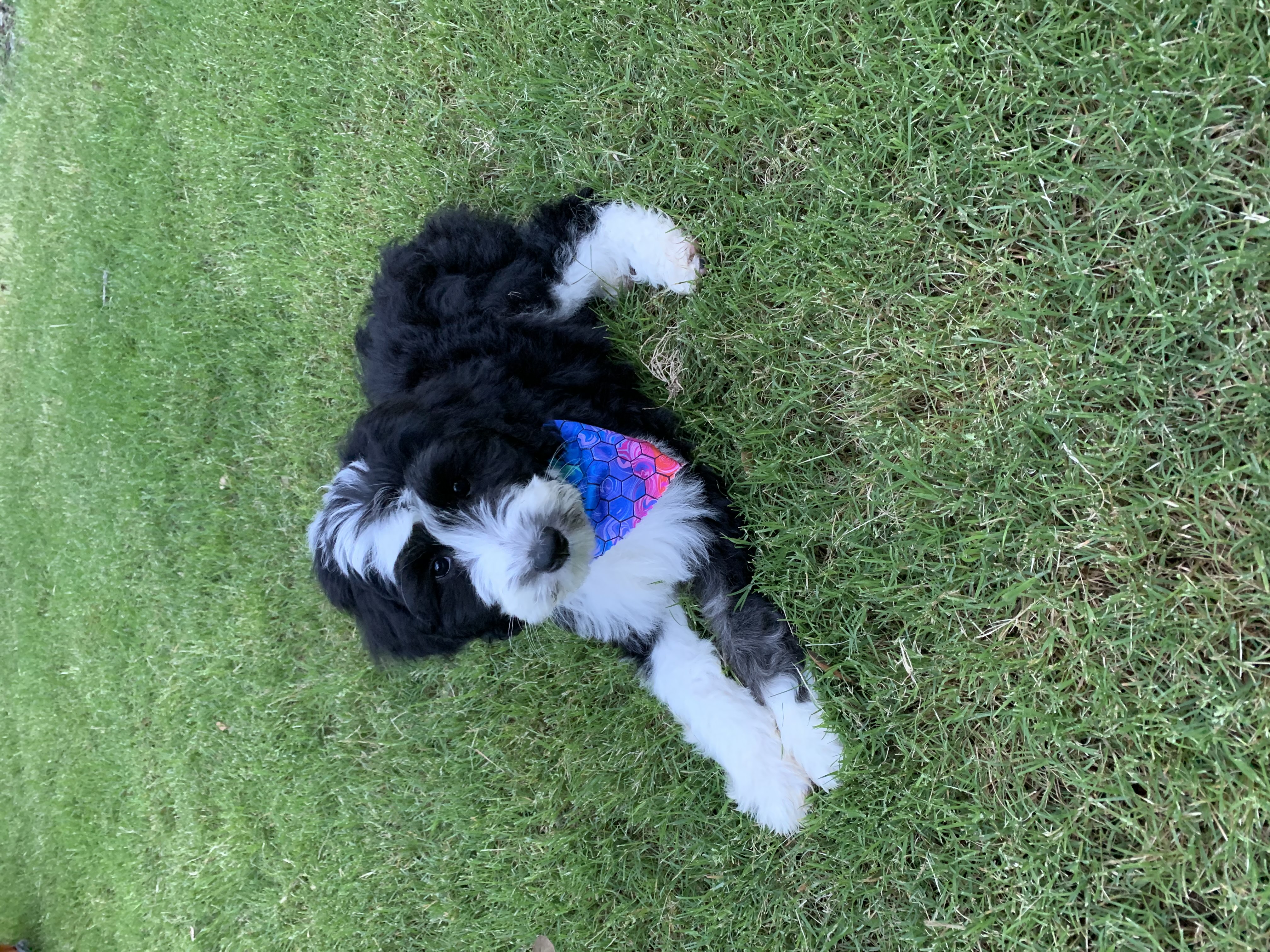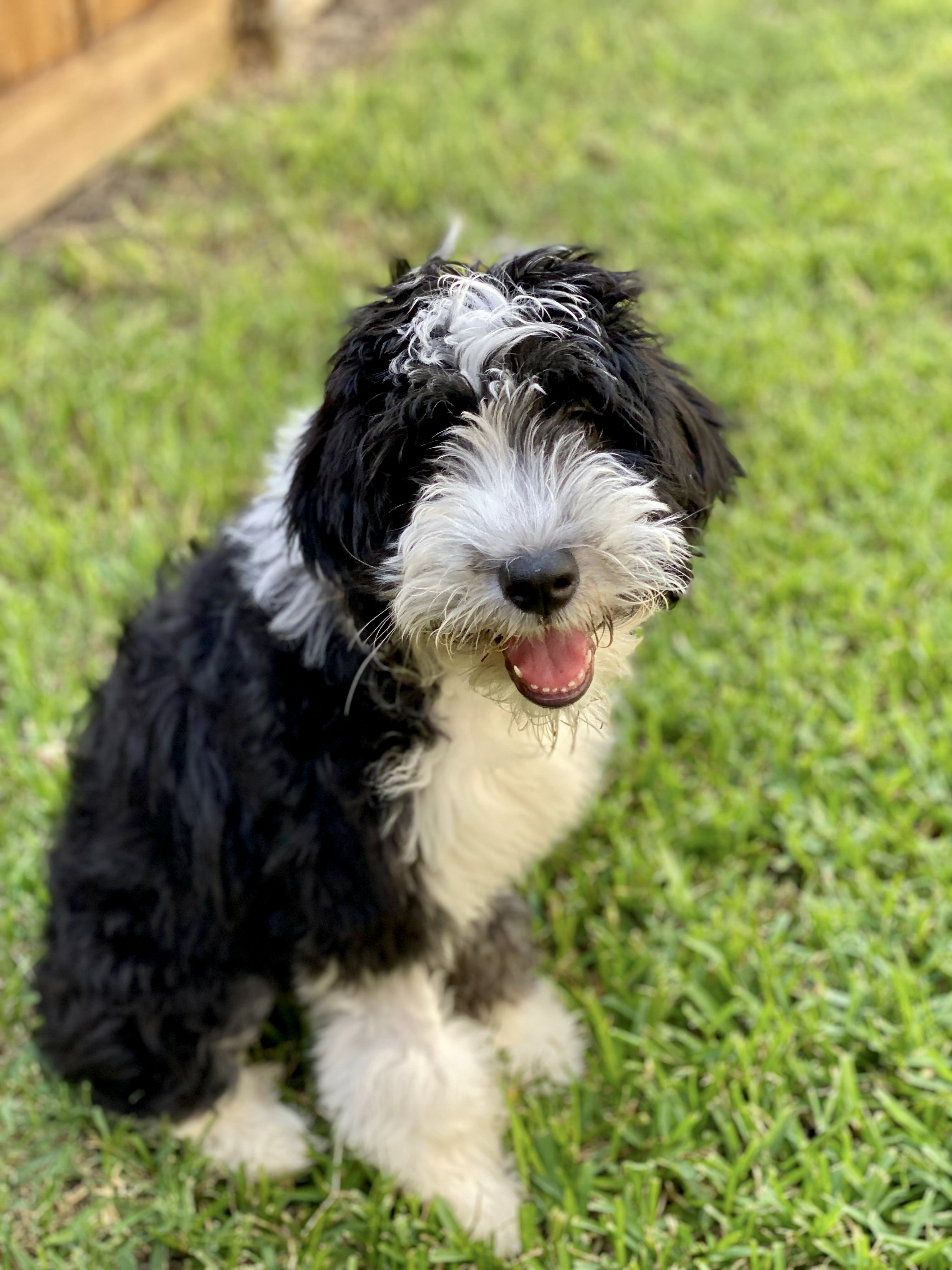 I’m Piper! A sweet 6 mo old female Sheepadoodle. I’m about 30lbs now, but I’ll be a pretty big dog like my parents when I’m full grown!