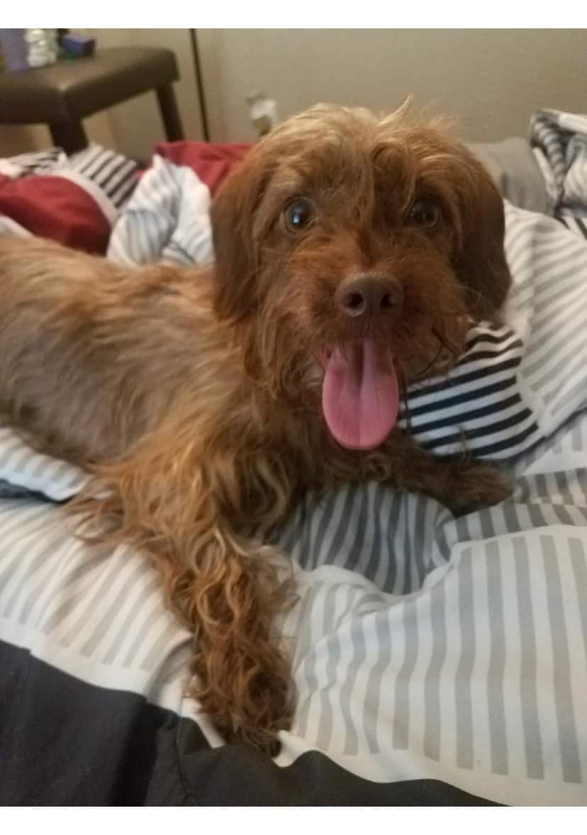 Hi, I’m Pockets! I am a 10lb, 2-year-old, female, Doxiepoo (Dachshund/Poodle mix)! I might be small, but I’m full of energy. I absolutely love playing fetch with my foster family. I also have the sweetest disposition and love to cuddle and give kisses. I can’t get enough of the cuddles and love to sit on my foster parents’ or siblings’ lap while they are on their computer. However, if they are busy, I am patient and willing to sit by their feet and nap.
