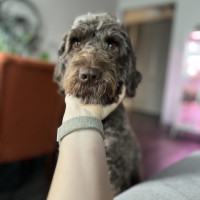 Hi there! I'm Poppy, a sweet and sometimes silly, 1.5 yr old, 30lb, Doodle gal who's still in touch with her puppy playfulness.