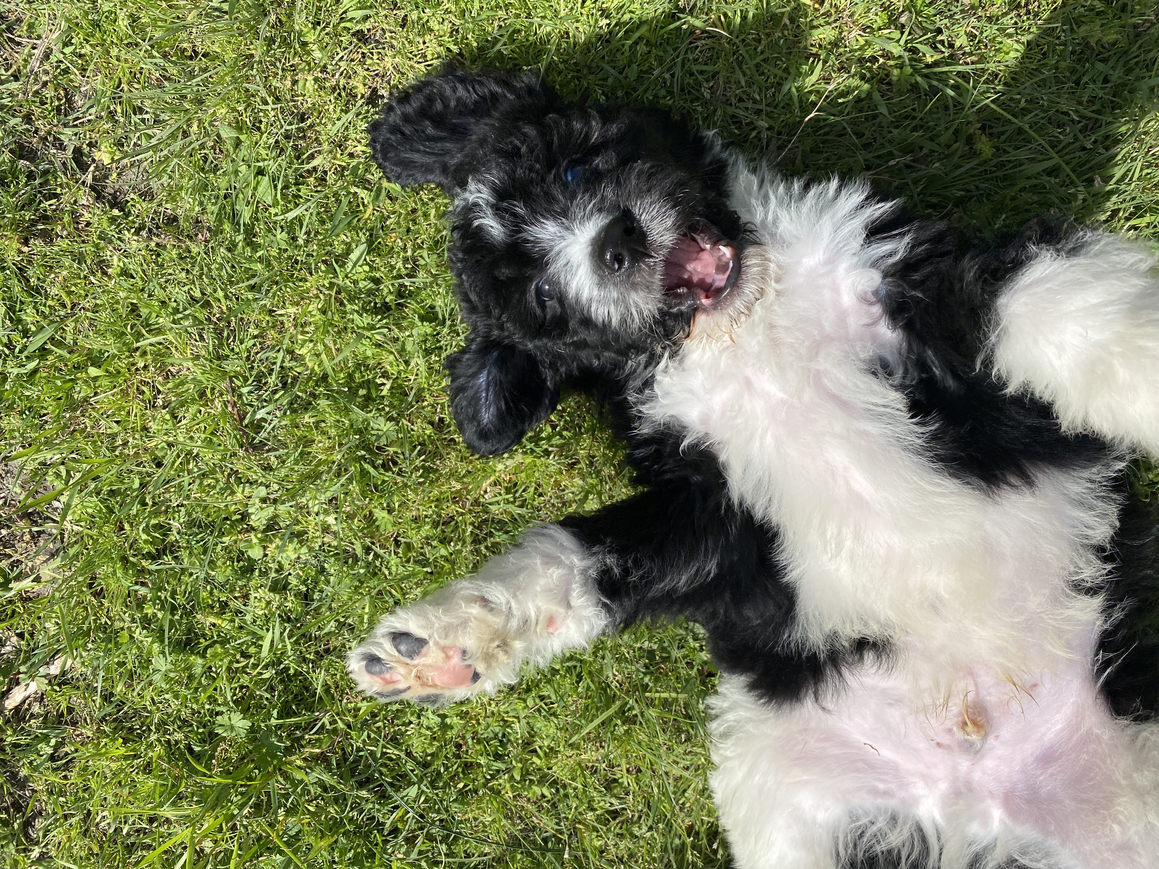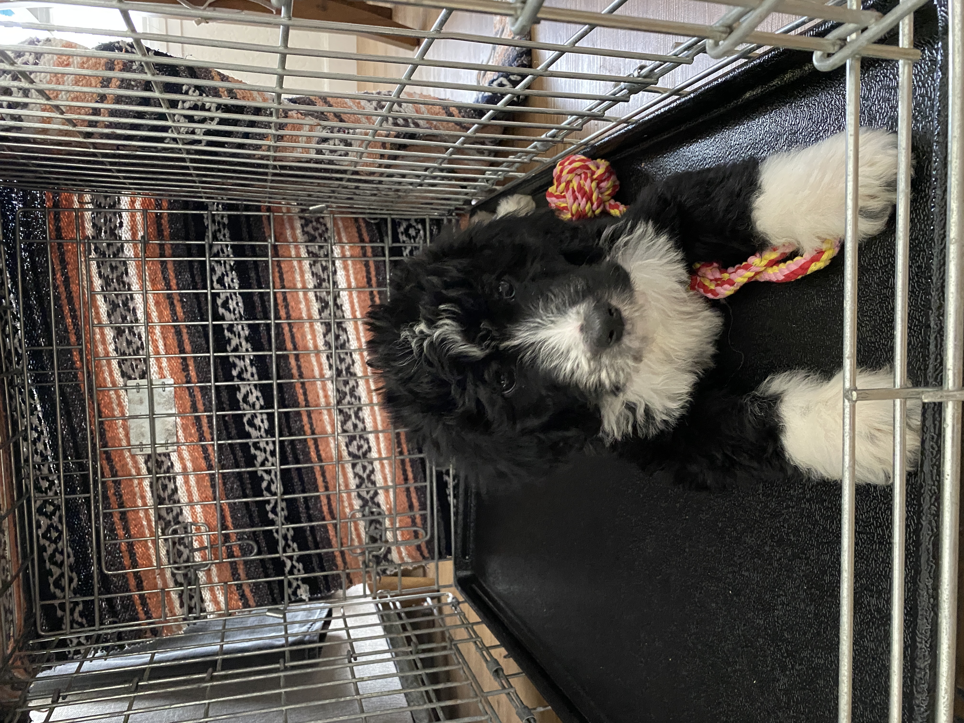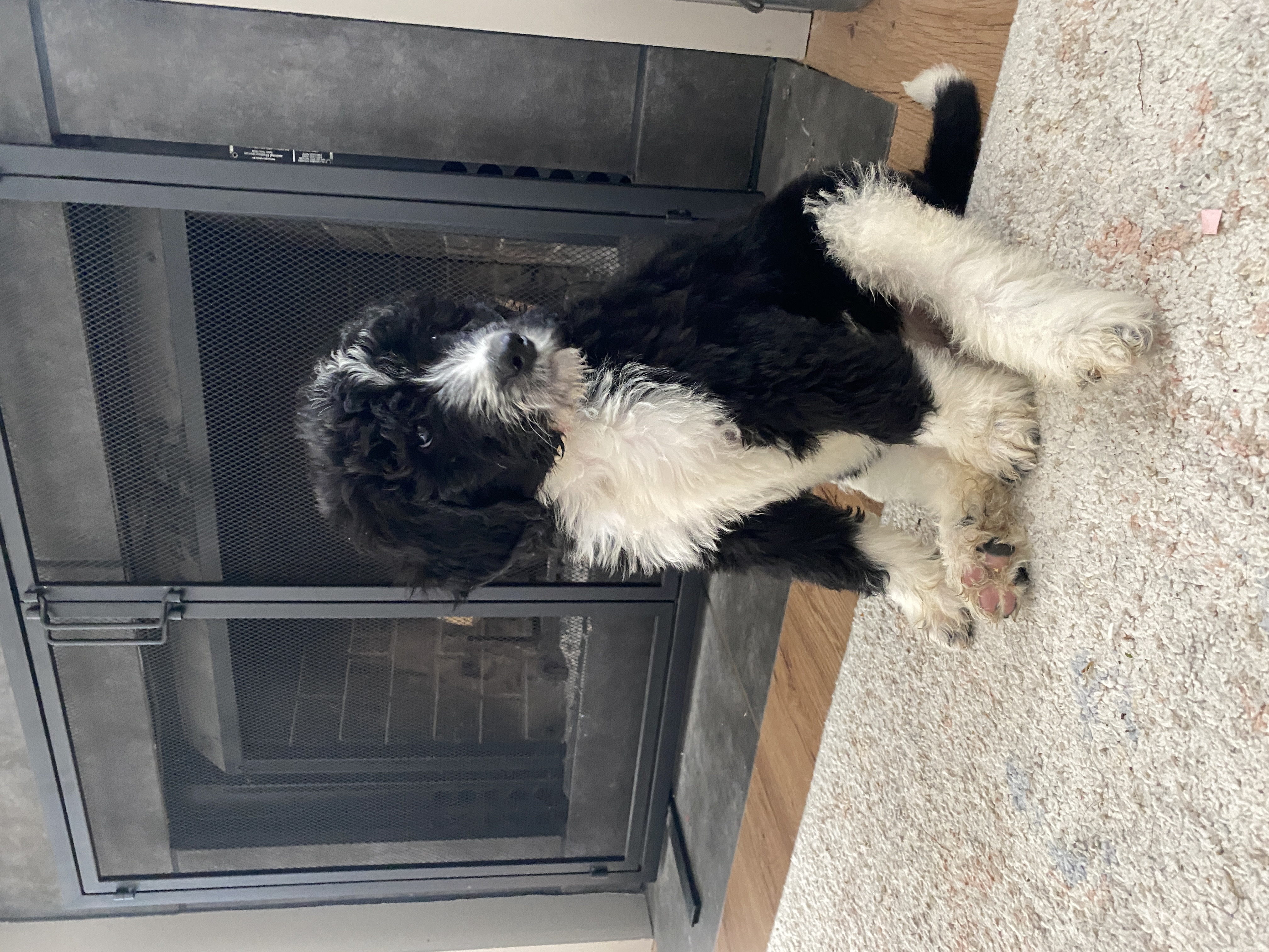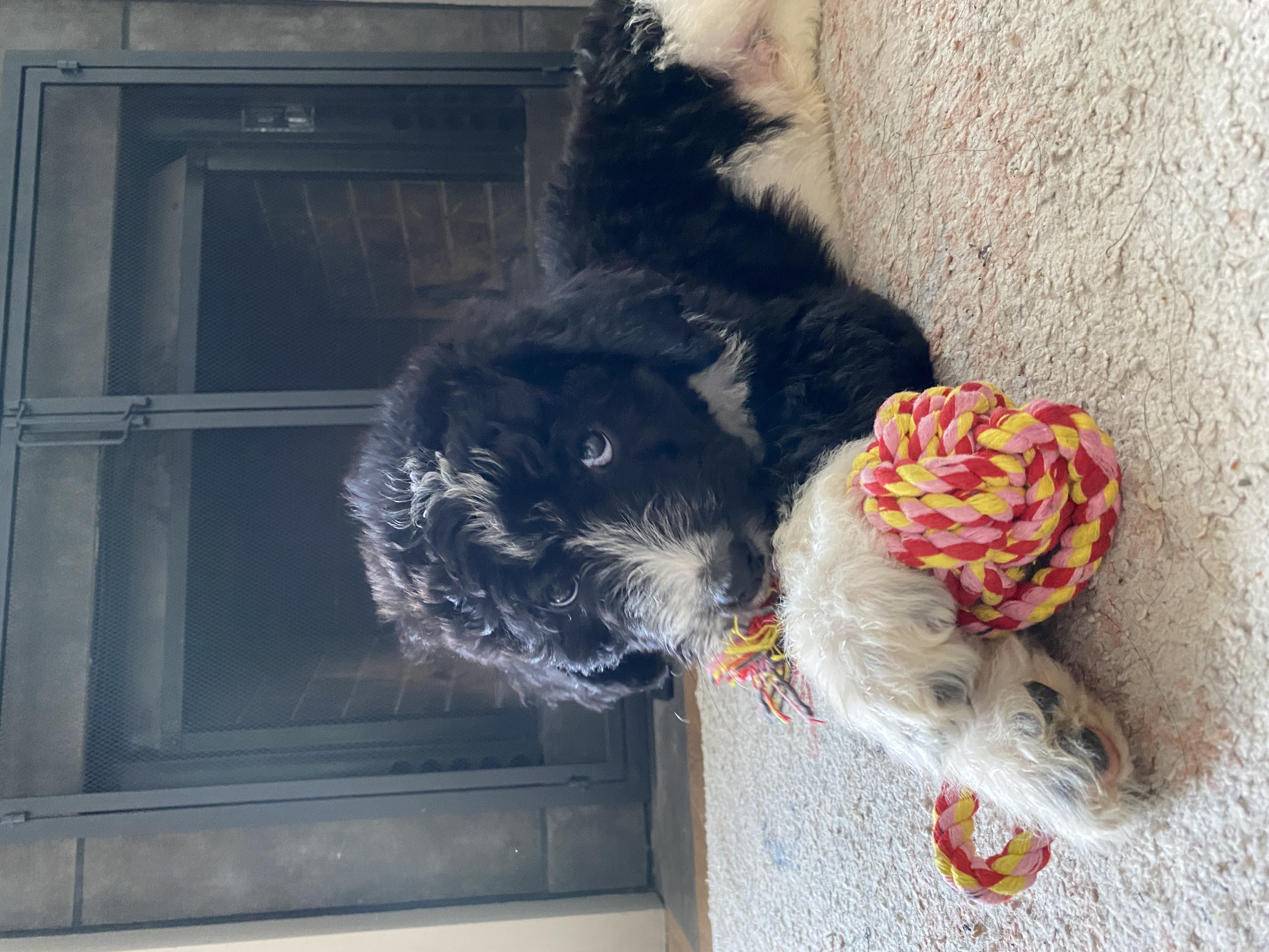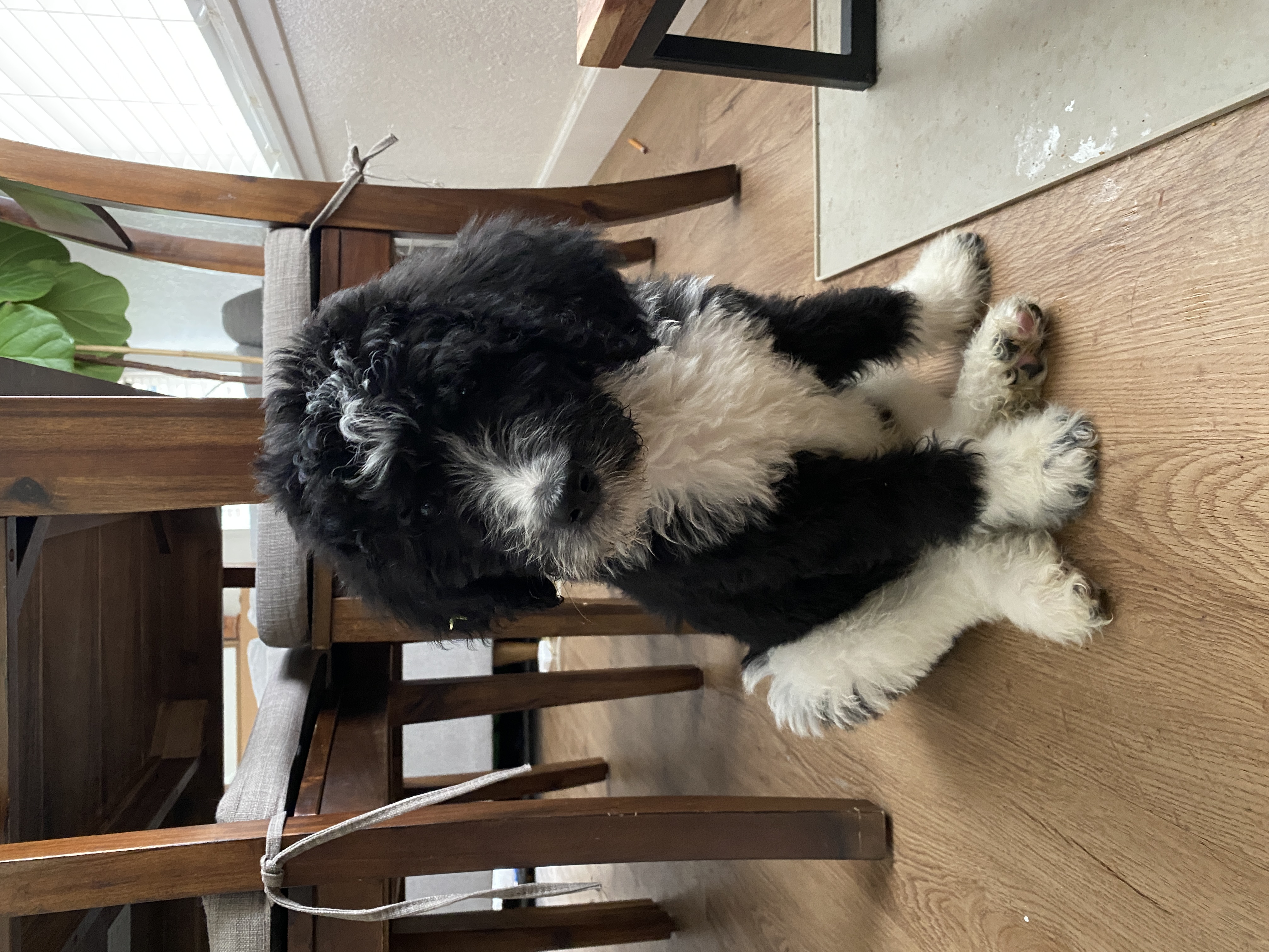 My name is Poseidon and I am a 11 week old Male Bernedoodle. I weigh about 13lbs and still growing.