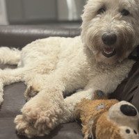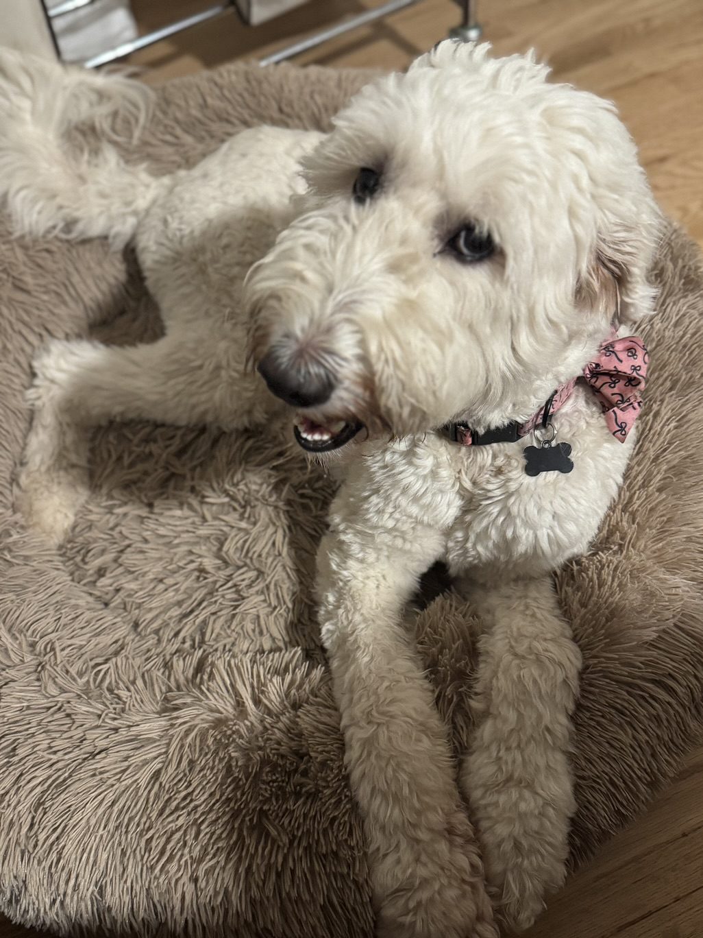 Hi, my name is Posie, and I’m a 1-year-old, 50-pound doodle girl who is still learning what it means to feel safe and loved. I didn’t always know kindness, so it takes me a little time to trust new people. But once I decide you’re mine, I mean it with my whole heart. I’m gentle, sweet, and quietly hopeful, and I’d love nothing more than to have a family who understands that love is something I’m still learning to accept.