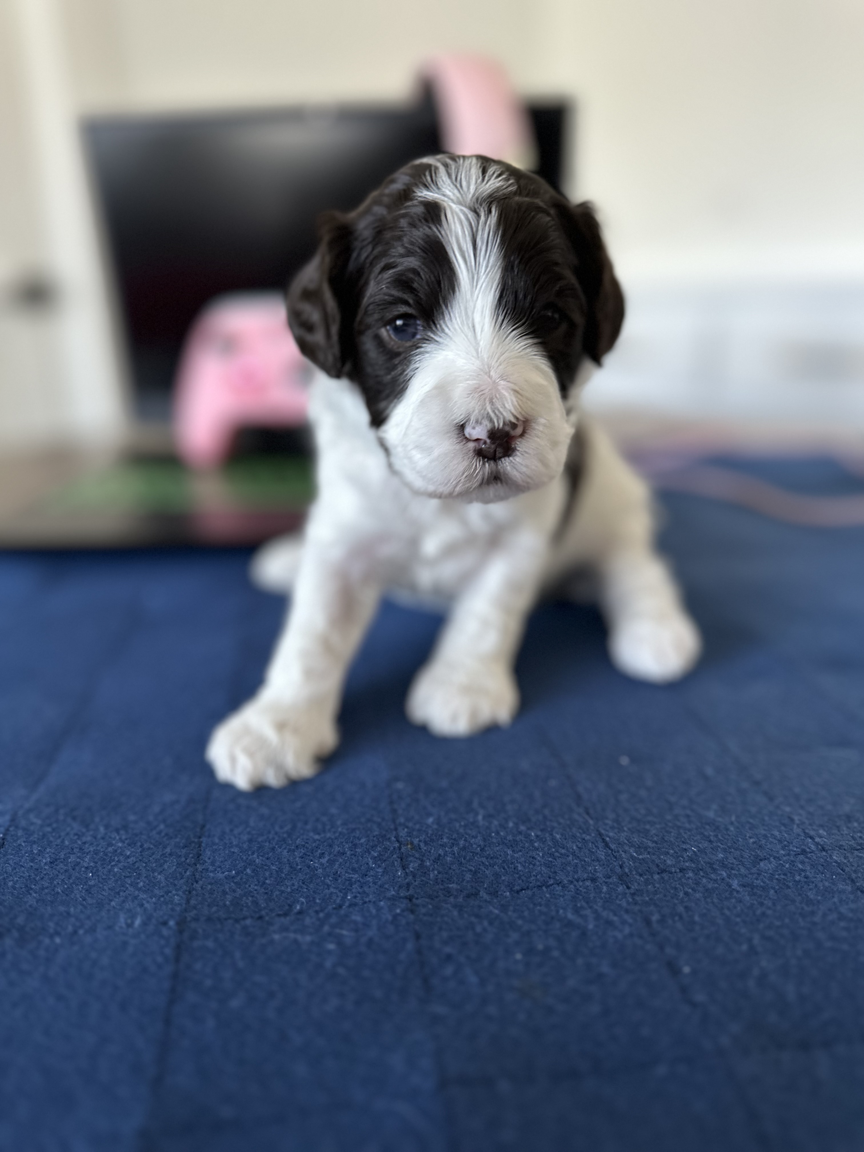 My foster mom says I have a firstborn personality. I'm outgoing and fun, and super active. I love to run and chase my foster mom in circles and down the hall. She says I'm the fast and most coordinated sibling, so we race a lot and I always win. I also have the most black spots of my siblings.