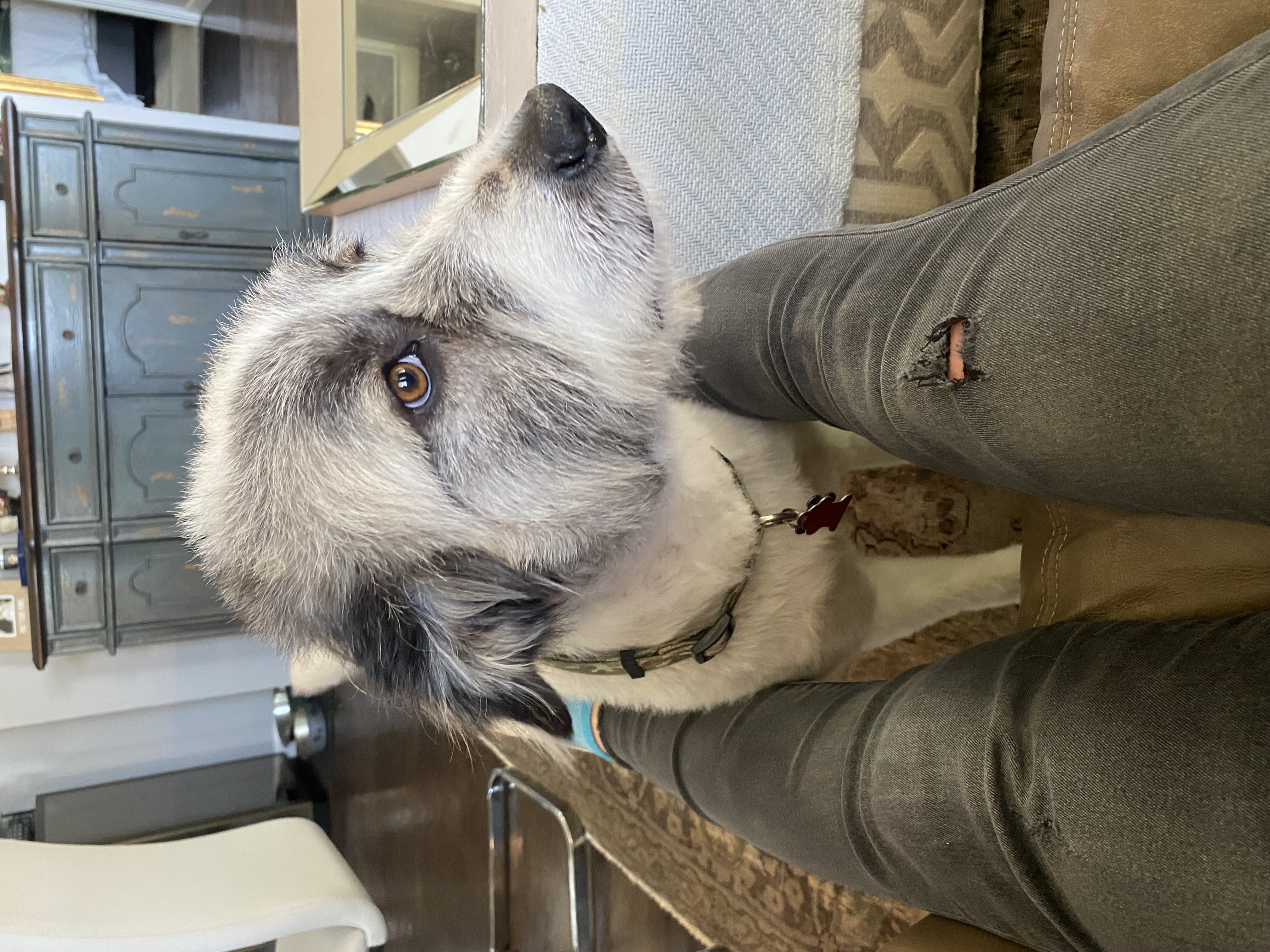 Since I haven't been around a lot of people, it took me a while to warm up to my foster mom, however as soon as I realized she had all the treats, I was all in! I do love my treats! I've even learned to sit & lay down so I can have one. We're still working on the word "stay" because I like to be close to the treats!
