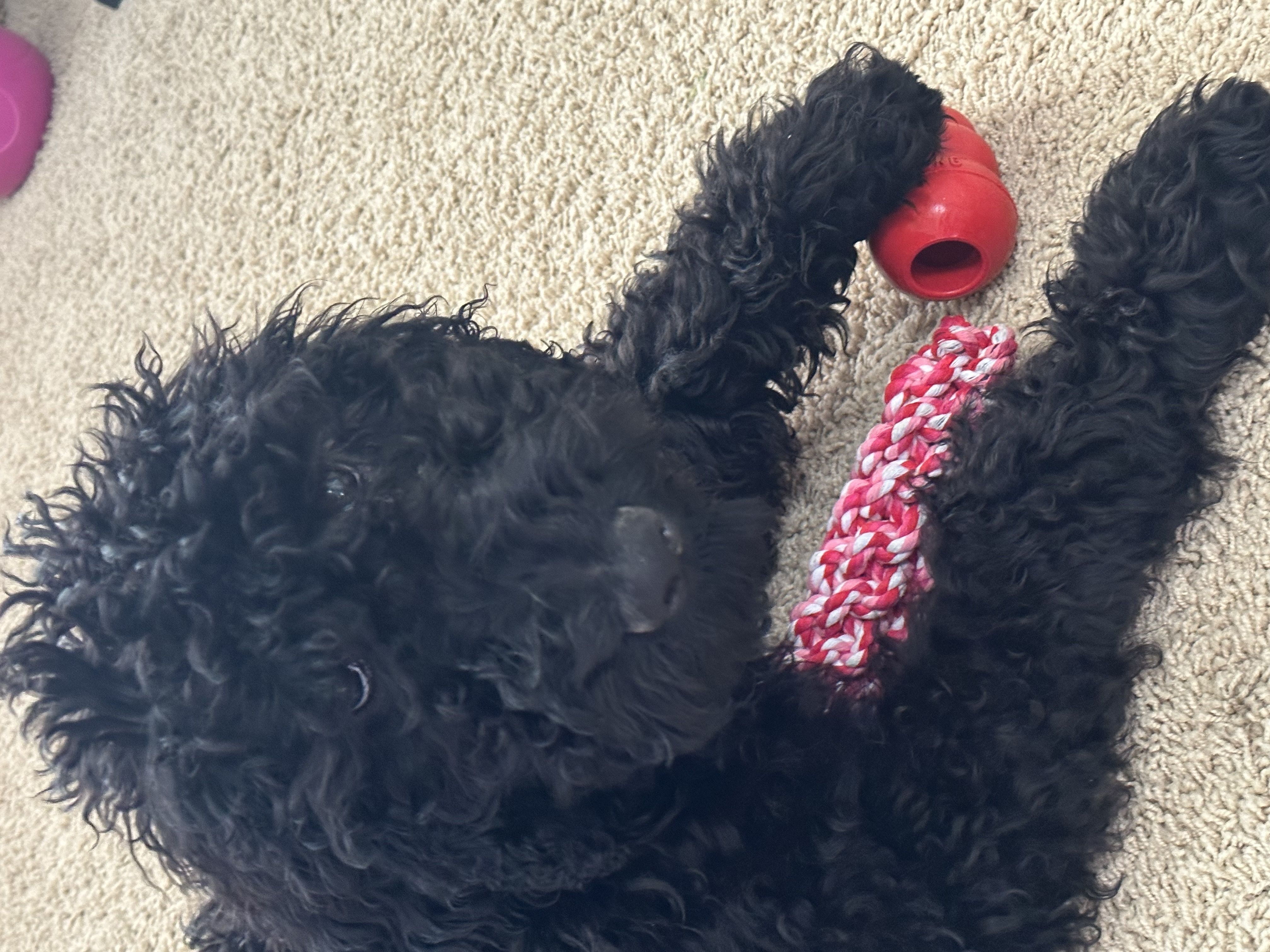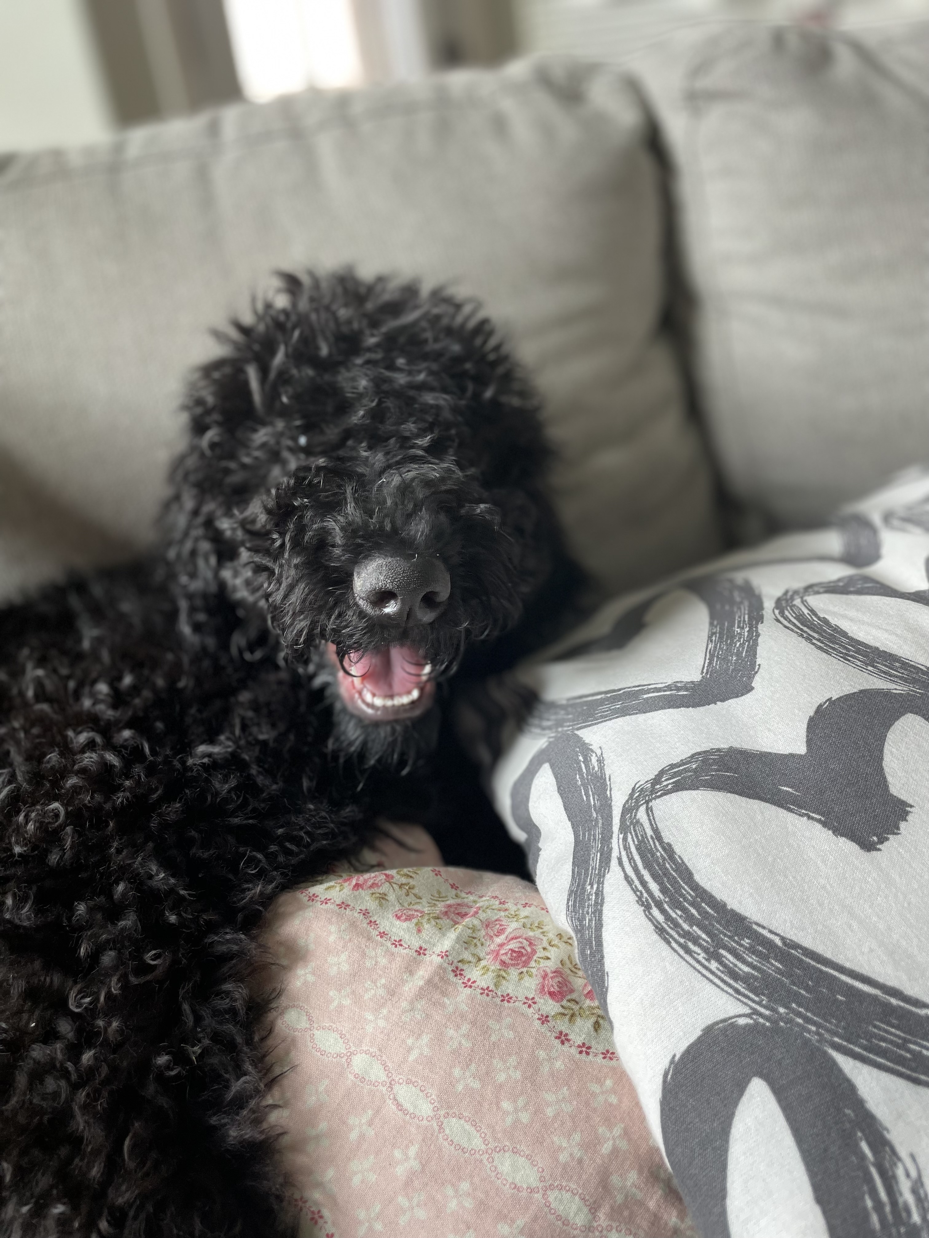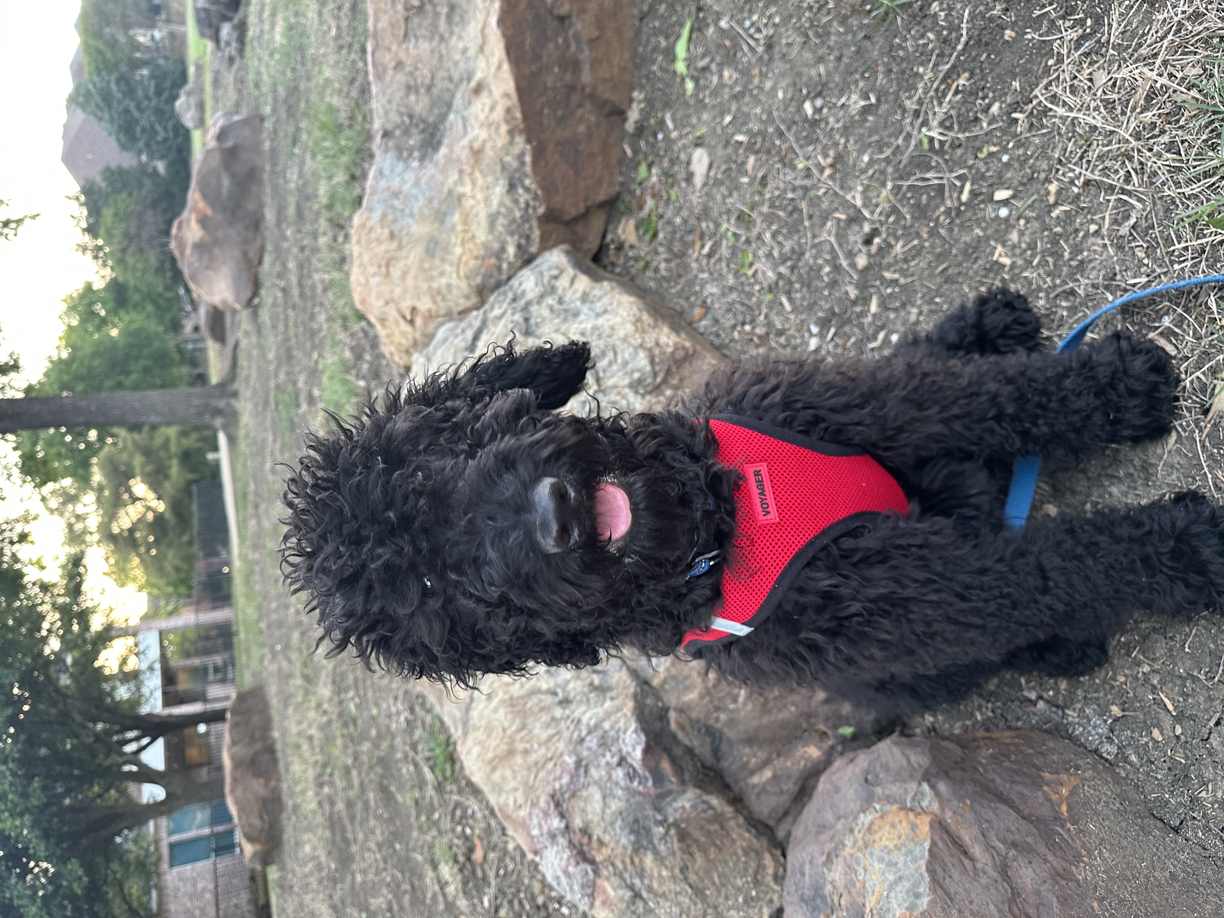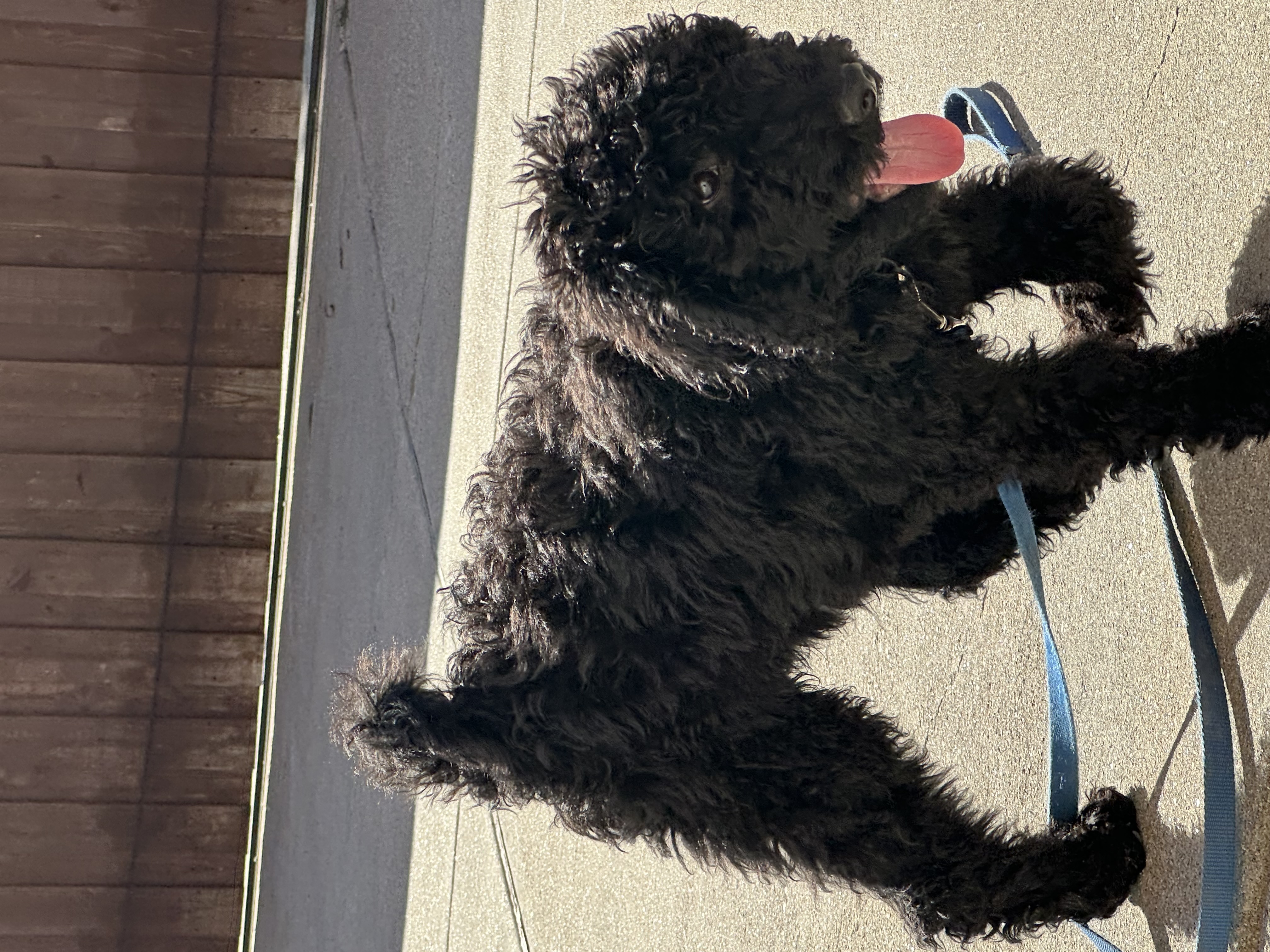 My name is Ralph and I am a 4 month male adoradoodle weighing 25 pounds and still growing! I have handsome black fur and do not shed.