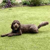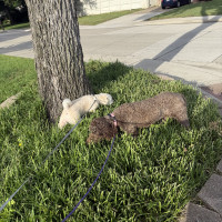 I have a fun, puppy-like energy with plenty of chill time mixed in. I start my day around 6:30 AM with a potty break and short walk, then relax while my foster parents are at work. I go out for regular potty breaks (about 5–6 times daily), enjoy a longer walk in the evening, and sleep peacefully on my bed at night. I eat twice a day with open access to water, and I really just enjoy being wherever my people are.