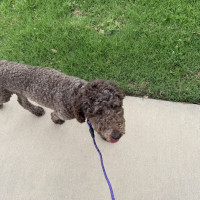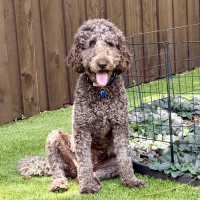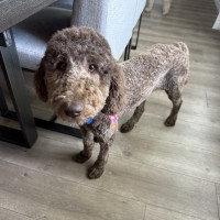 Hi! I’m Ramen, a sweet, 3-ish-year-old female Goldendoodle weighing around 45 lbs. I’m playful, curious, and still discovering how fun life as a dog can be. I love toys, walks, and playing with other dogs—and I really thrive when I have a confident, friendly dog sibling to follow. I’m happiest when I’m close to my humans and would do best in a home where someone is around most of the time. I adore kids, but since I’m a bit on the bigger side, I’d be best suited for a family with children over 6.