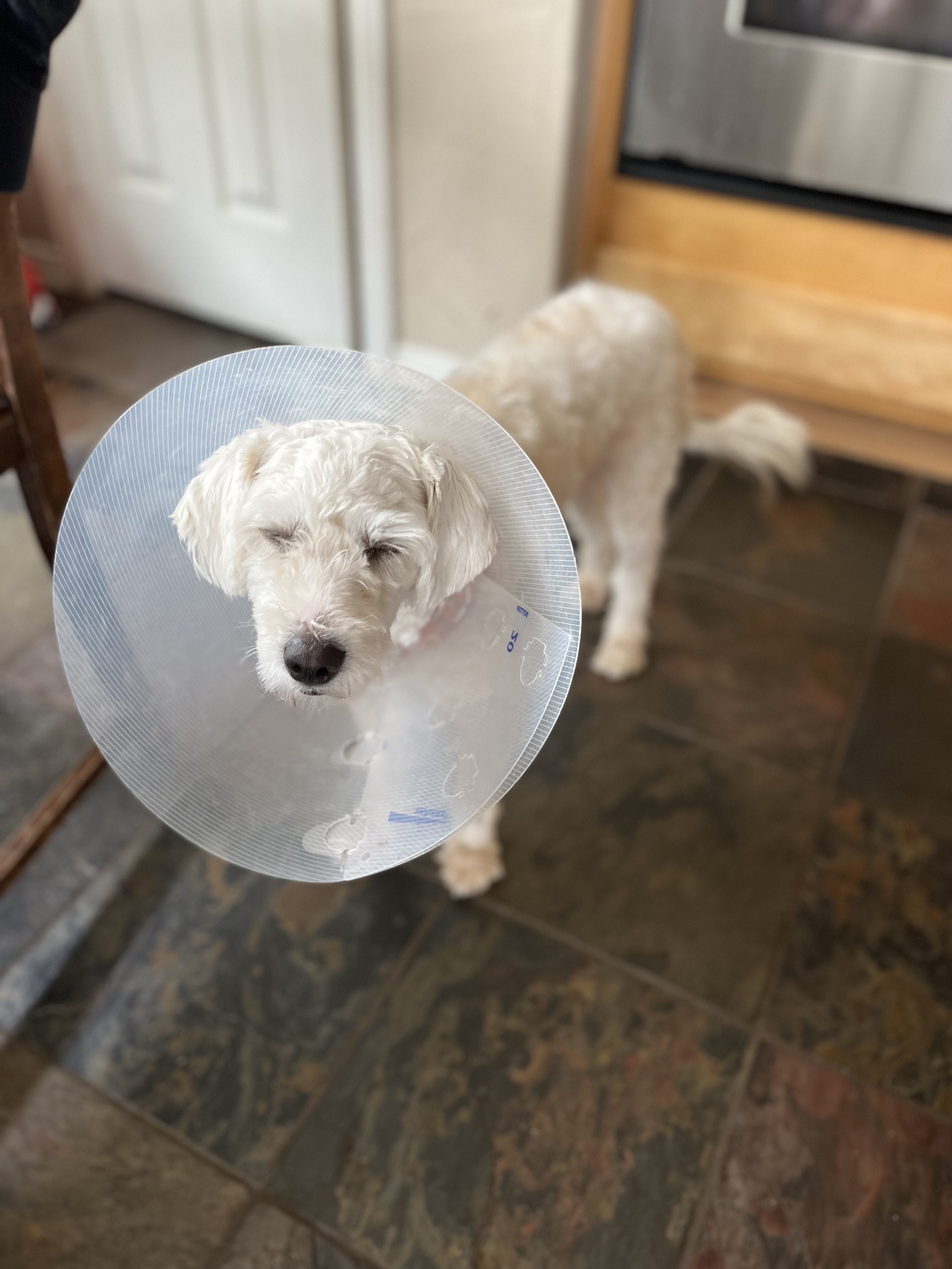 I sleep in my crate and wake up around 6:30am and wake my mom to go out and potty. I go for 4 walks a day, but I go for car rides all the time to drop off children to activities (I love the car). Whenever I am home by myself, I have to go into the crate, but usually there is at least one parent at home all the time. I go to bed around 10-11pm.