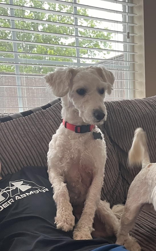 My name is Randolph, I’m a Male Poodle mix weighing 24lbs. I am only 18 months old and was a little nervous when I first arrived, but now I love snuggling with my foster’s children. I was a bit worried when I met their dad, but I warmed up over a few days and now I like hanging out with him. I follow my foster mum round the house and nudge her with my nose to remind her I’m there.