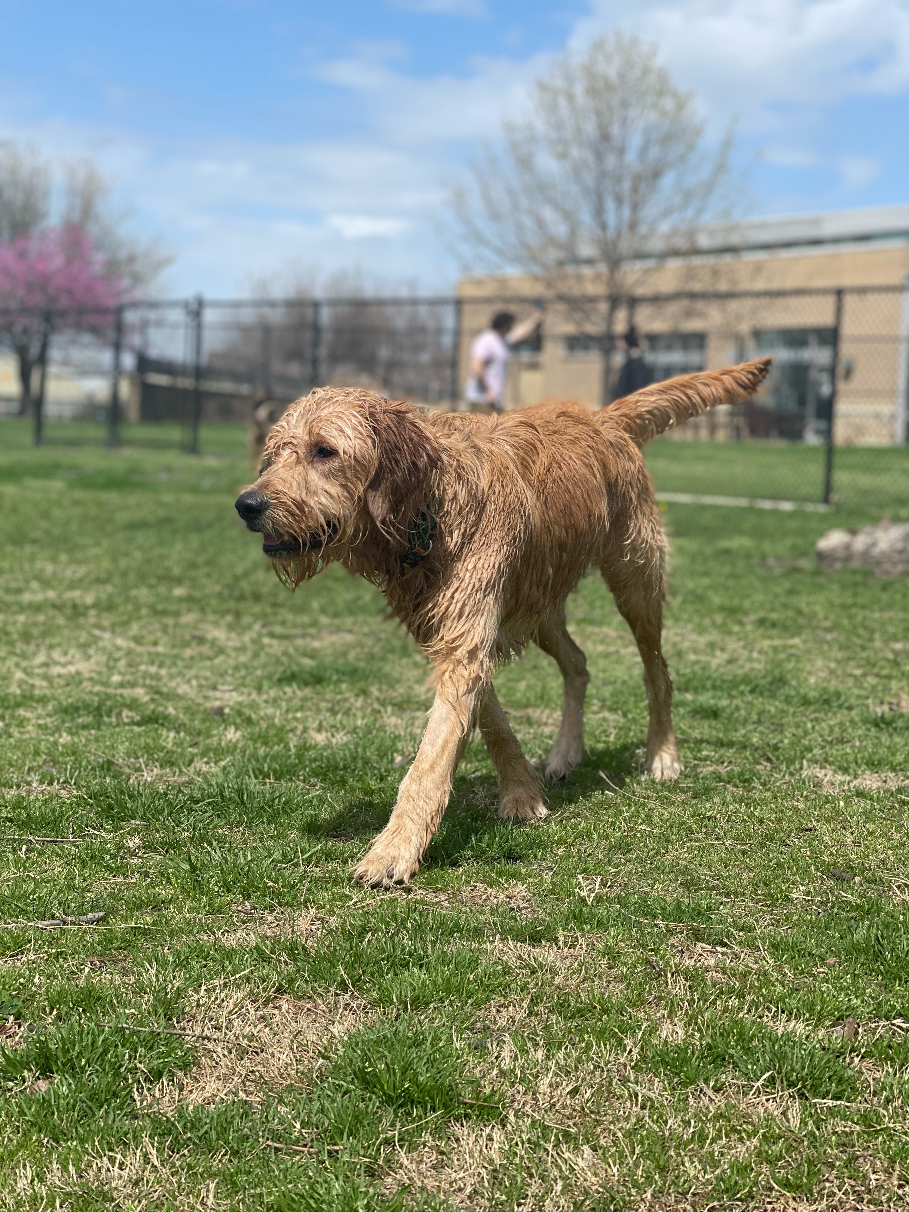 Hi, call me Riggs! I'm a 7-month-old male Goldendoodle and weigh 68lbs. I'm a growing boy who is quite the goof ball. I am a moderate shedder so if you have allergies, I might not be your guy.