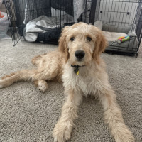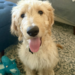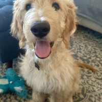 Hi there! My name is Rocky, and I'm a 4-month-old male Goldendoodle with a heart full of love and 15 lbs of pure fluff. I’m a playful, curious pup who’s always eager to explore the world and make my humans proud. Whether I’m chasing a tennis ball, romping around with doggy friends, or learning something new, I bring a whole lot of joy to every moment. I’m laid-back and easygoing, always ready to go with the flow and soak up the fun.