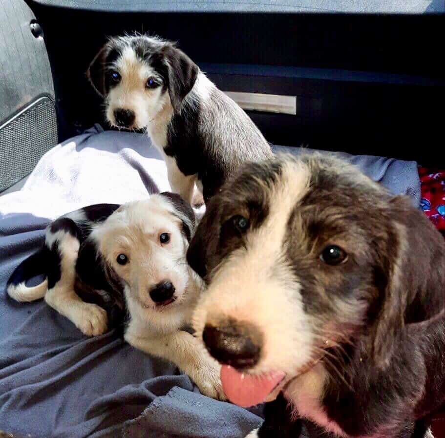 Hello! We are Rosco, Snoopy, and Randal. We are 3.5-month-old, 25-30lb Bordoodles (Border Collie + Doodle mix). We do shed moderately, but that can be managed with brushing. We are smart, active, and snuggly boys who are looking for our forever homes!