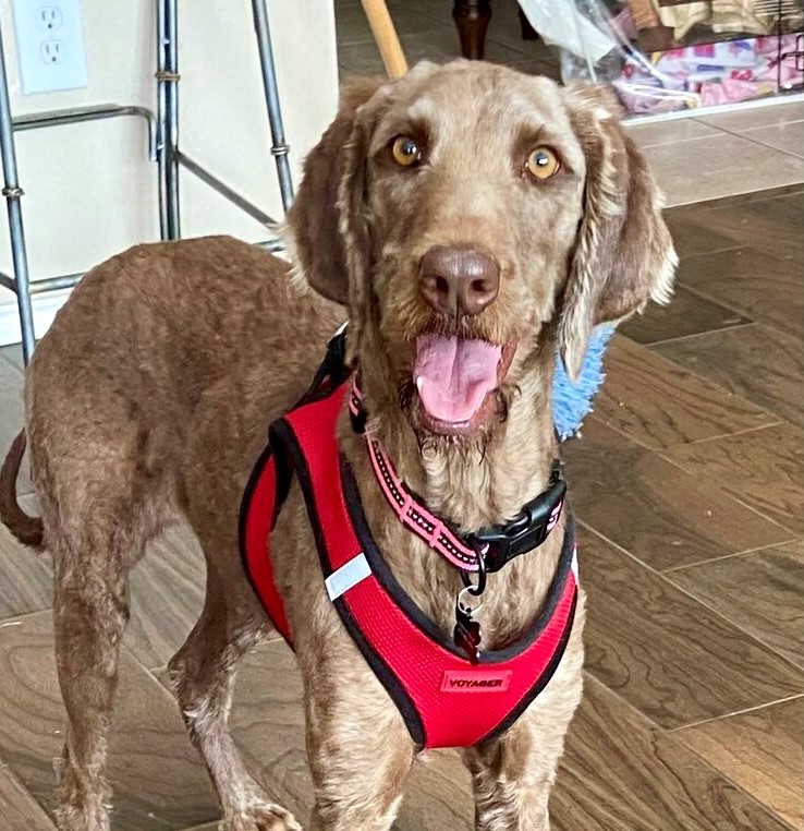 My basic commands are in progress, but I am potty and crate trained. Stern voices or yelling scare me, so a gentle “no” works best. I’m pretty good on a leash but will pull at first due to excitement. Loud noises and new things take time for me to adjust to so I’ll need slow introductions to new environments and people. I do best with older kiddos, the younger ones are a bit too loud for me and it makes me uncomfortable. My human foster siblings are dog whisperers and they’re my favorite kind of people!