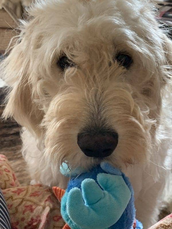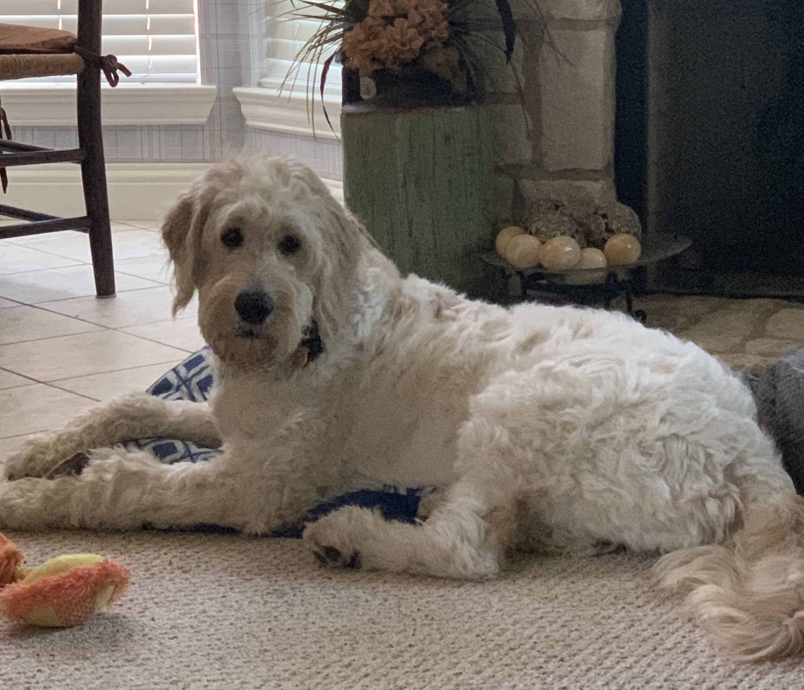 Hello! My name is Ruby, I’m 8-month-old, and 76-pound Goldendoodle puppy. I love to play however sometimes I forget how big I am and can get rough when I play with small dogs. I keep telling my foster that I’m still a puppy and to be patient with me. I am still learning the basic commands, but I’m getting there.