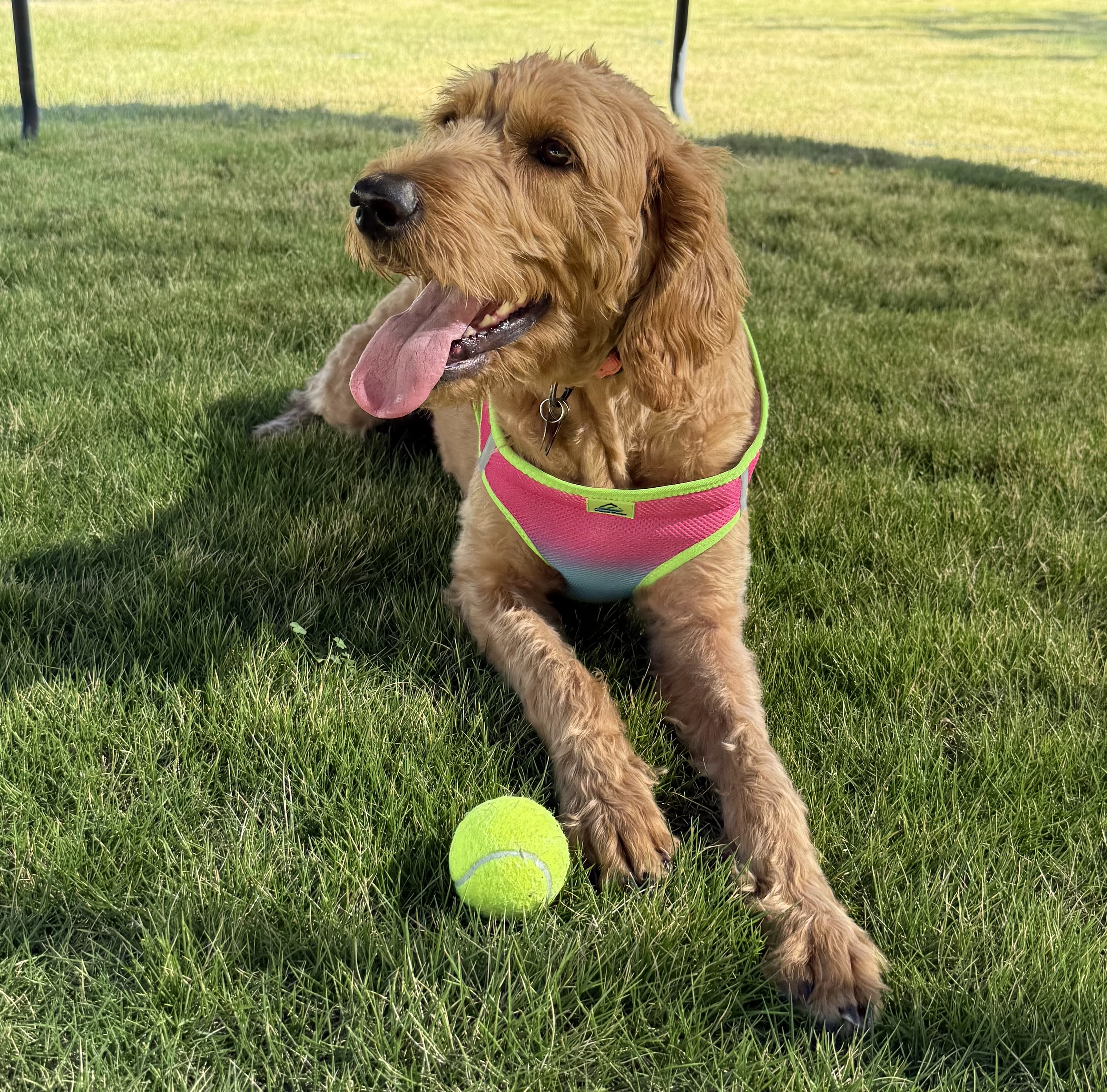 Tennis balls are my absolute favorite thing in the world. I love finding them, carrying them around proudly, and playing fetch any chance I get. I am wonderful with kids and other dogs, very patient, and naturally well mannered. I know all my basic commands and even a few extras, and I truly enjoy listening and doing the right thing. I will bark to let you know someone is at the door, but I stay right by your side until you let me know everything is okay.