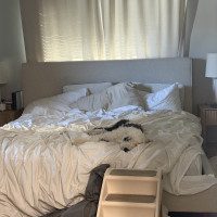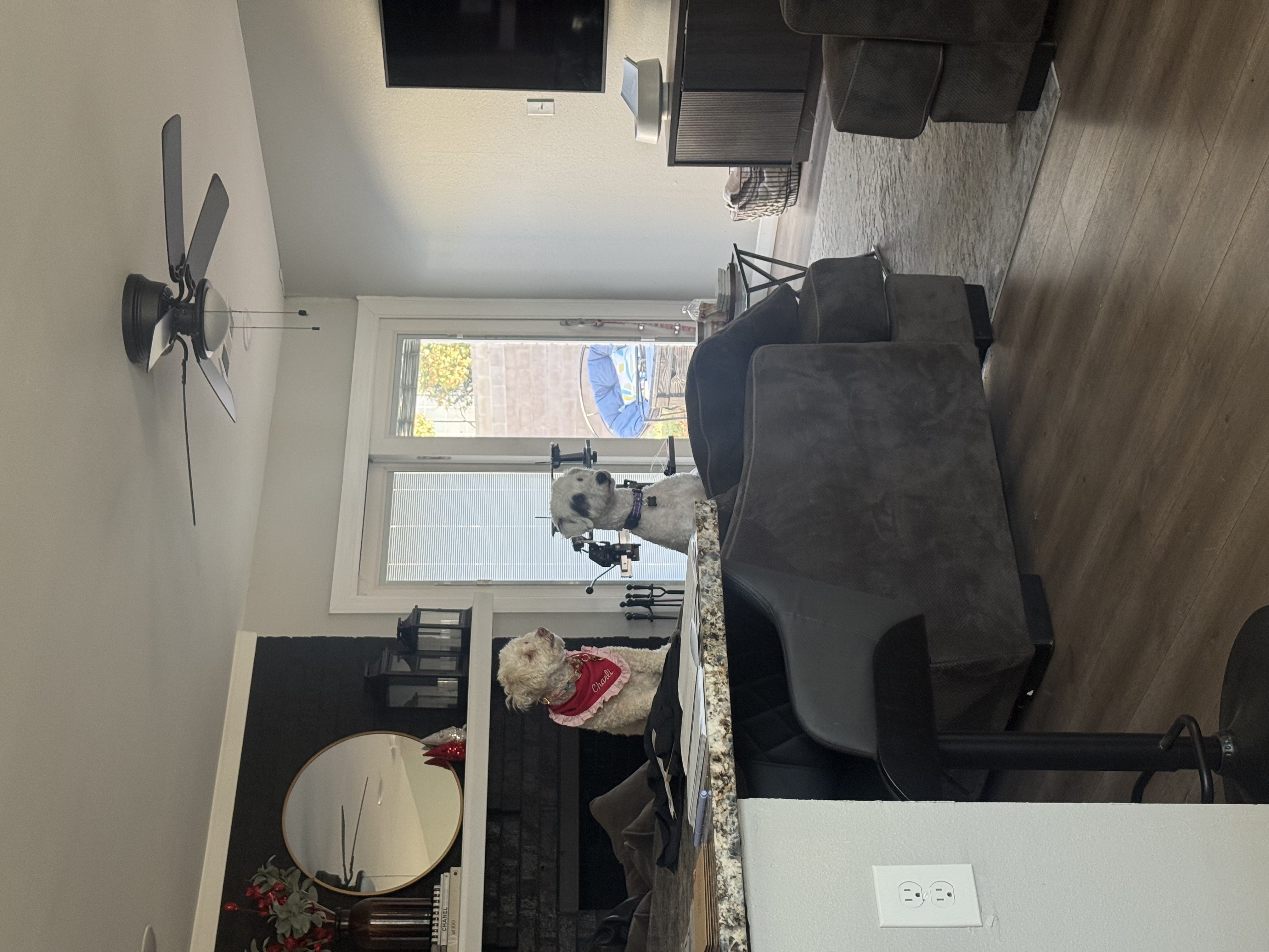 I do best with a calm and predictable routine. My day usually starts around 6:30 with a potty break, followed by a short walk before my foster family leaves for work. I am crated while they are away, which is not my favorite, and I do best with only very durable items since I can get anxious. When they get home, I enjoy spending time outside to release some energy, followed by a quiet evening relaxing nearby. We usually end the day with a longer walk before I settle in to sleep on my bed in my foster parents’ room.