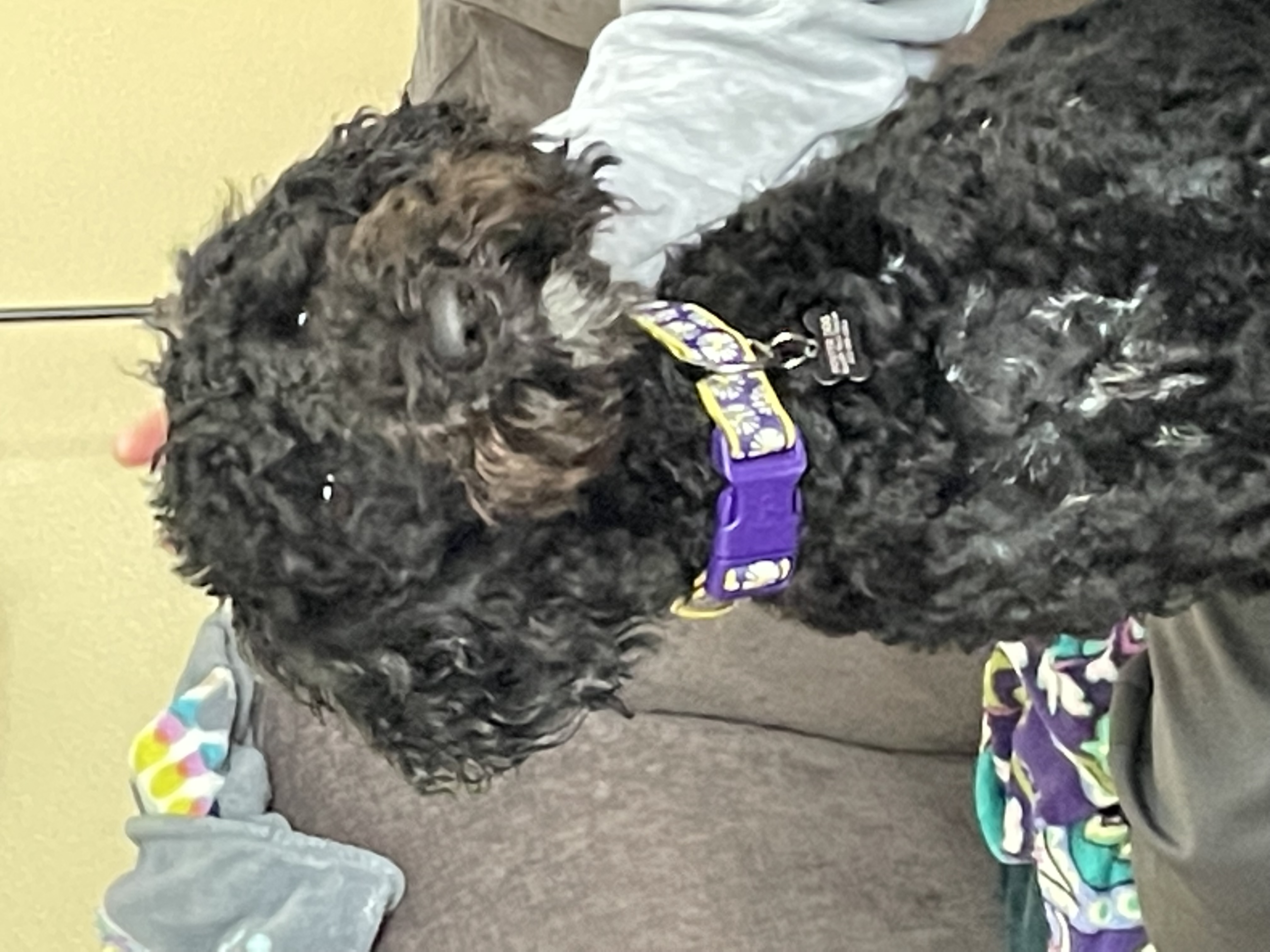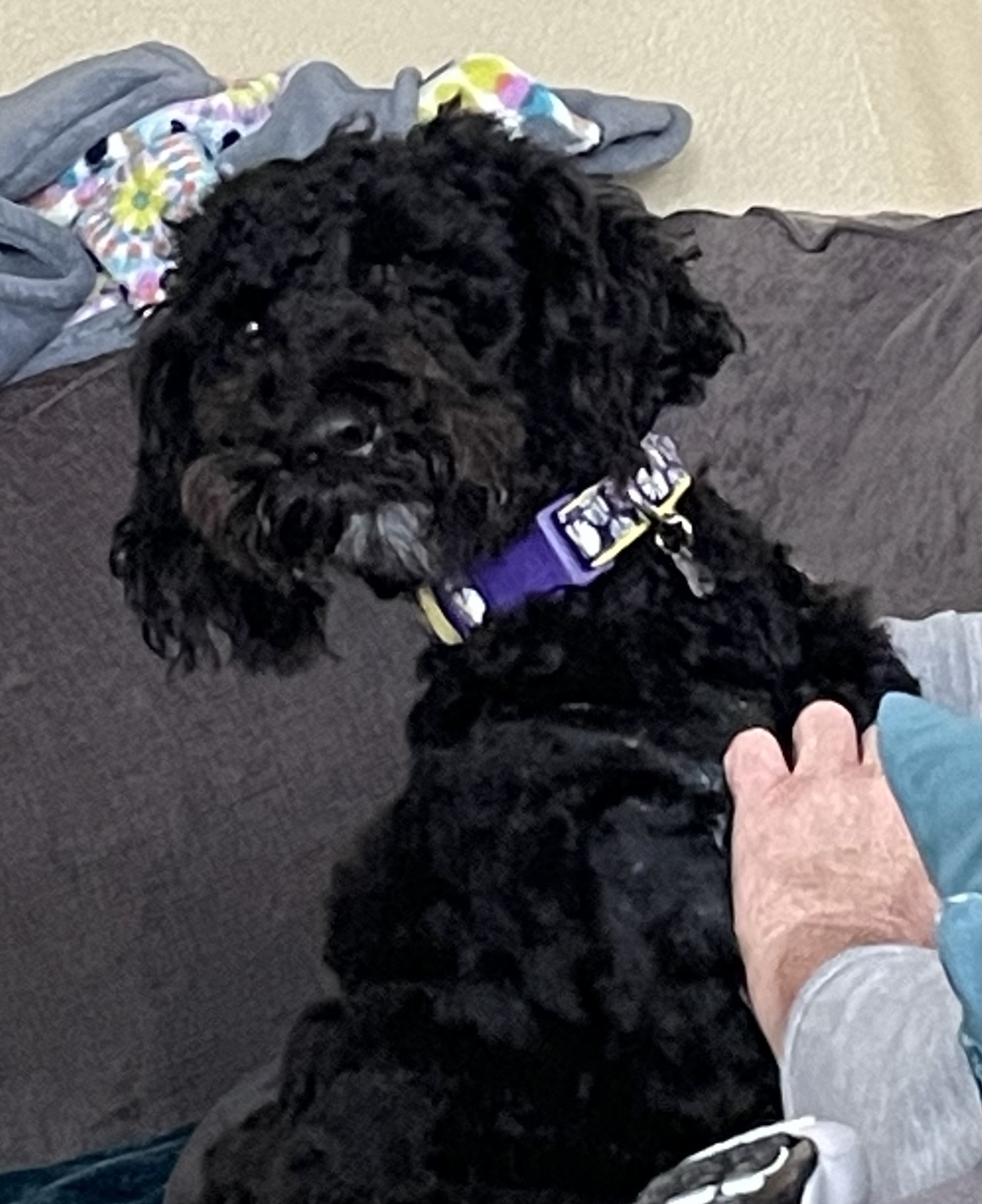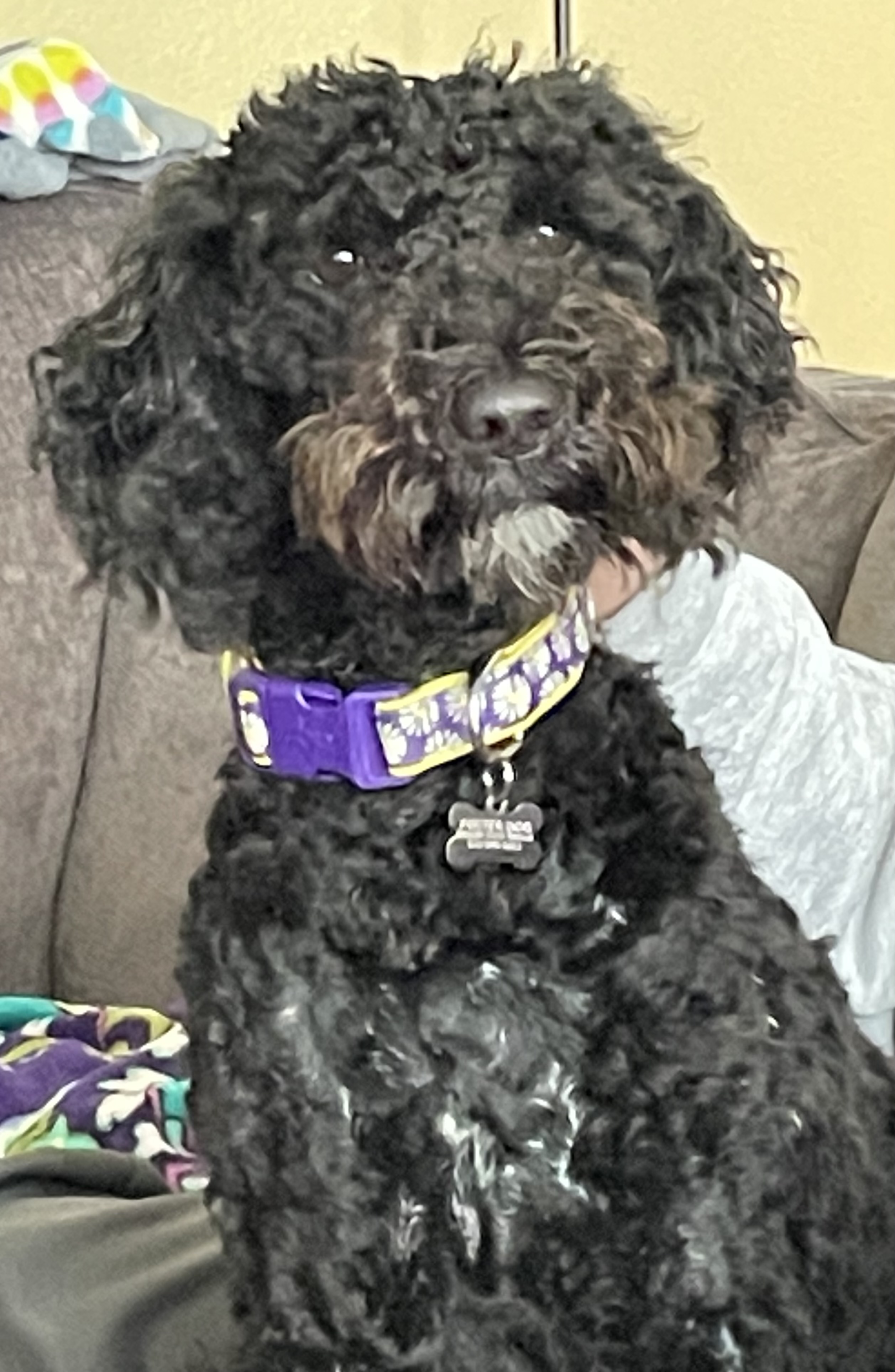 Hi, I’m Sadie, a 16-month-old, 50lb Female Labradoodle. I have a gorgeous black coat and I love being brushed everyday, which helps my gorgeous coat stay nice and mat free!