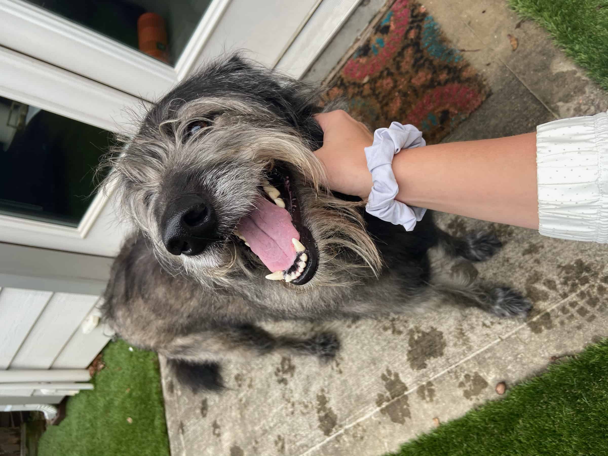 Hi! My name is Sarah and I’m a 3-year-old, 60lb, mild-shedding Irish Wolfhound/Poodle mix! I look pretty, sit pretty, and love humans! I love to be the center of attention, so I’m looking for a family that’s dog/kid free.