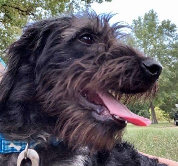 Hi, my name is Shadow! I’m a 25lb miniature schnauzer mix. I shed a little bit, but not much. The vet says that I’m six months old but my foster family says I’m mature for my age.