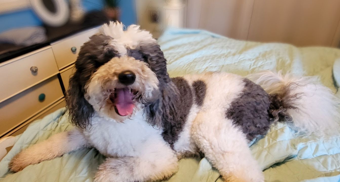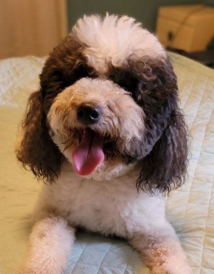 Hello, my name is Shep, and I am a 5 year old Male Sheepadoodle weighing 39 pounds.
