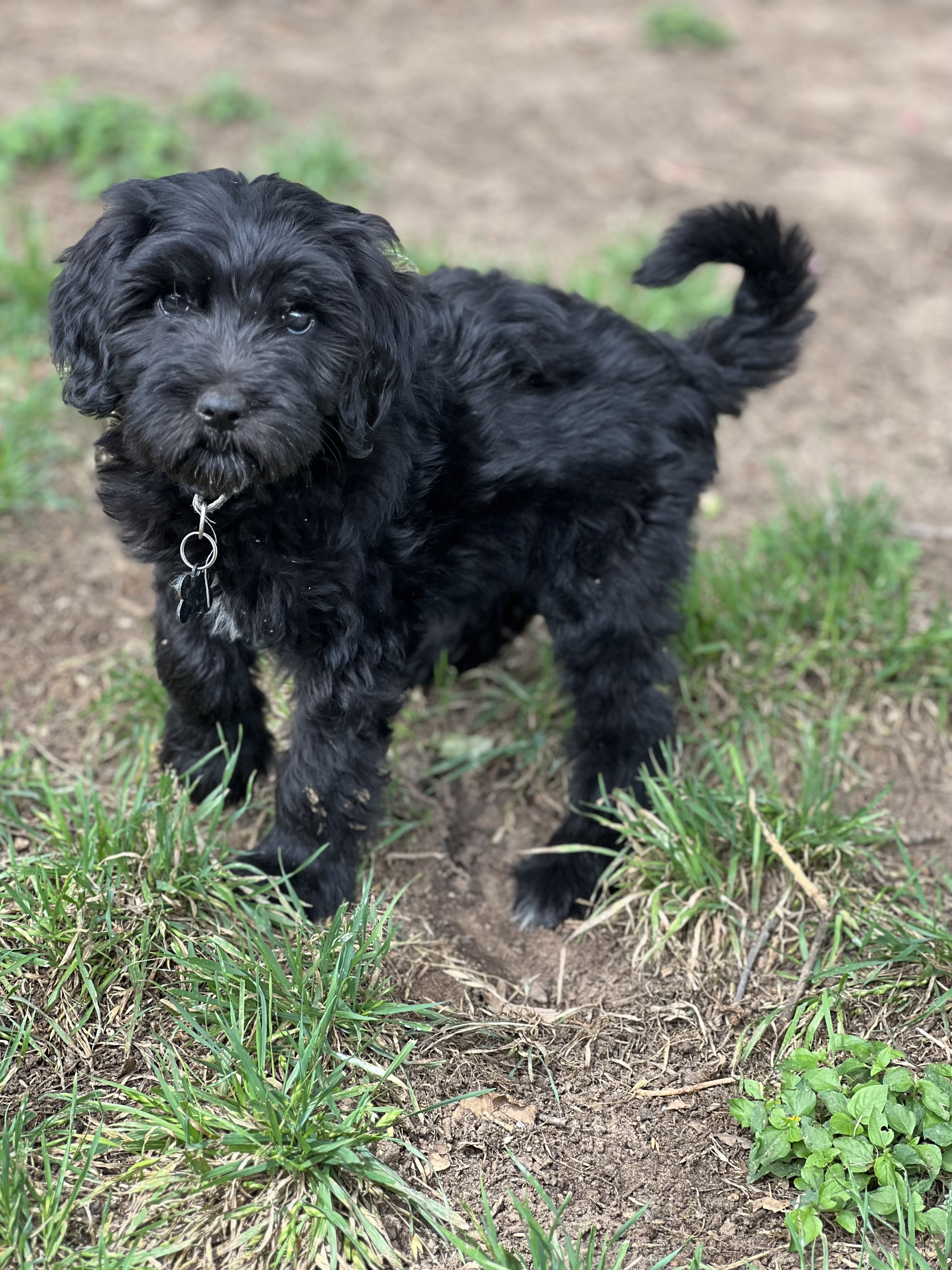 Hi, I’m SkipBo! I’m a 14 week old Female Sheepadoodle. My foster mom says I’m a little shy, but extra sweet! I have the cutest little face, adorable big eyes, and a soft, fluffy coat. I like to play outside, but I am cautious and reserved. I don’t like to play too rough. I LOVE to cuddle, and would be content with a life as a lap dog. I also love kids. My human foster kids have cuddled me a lot and I adore them.