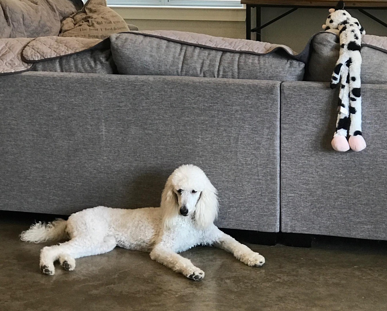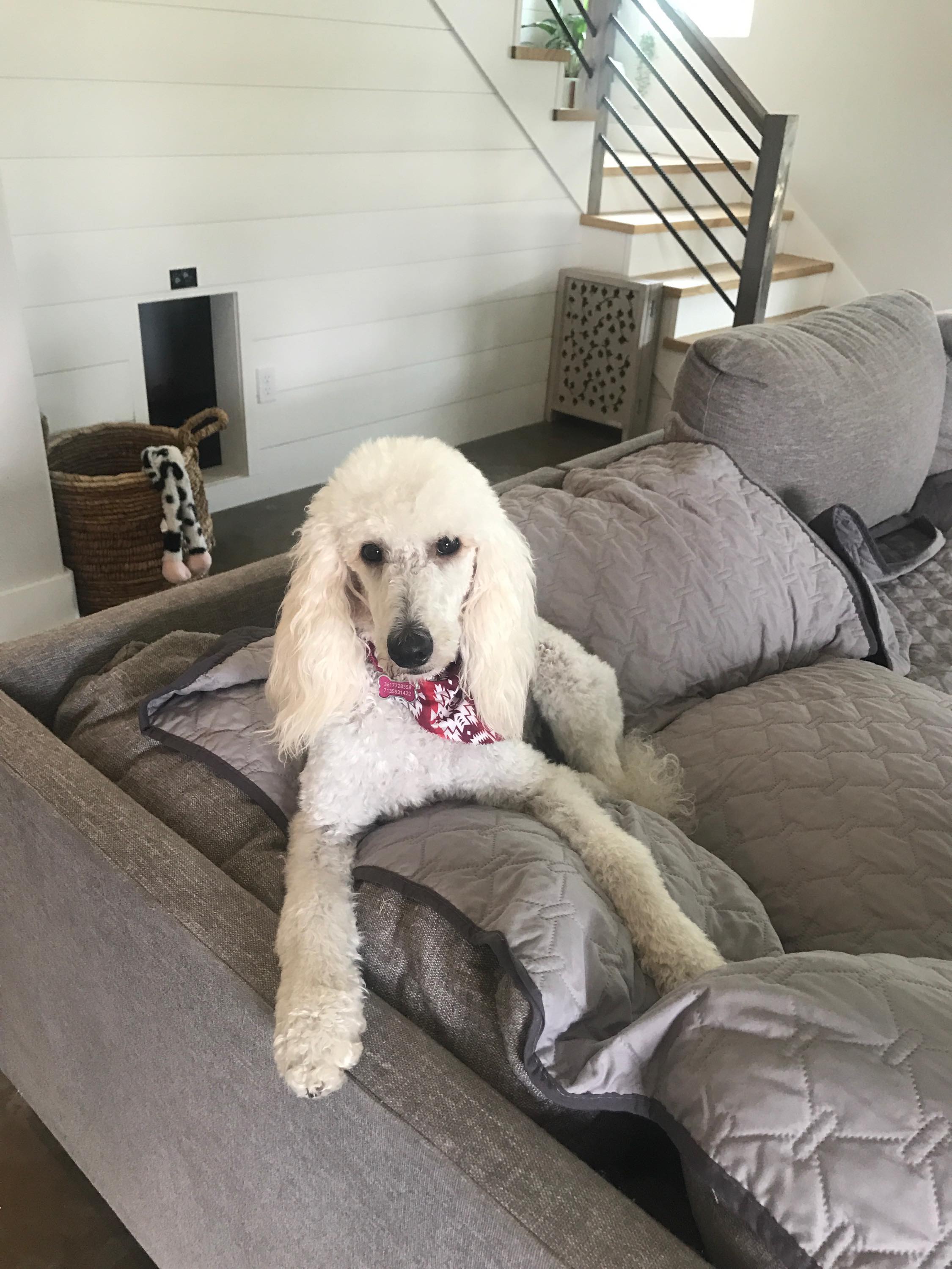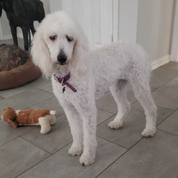 Hello! I'm Skye, a beautiful 2-year-old Female Moyen poodle a pretty white coat, accompanied by long legs and a playful demeanor. Weighing in at a delightful 30 pounds, I am a purebred delight.