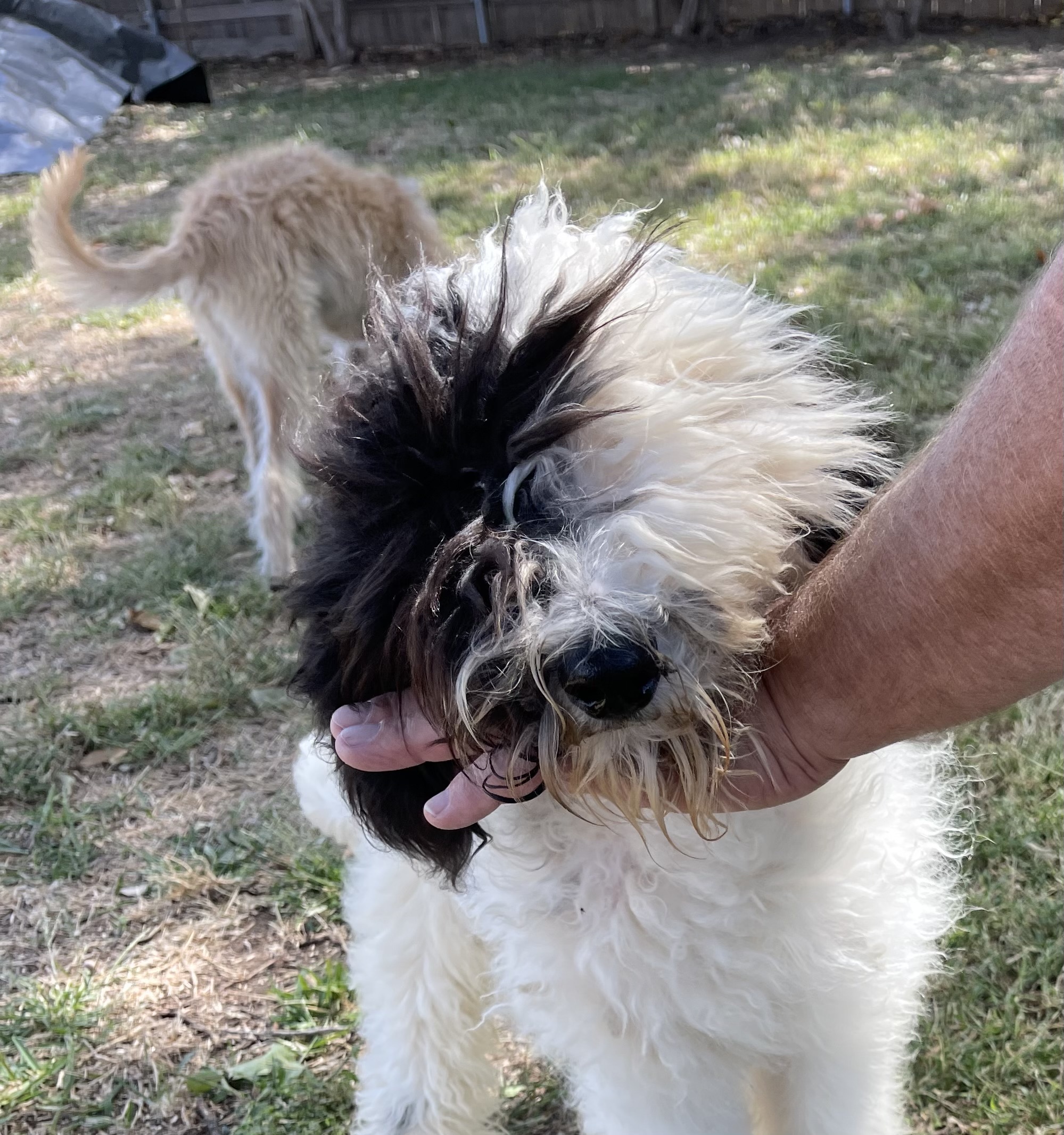 Smokey is a 8-month-old (DOB 5/17/23) Male Sheepadoodle and weighs 36lbs.
