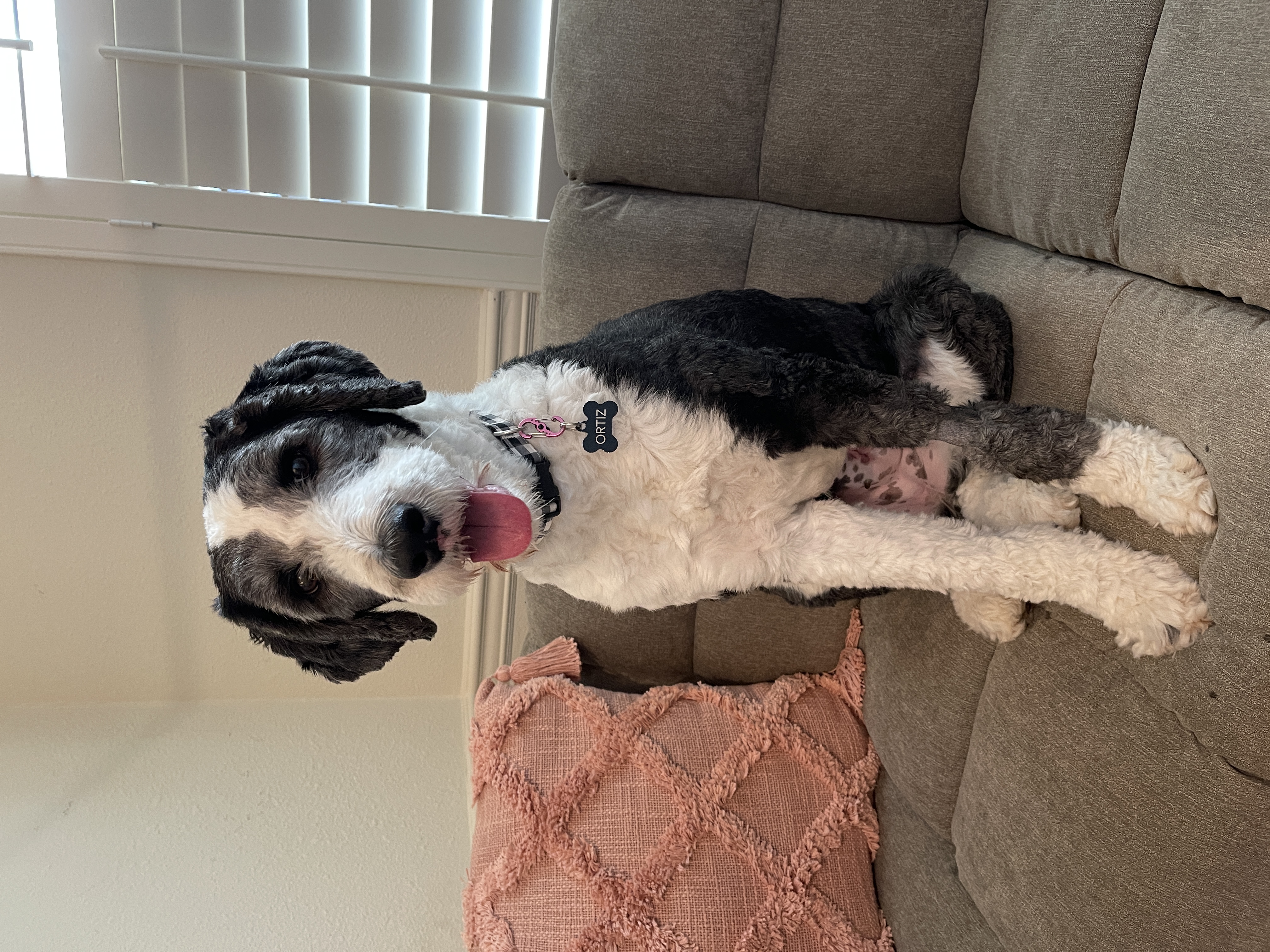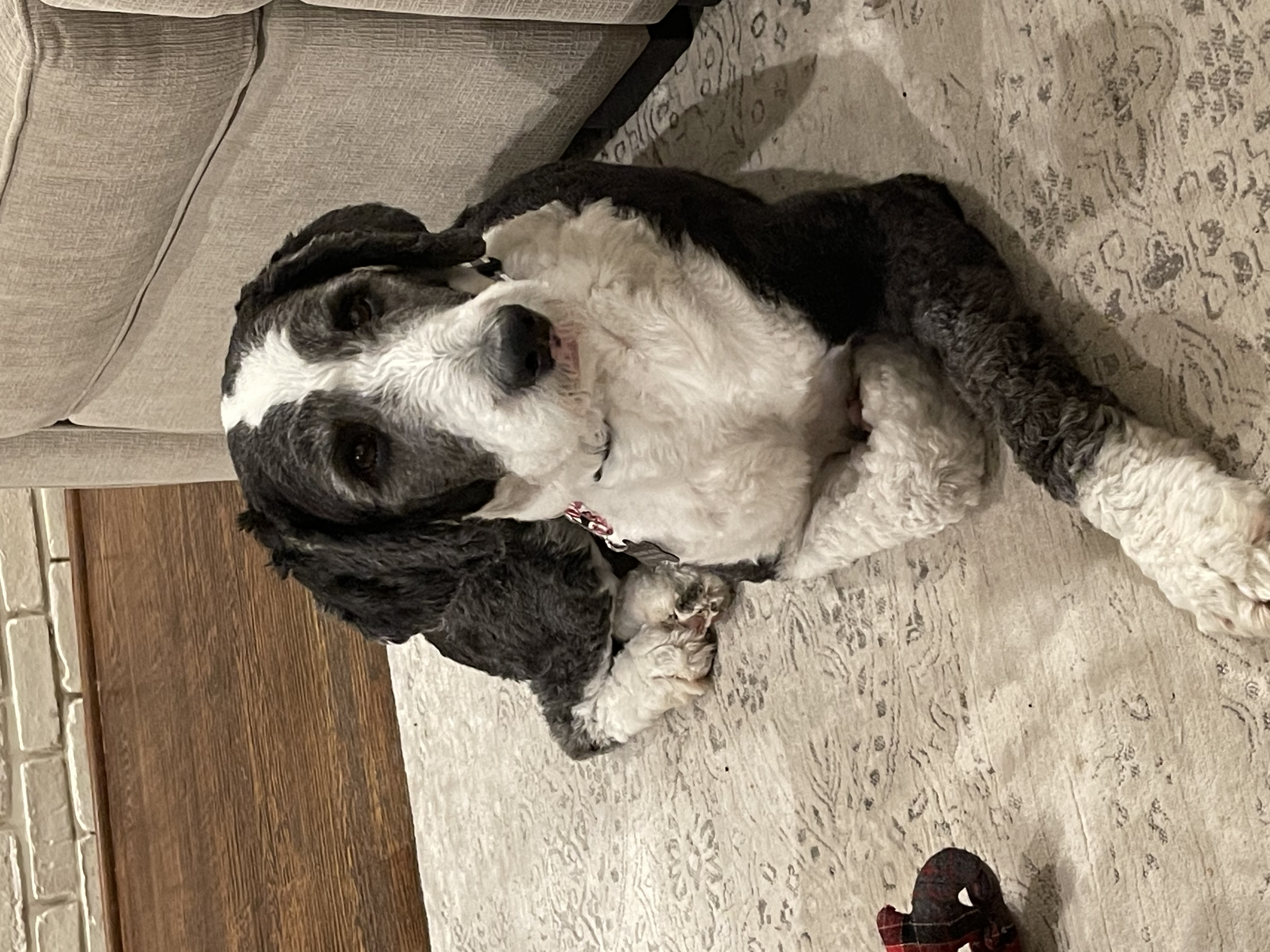 Hi friends! I’m Sofie! According to my foster mom, I’m the cutest, sweetest 48lb, 3 -year-old female Sheepadoodle you will ever meet! Bonus points because I don’t shed, just don’t forget to brush me since I’m prone to matting.