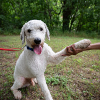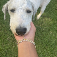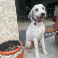Hi there, I’m Sparky—a 2-year-old, 35 lb white doodle with a heart full of love and loyalty.