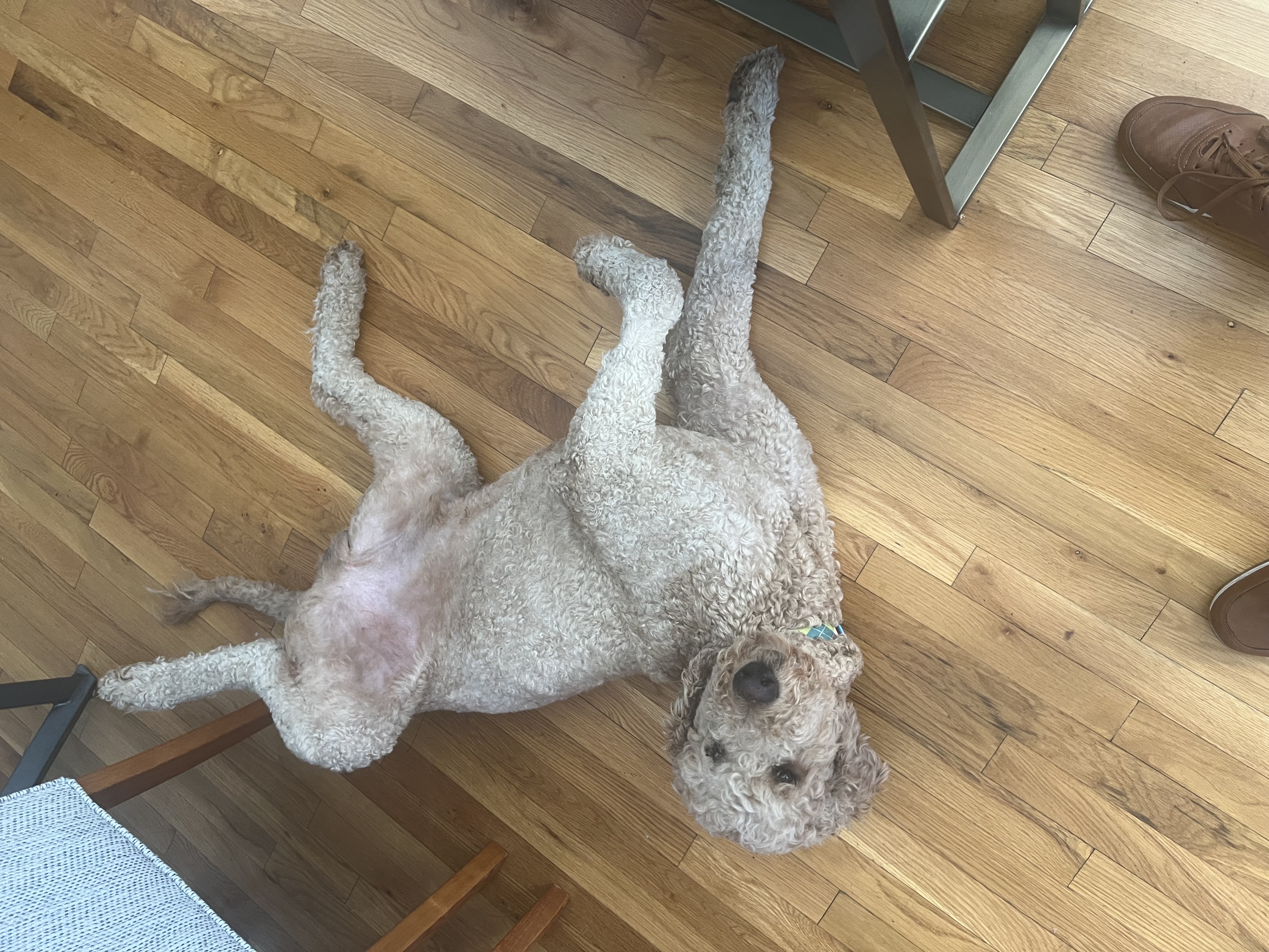 At night, I sleep soundly in my crate, and when morning comes, I’m ready to hit the pavement for a walk. I’m a pretty polite walker, handling my business like a gentleman—unless a squirrel crosses my path, in which case, well… I might get a little excited. Breakfast is my next priority, followed by a well-earned nap. If the sun is shining, I’d love to be outside, especially if there are people or pups to keep me company. Evenings are for winding down with dinner, another stroll, and plenty of cuddles before bedtime. Fair warning: I’ll be seeking out kisses and pats regularly!