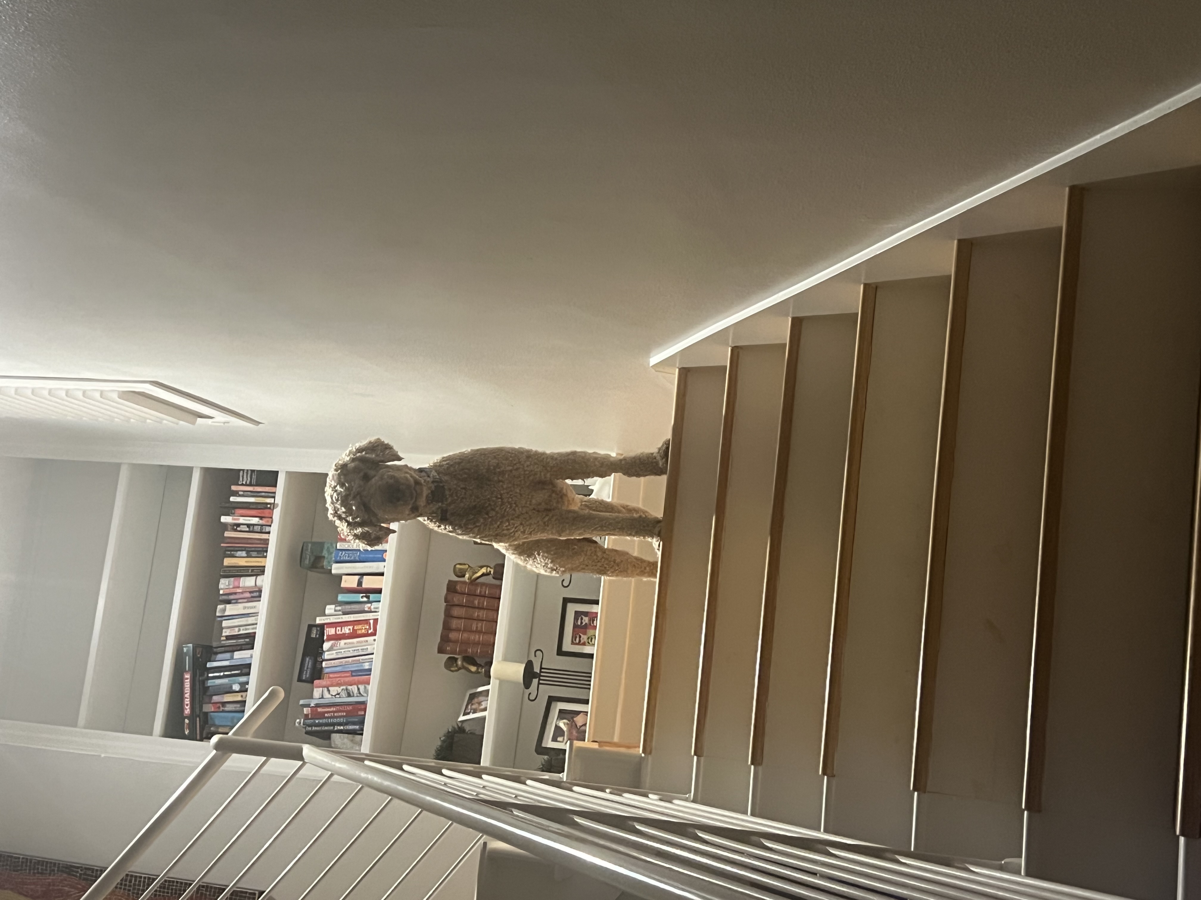 I recently had one of my eyes removed, and while I sometimes forget to turn my head to see what’s on my left, I’m adjusting like a champ. If I see a cat, I just give them a casual “hey bro” and go about my day—no drama here. Occasionally, I get so caught up in my love for my humans that I might pop up for a gentle hug and a kiss, but I always listen if told to get down.