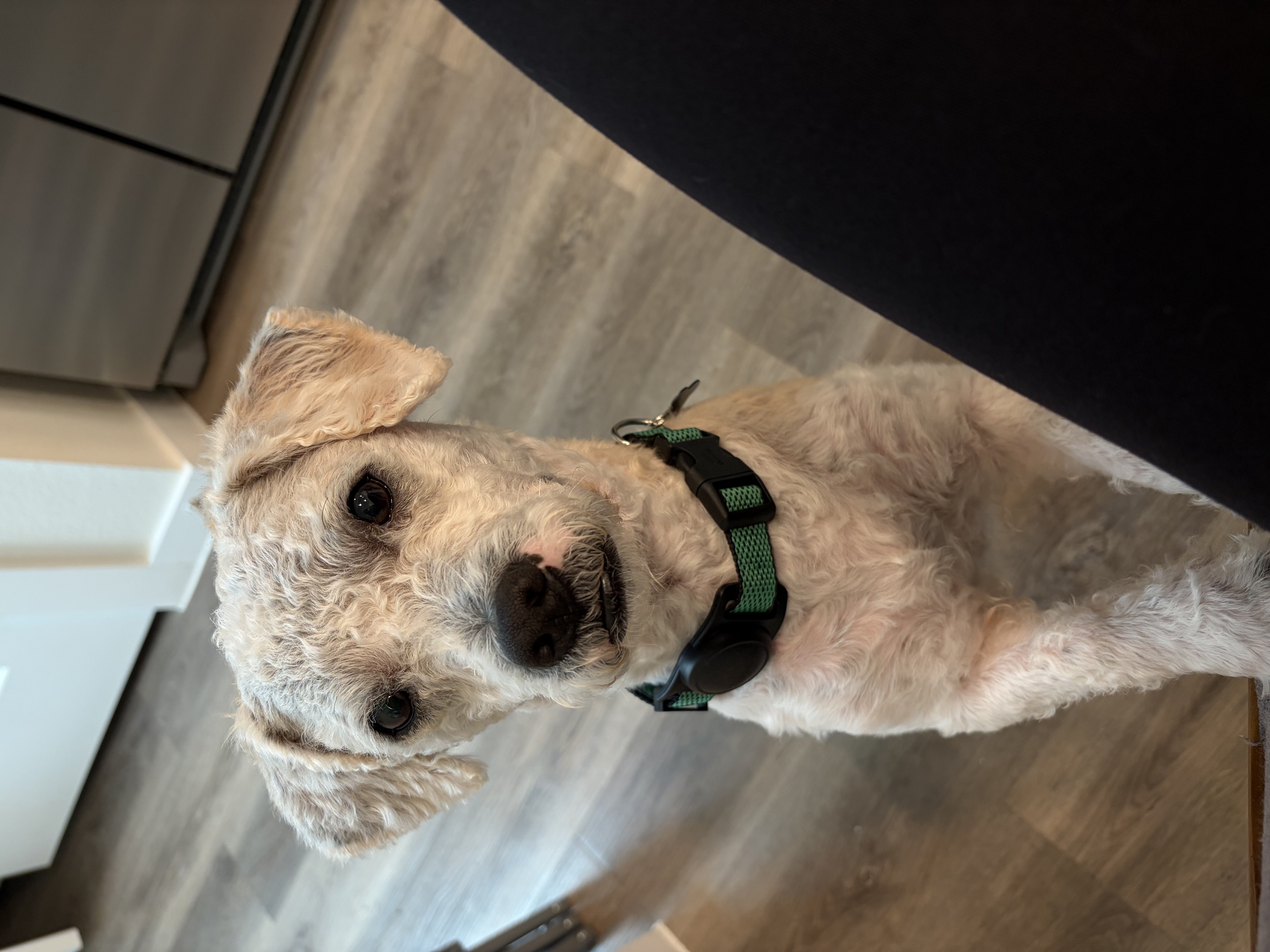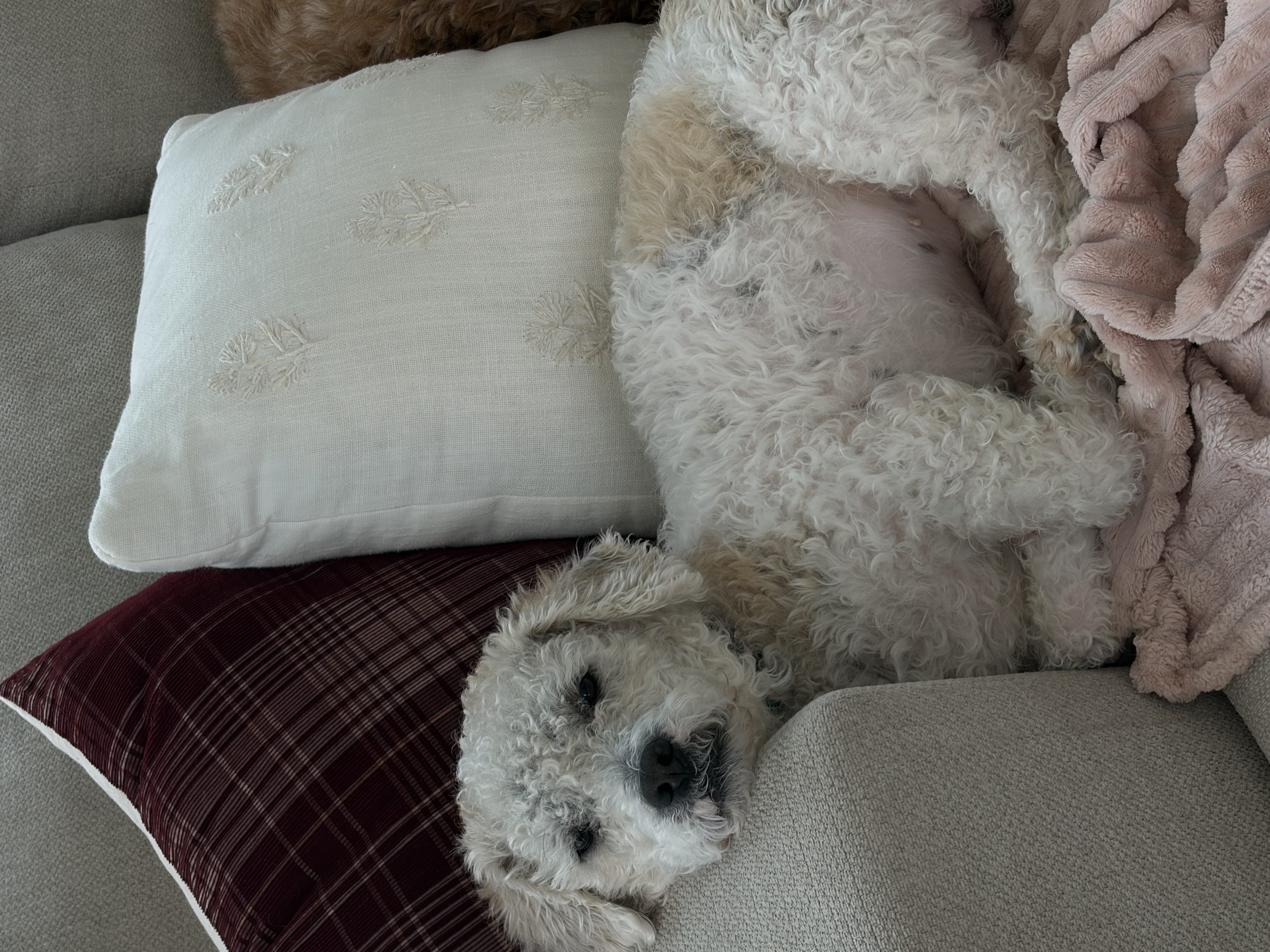 Hi, I’m Squish — a five-year-old poodle–dachshund mix with 22 pounds of pure love packed into a very loyal little body. I’m a smart, affectionate boy who is ready to find a forever family that will cherish me as much as I will cherish them. My absolute favorite place to be is right next to my person. I’m what they call a “velcro dog,” which means if you stand up, I stand up. If you move rooms, I move rooms. And if you sit down… well, you can bet I’ll be right there testing out your lap.