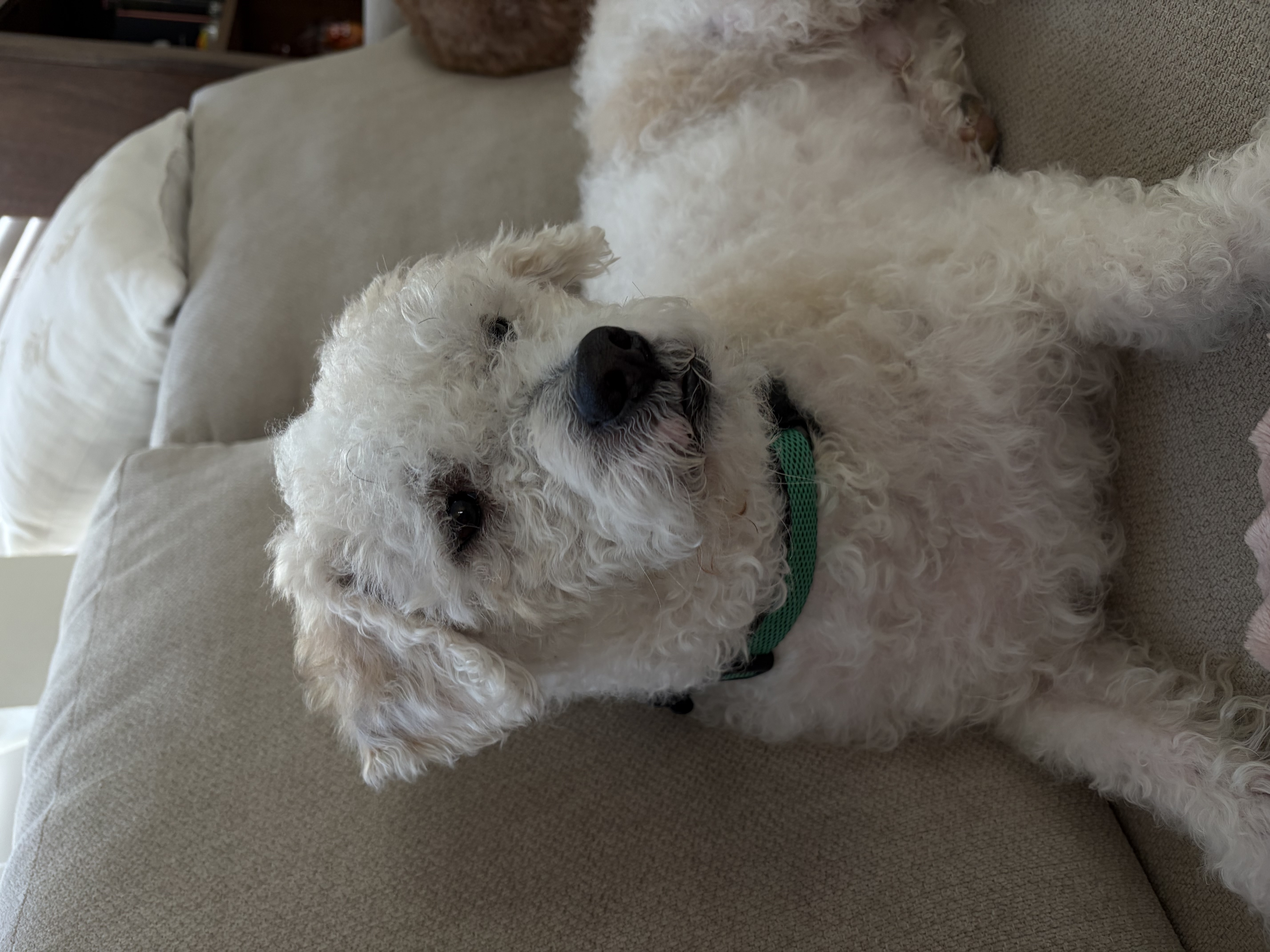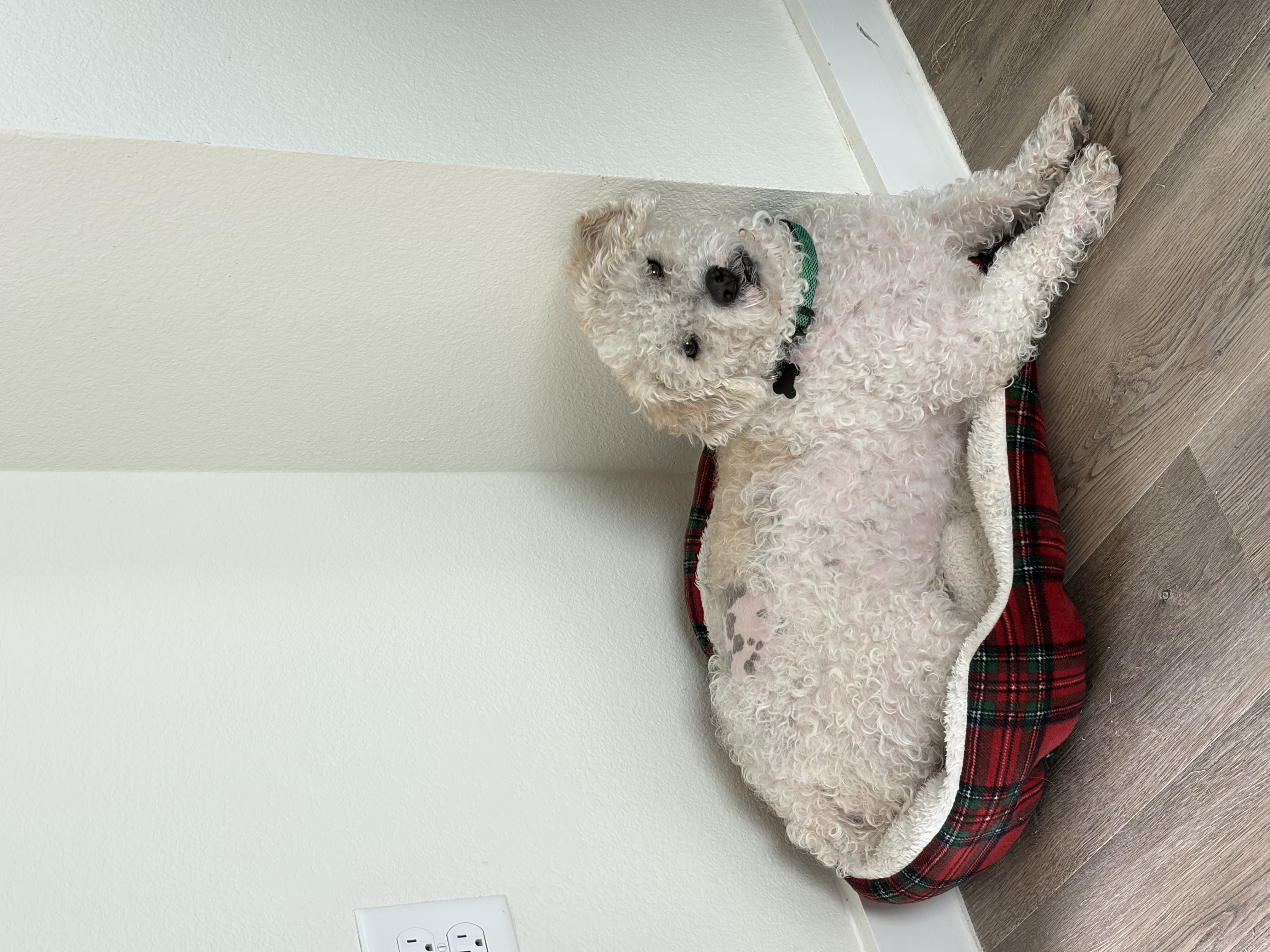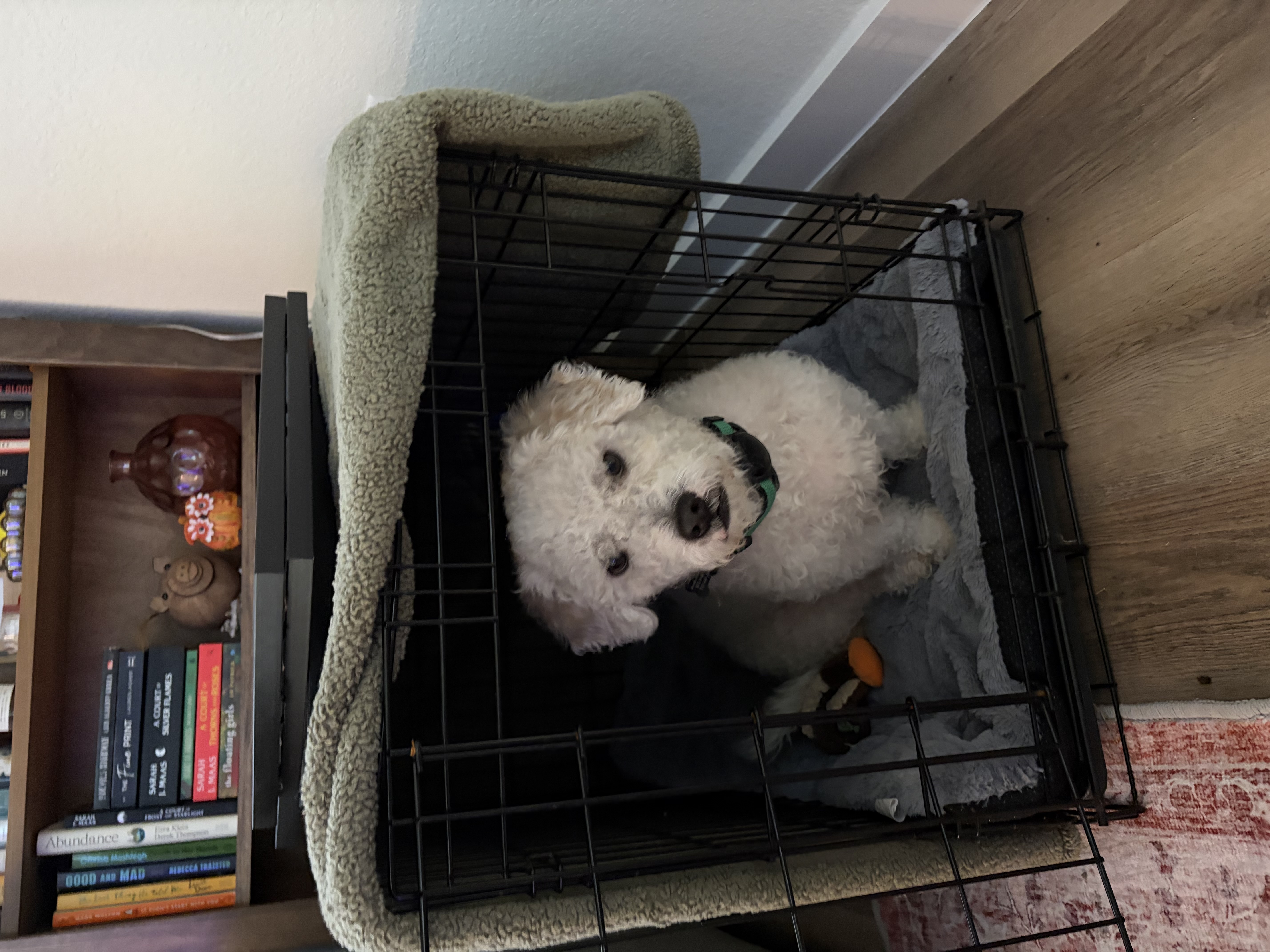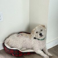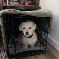 My days usually start bright and early around 7 a.m. when I head out for a short potty walk with my foster brother before breakfast. After eating, I like to inspect the backyard to make sure everything is in order — I take my patrol duties seriously and enjoy hunting for acorns or other little treasures. My foster mom works from home, which means I get plenty of opportunities to sit in her lap throughout the day, which is exactly how I like it. I also go on a few short walks during the day because I prefer finding a nice bush while we’re out rather than using the old tree in the yard. As the afternoon rolls toward 5 p.m., I start reminding everyone that dinner time is approaching — I’m very punctual about meals. After dinner, I enjoy a couple more short potty strolls before heading to my crate for a peaceful night’s sleep.